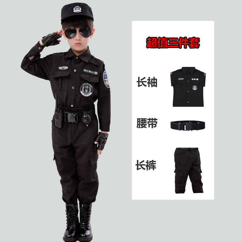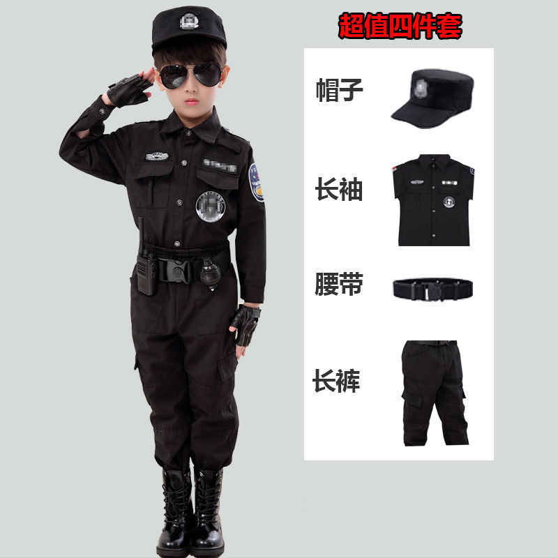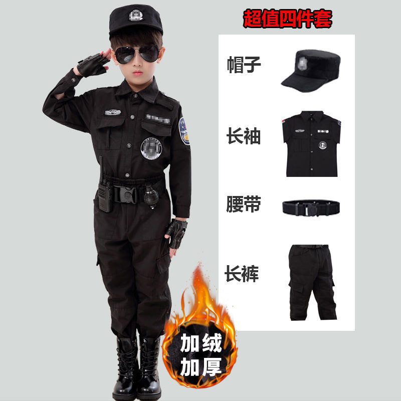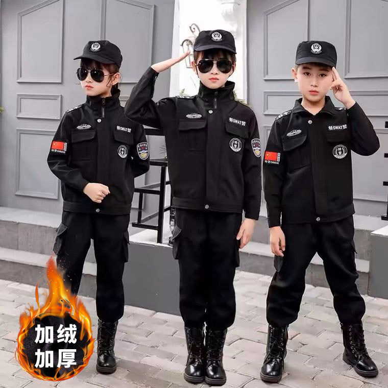 어린이 특수 부대 장난감 경찰관 유니폼 소형 특수 경찰 역할극 여름 캠프 군사 훈련 성능 기모 세트 두껍게