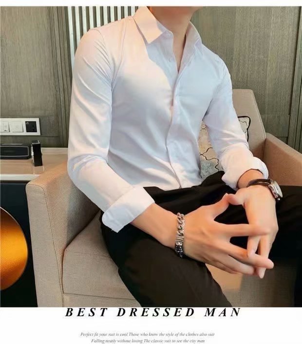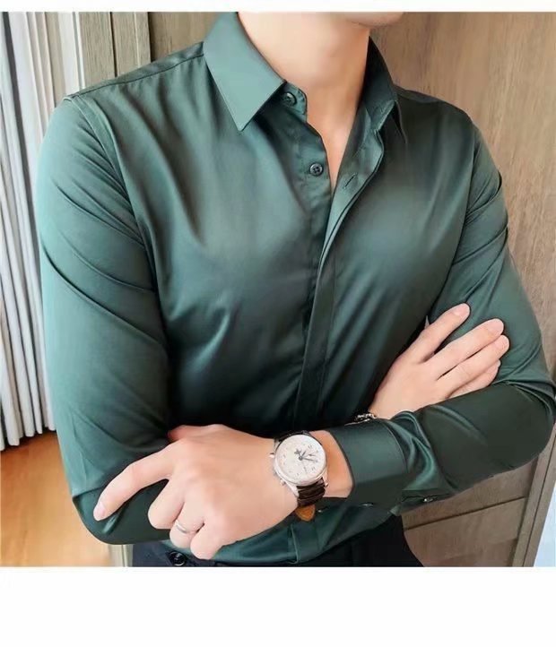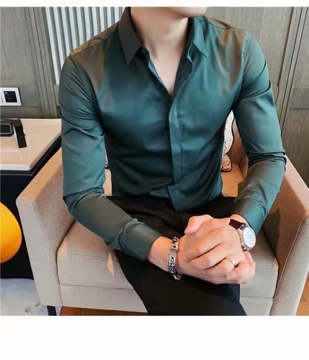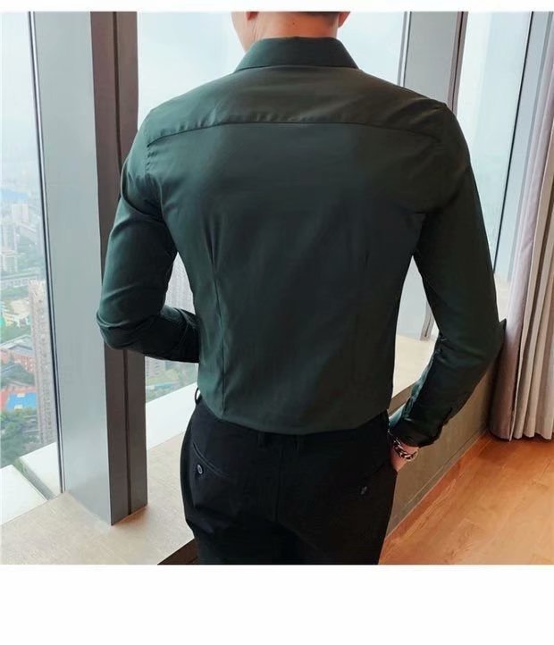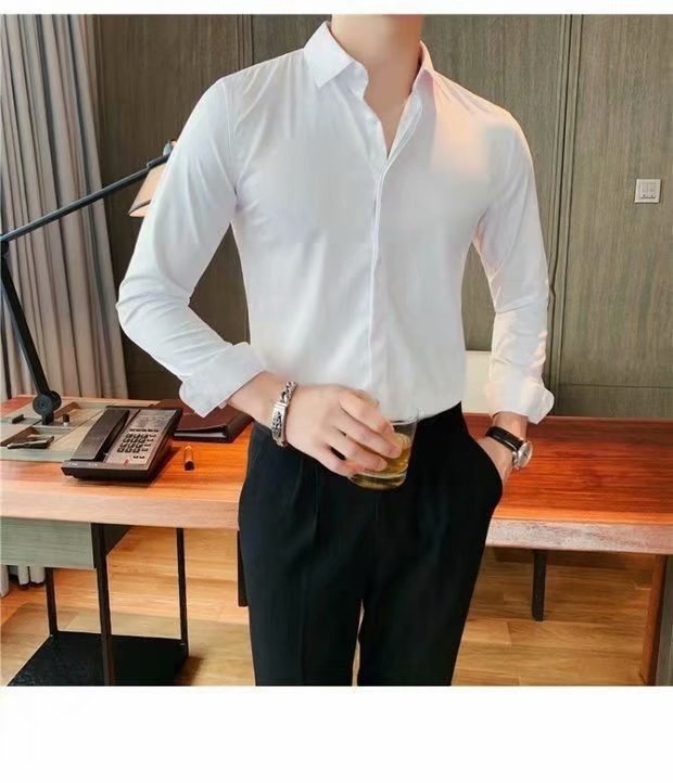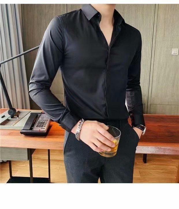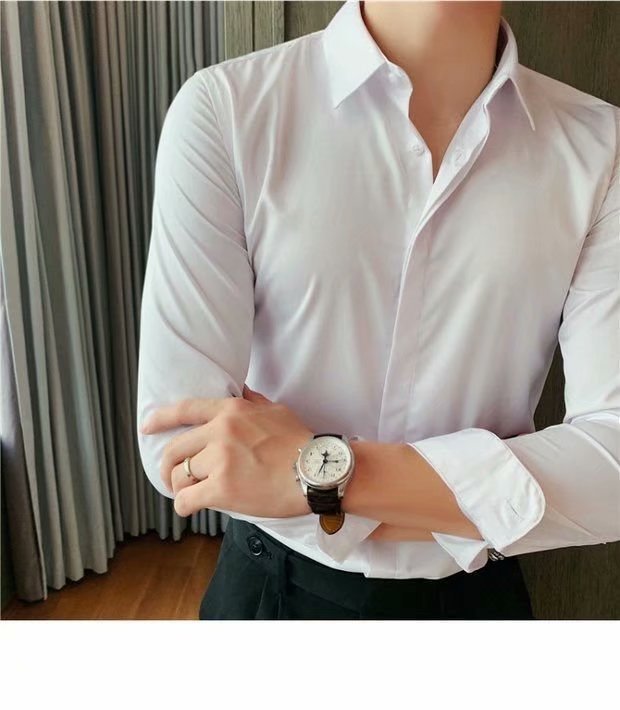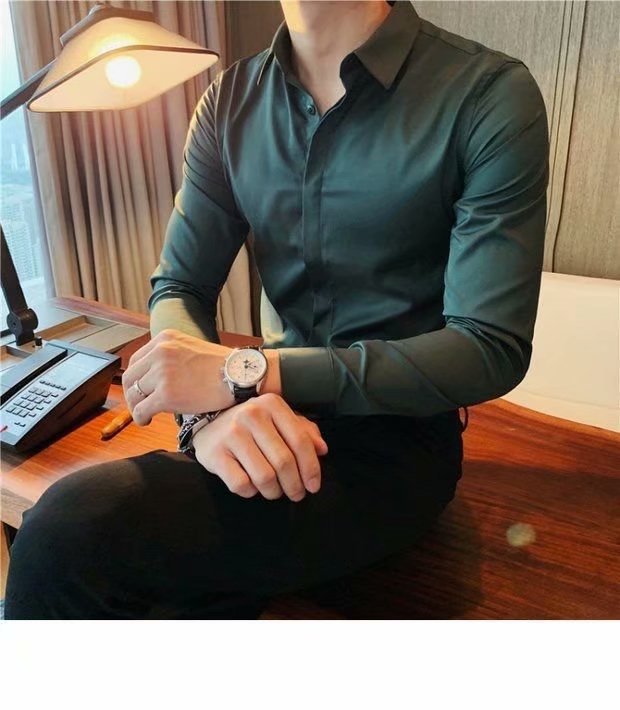 남자 긴팔 셔츠 남자 한국식 숨겨진 버튼 슬림핏 셔츠 남자의 단색 셔츠 세트 내베이스 셔츠