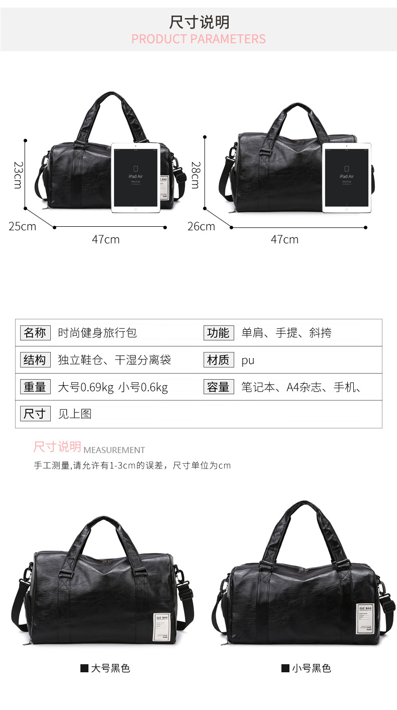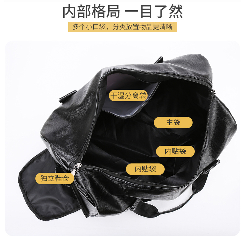 국경 간 스포츠 피트니스 가방 다기능 건조하고 젖은 별도의 독립 신발 창고 휴대용 여행 가방 대용량 PU 수하물 가방