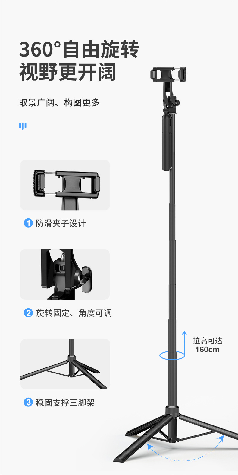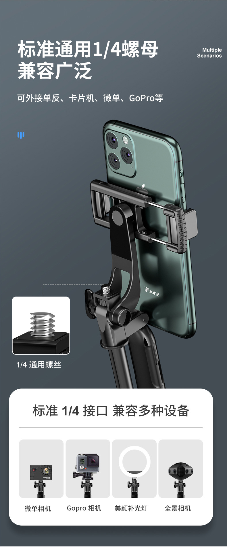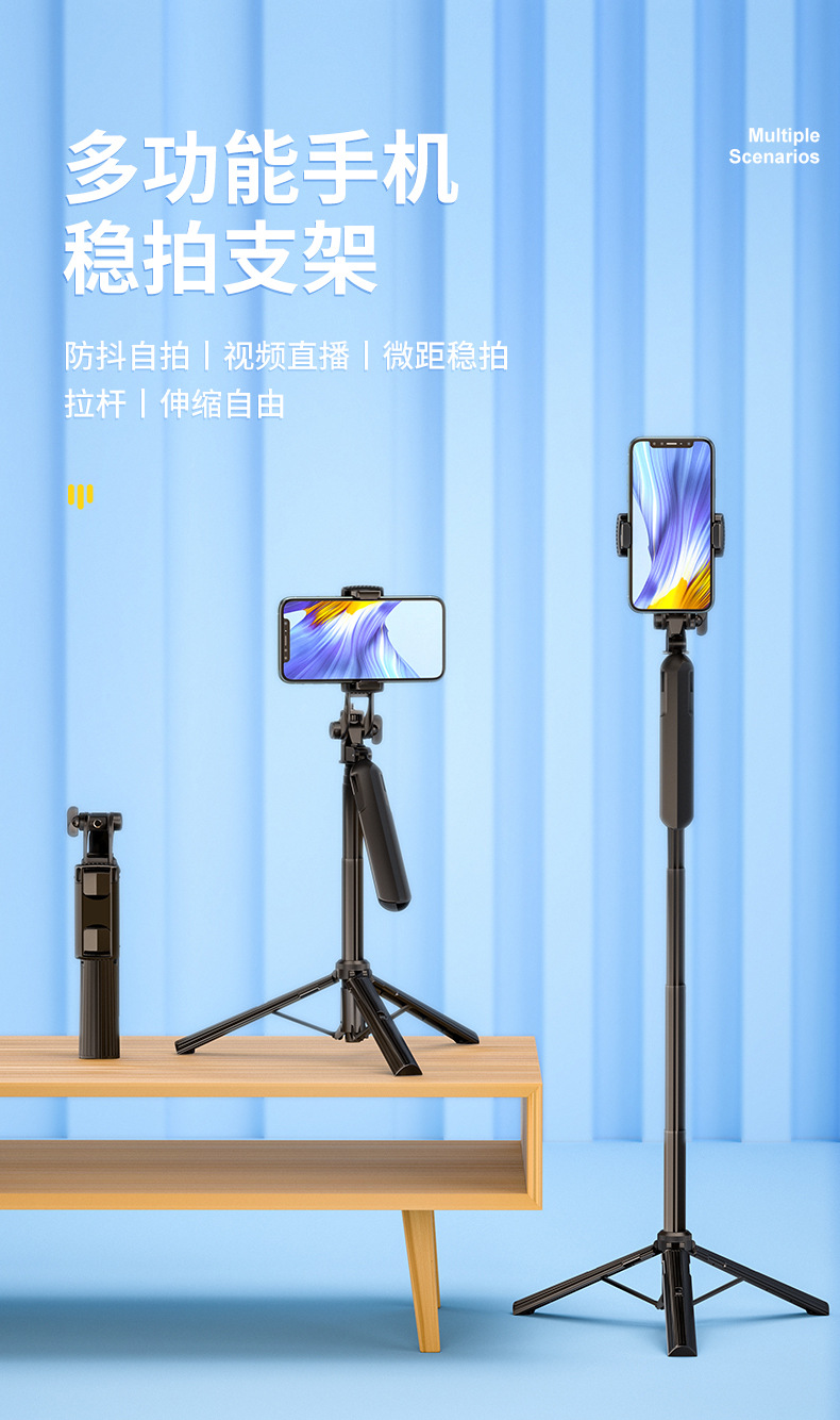 A61 휴대 전화 블루투스 셀카 스틱 통합 핸드 헬드 안티 쉐이크 안정 카메라 라이브 휴대 전화 삼각대