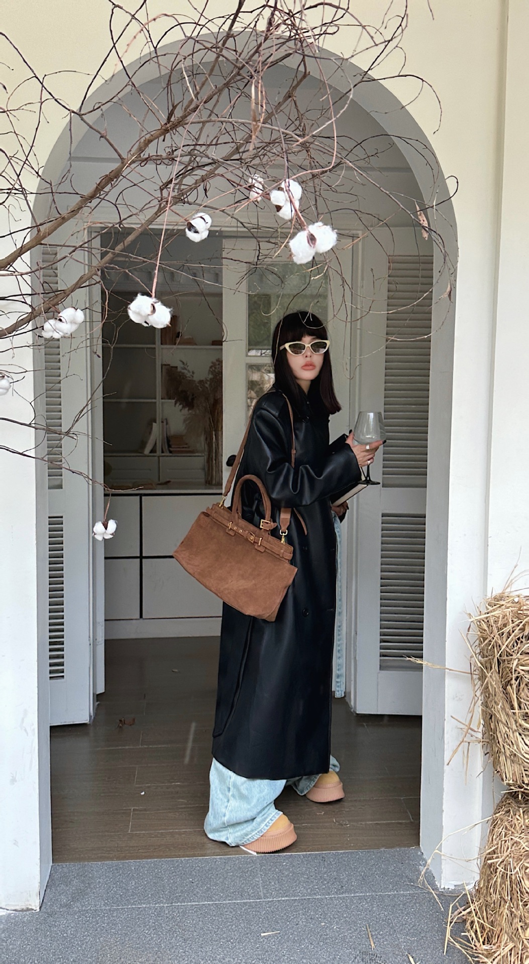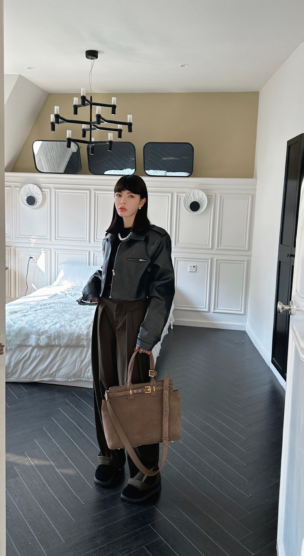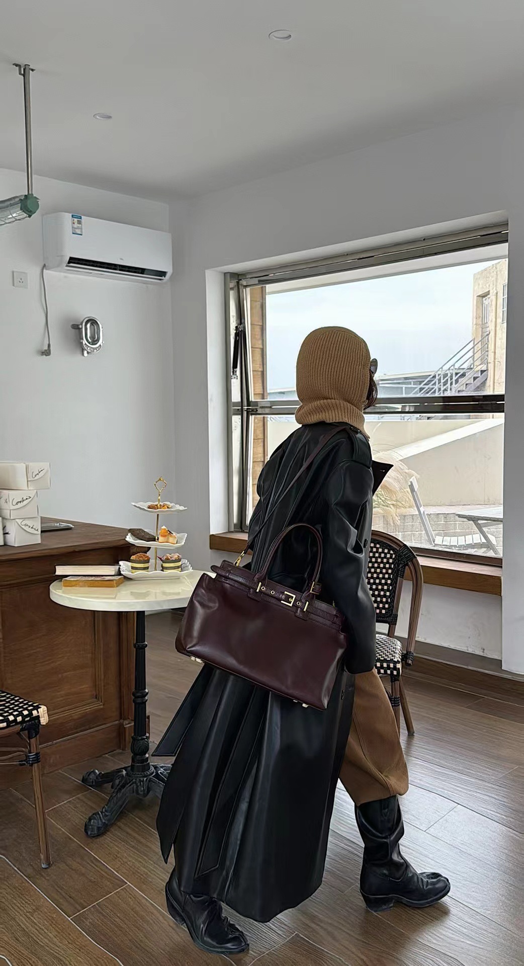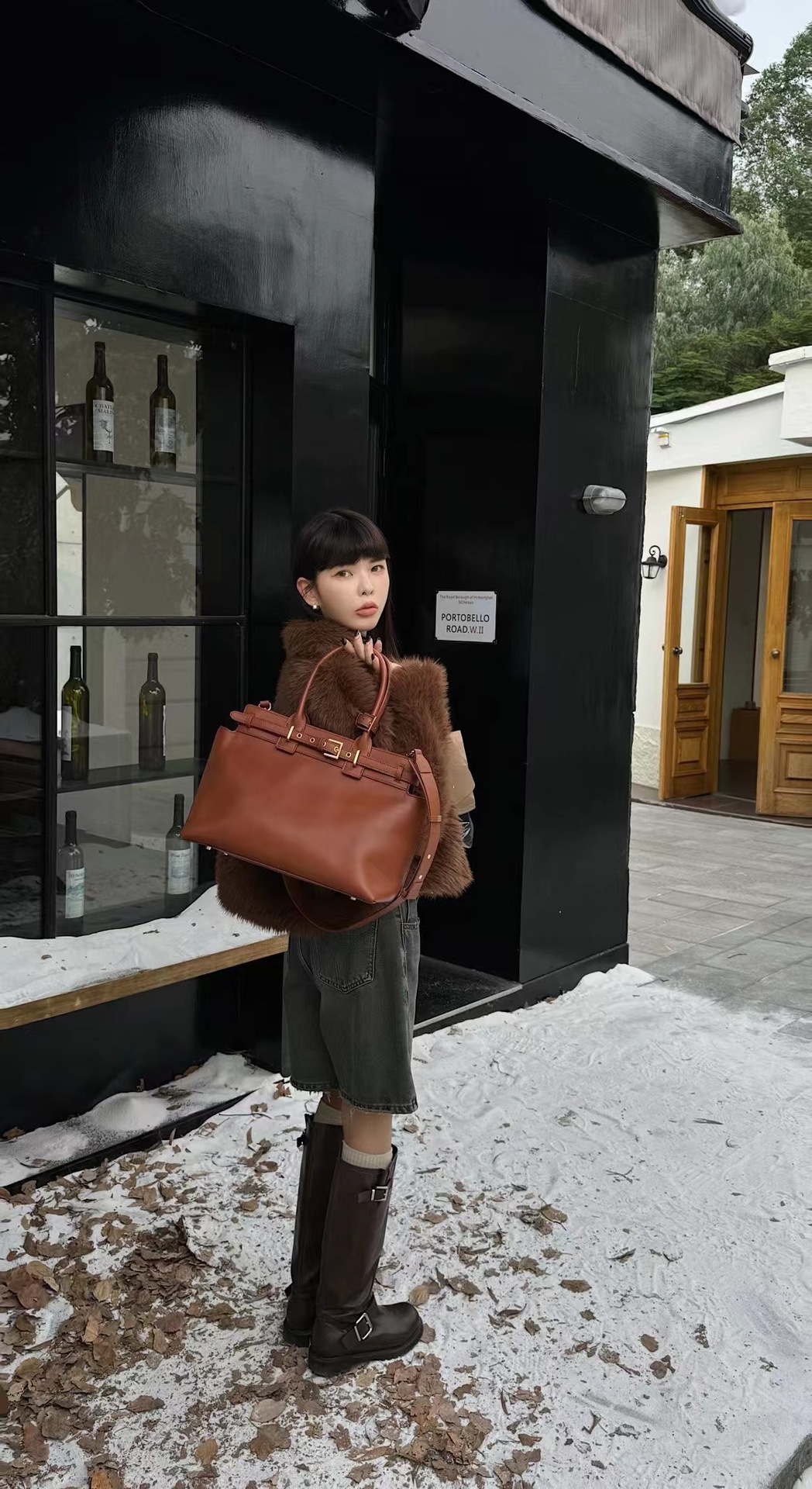 [듀오 듀오] 젖빛 암소 가죽 켈리 가방 대용량 토트 백 휴대용 가죽 핸드백 어깨 크로스 바디 백스토어 가기