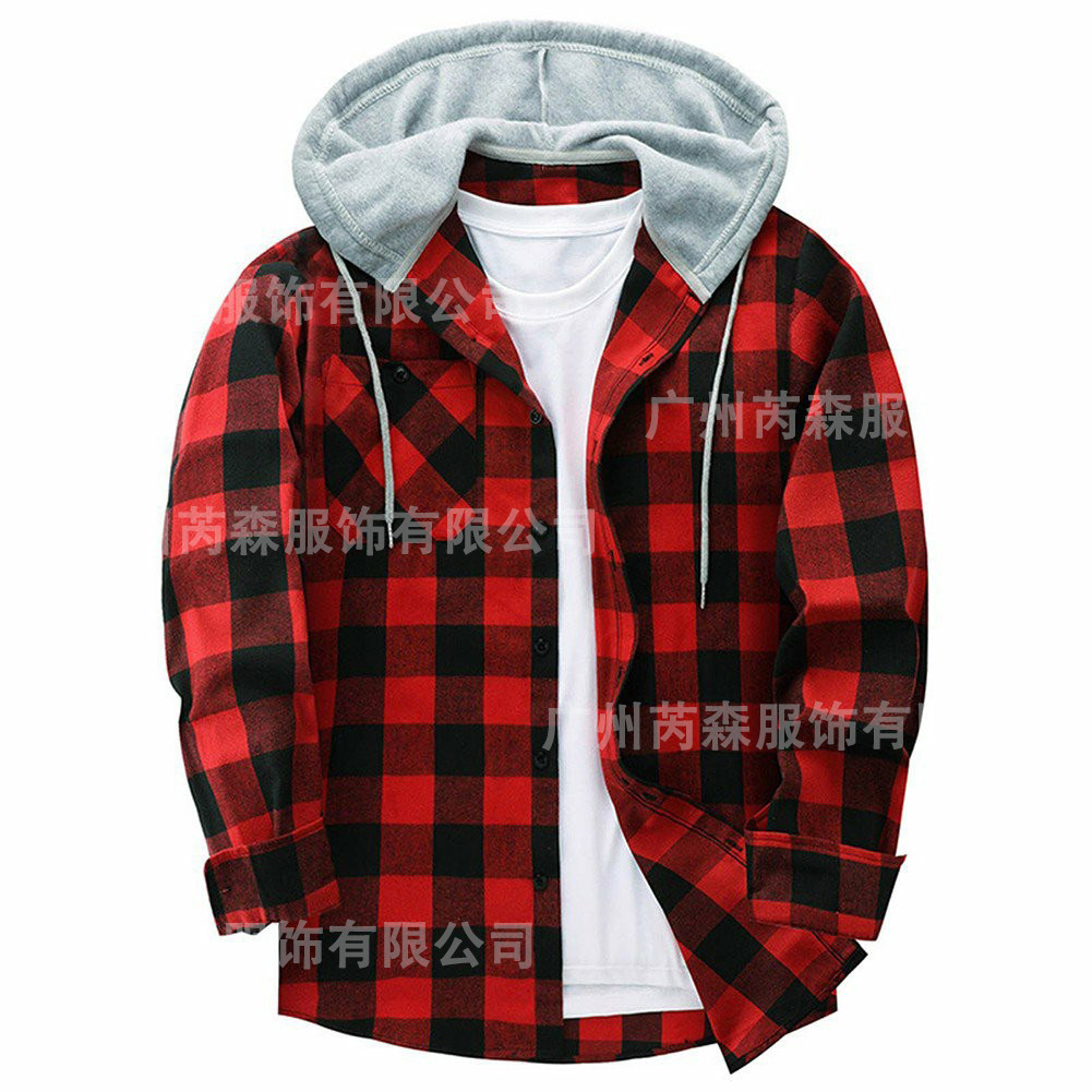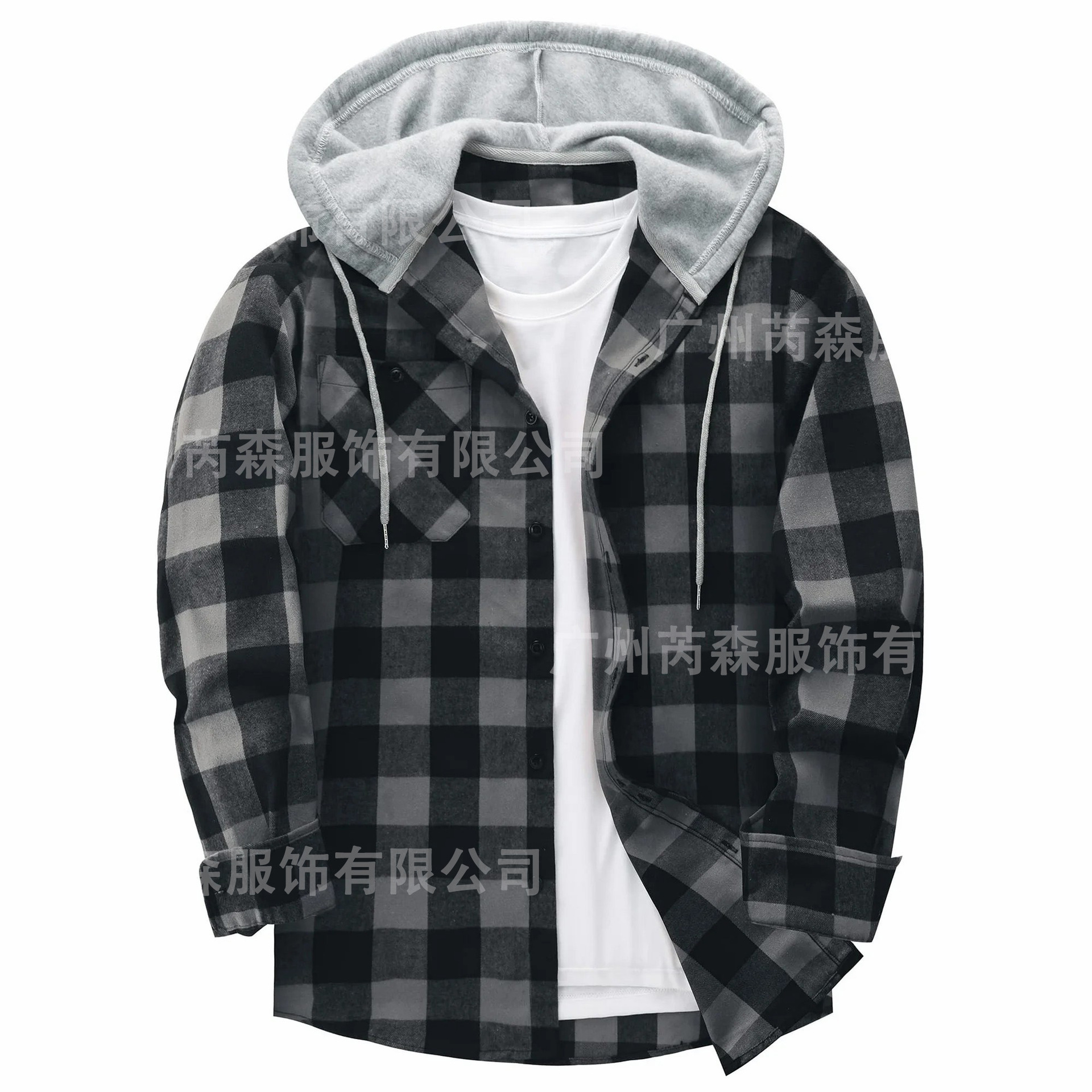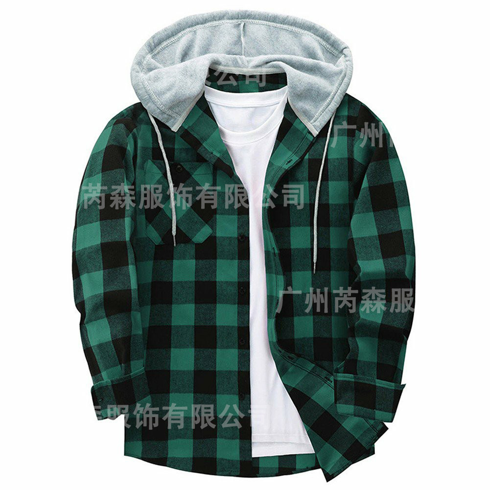 2024 봄과 가을 대외 무역 국경 폭발 남자 긴 소매 후드 체크 무늬 셔츠 남자의 캐주얼 셔츠