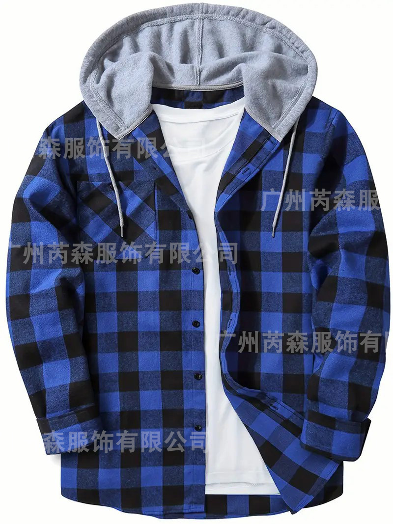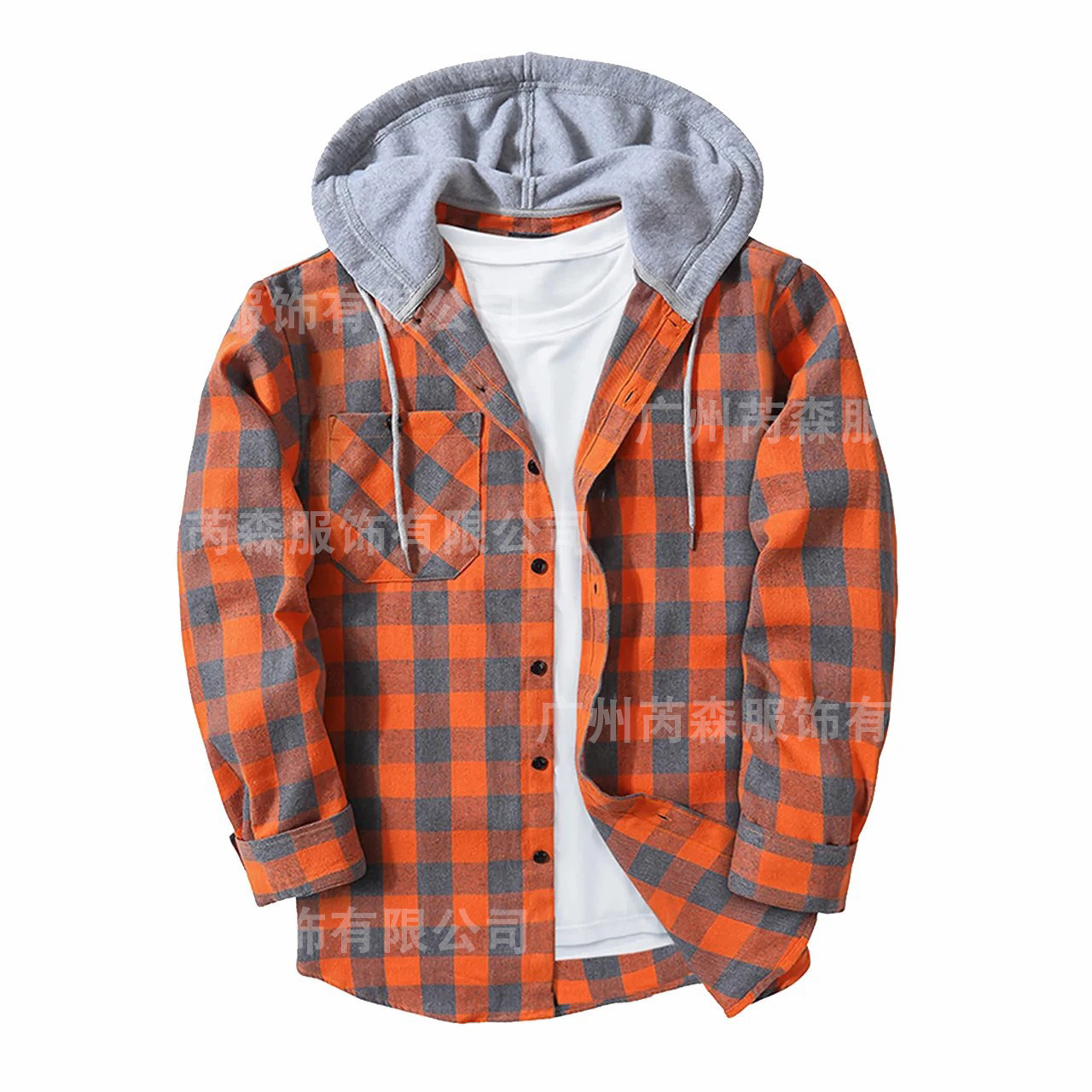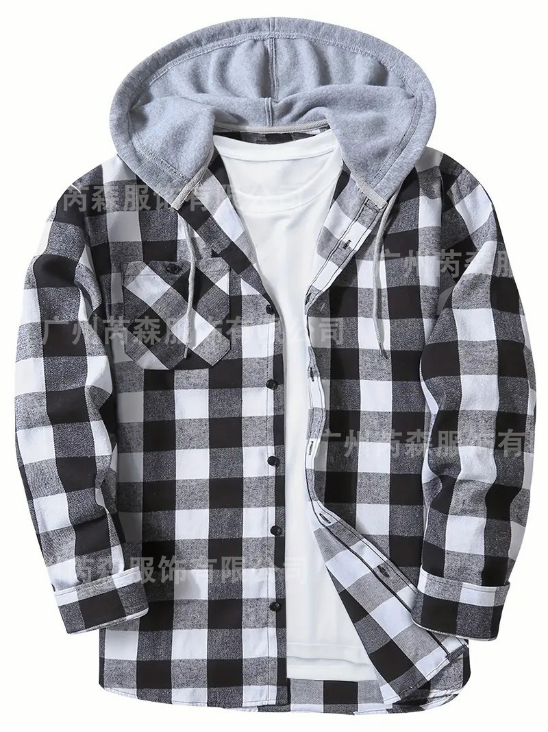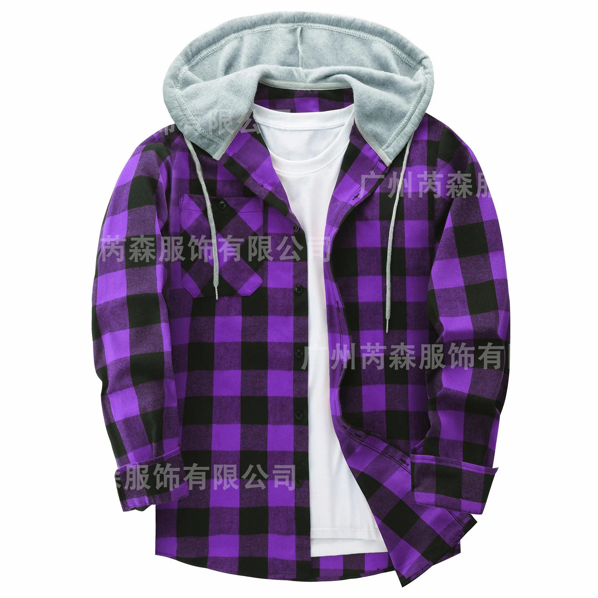 2024 봄과 가을 대외 무역 국경 폭발 남자 긴 소매 후드 체크 무늬 셔츠 남자의 캐주얼 셔츠