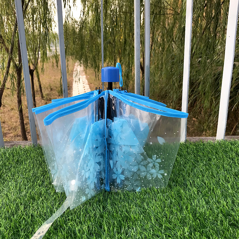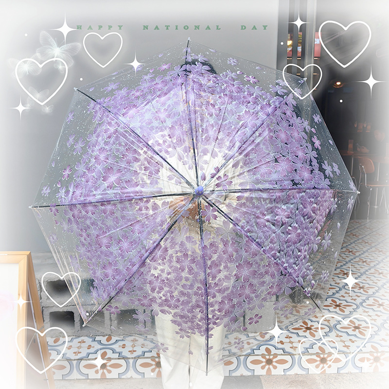 투명한 우산 벚꽃 우산 긴 손잡이 투명한 소녀 여신 한국 복고풍 사탕 색깔 신선한 아폴로 공주