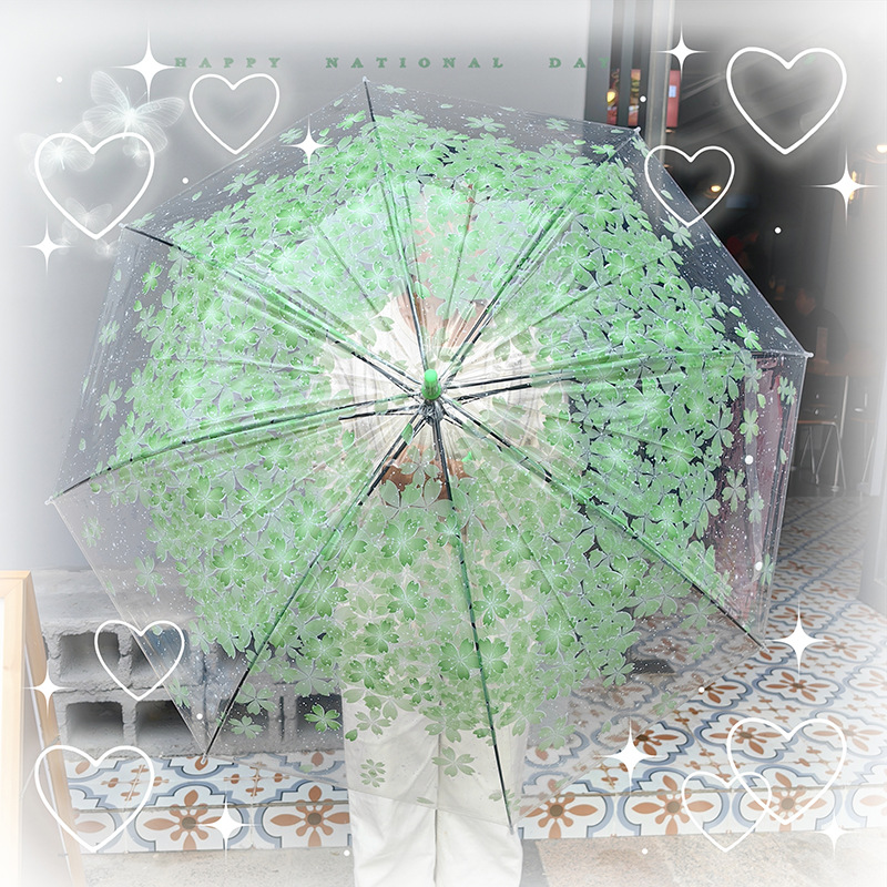 투명한 우산 벚꽃 우산 긴 손잡이 투명한 소녀 여신 한국 복고풍 사탕 색깔 신선한 아폴로 공주스토어 가기