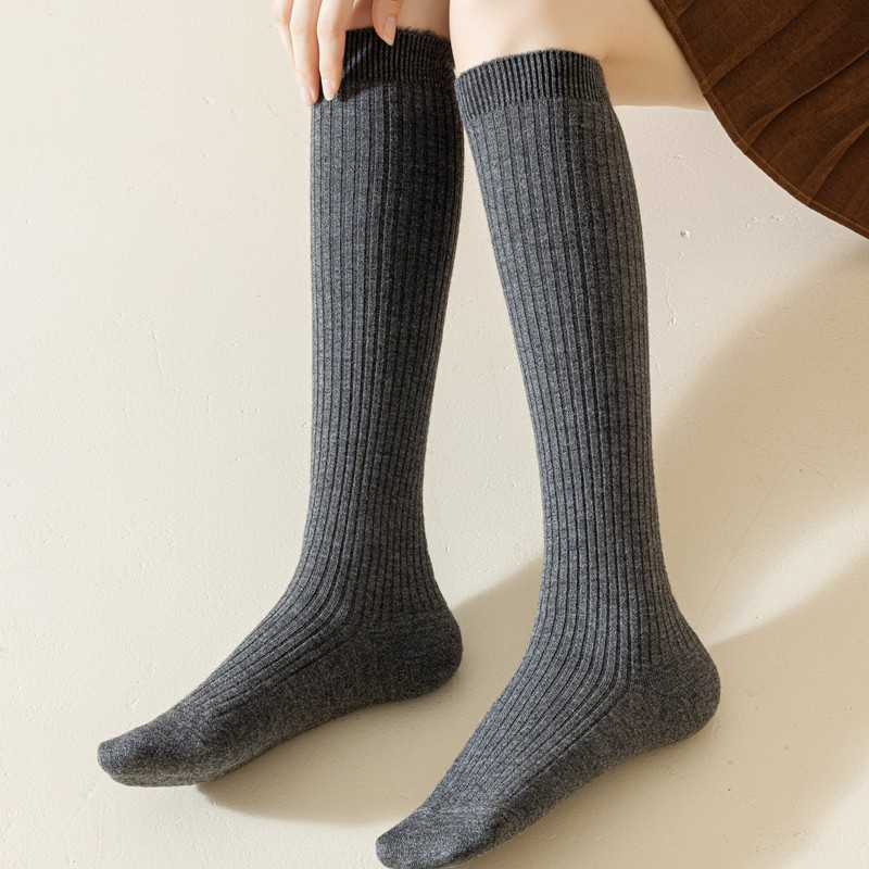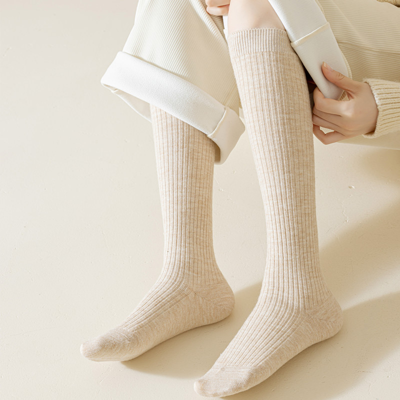 양모 스타킹 기모 송아지 양말 여성의 가을 및 겨울 약간의 압력 슬리밍 고층 따뜻한 양말 Jk 수직 스택 양말