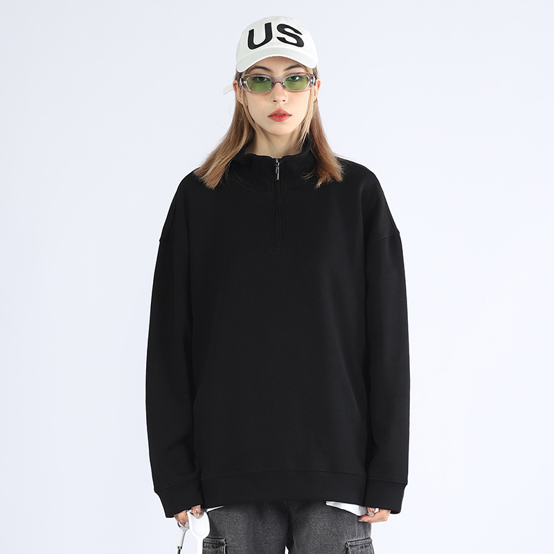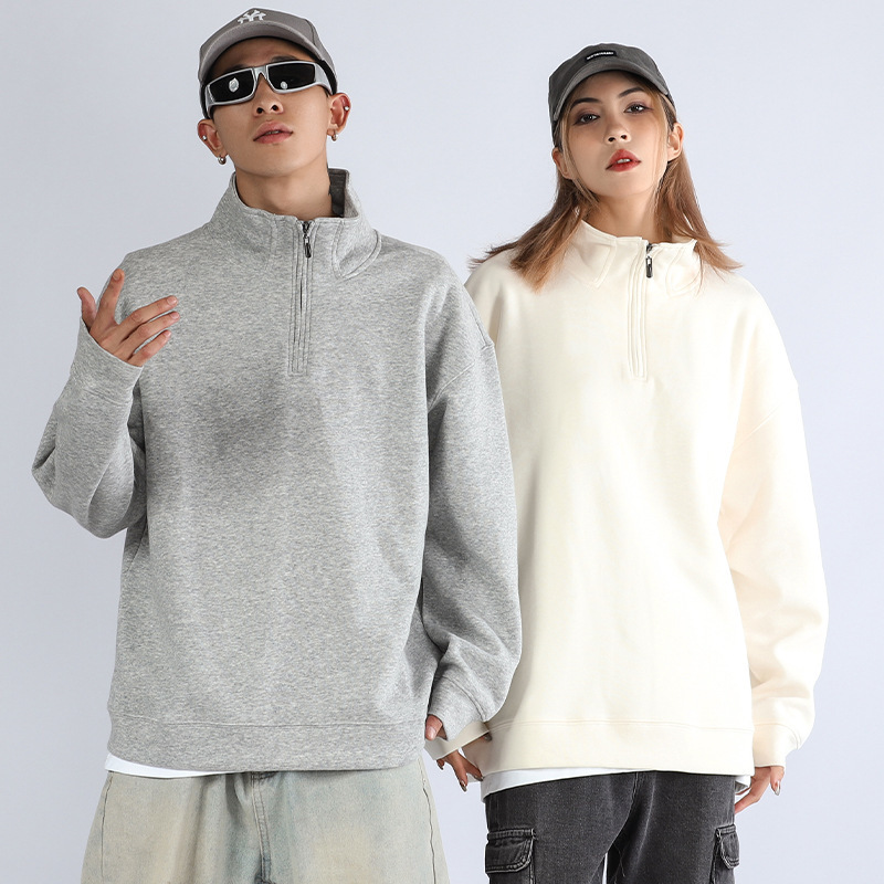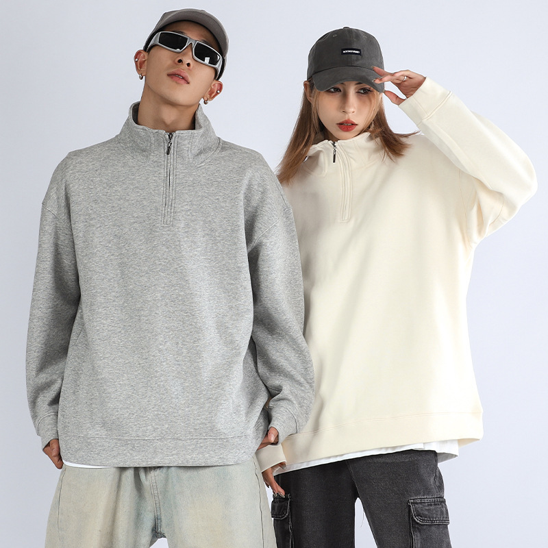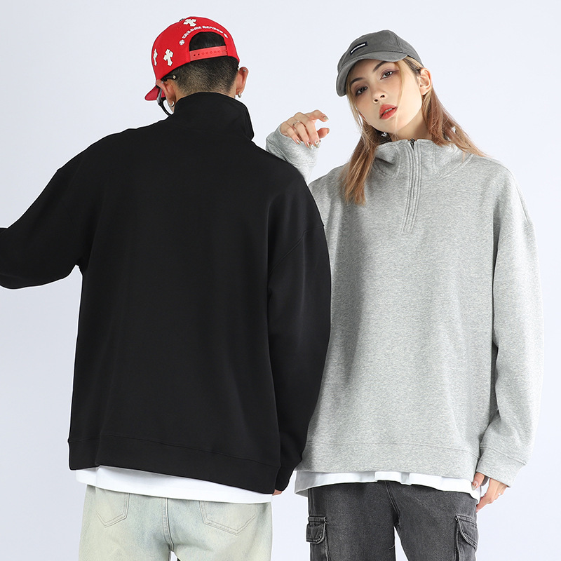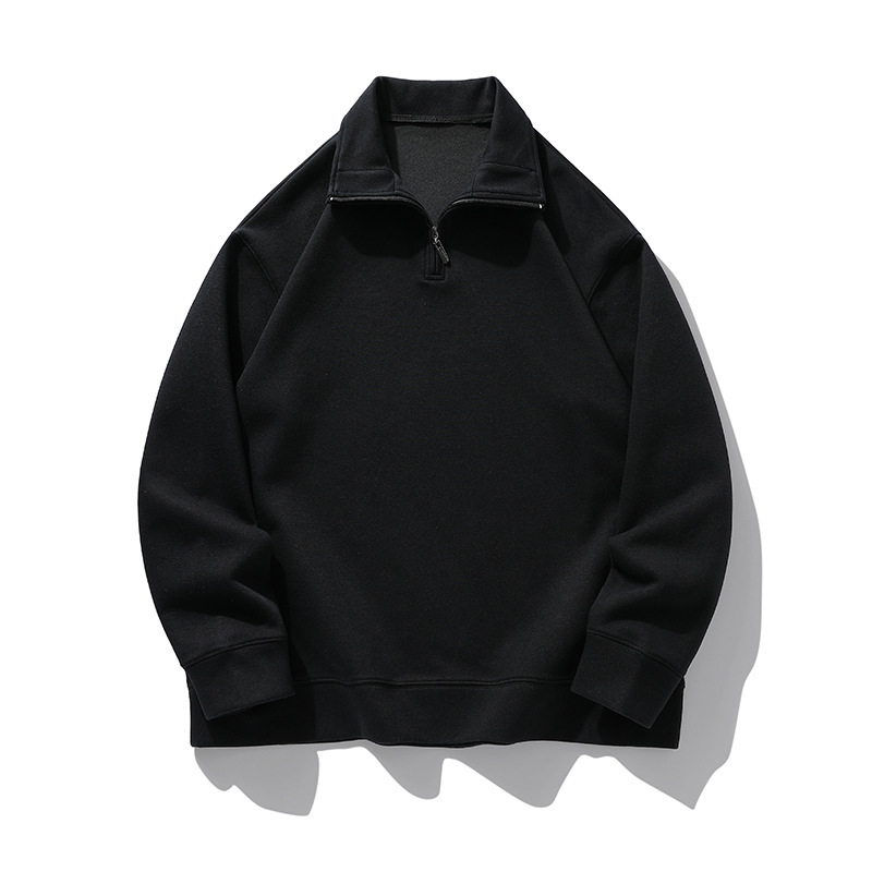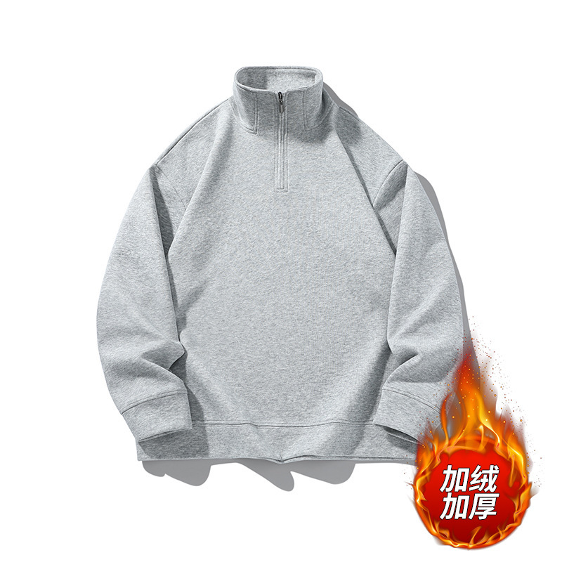 가을과 겨울 기모 반 지퍼 폴로 셔츠 스웨터 남성 패션 옷깃 긴 소매 티셔츠 단색 국경 재고 도매스토어 가기