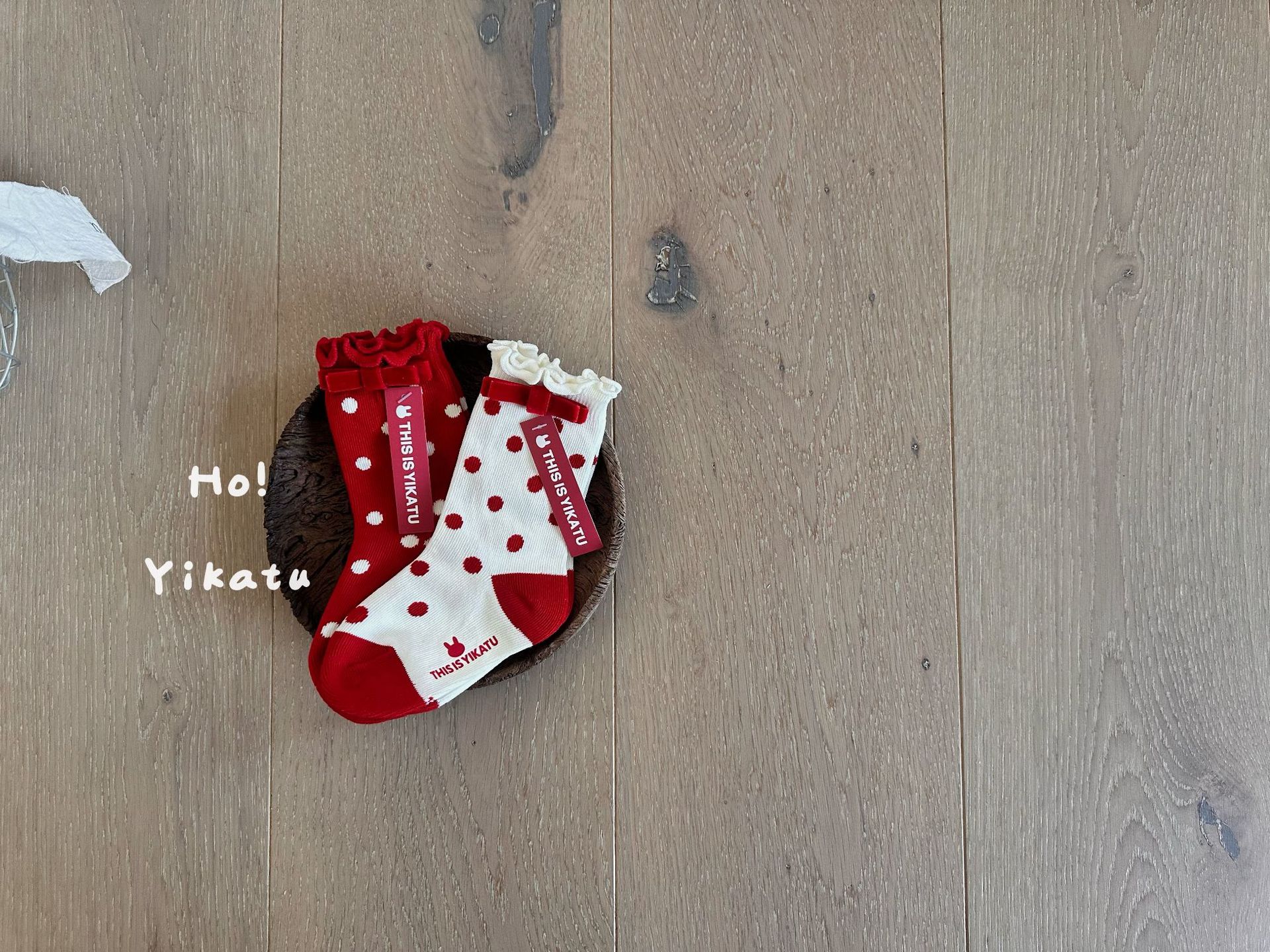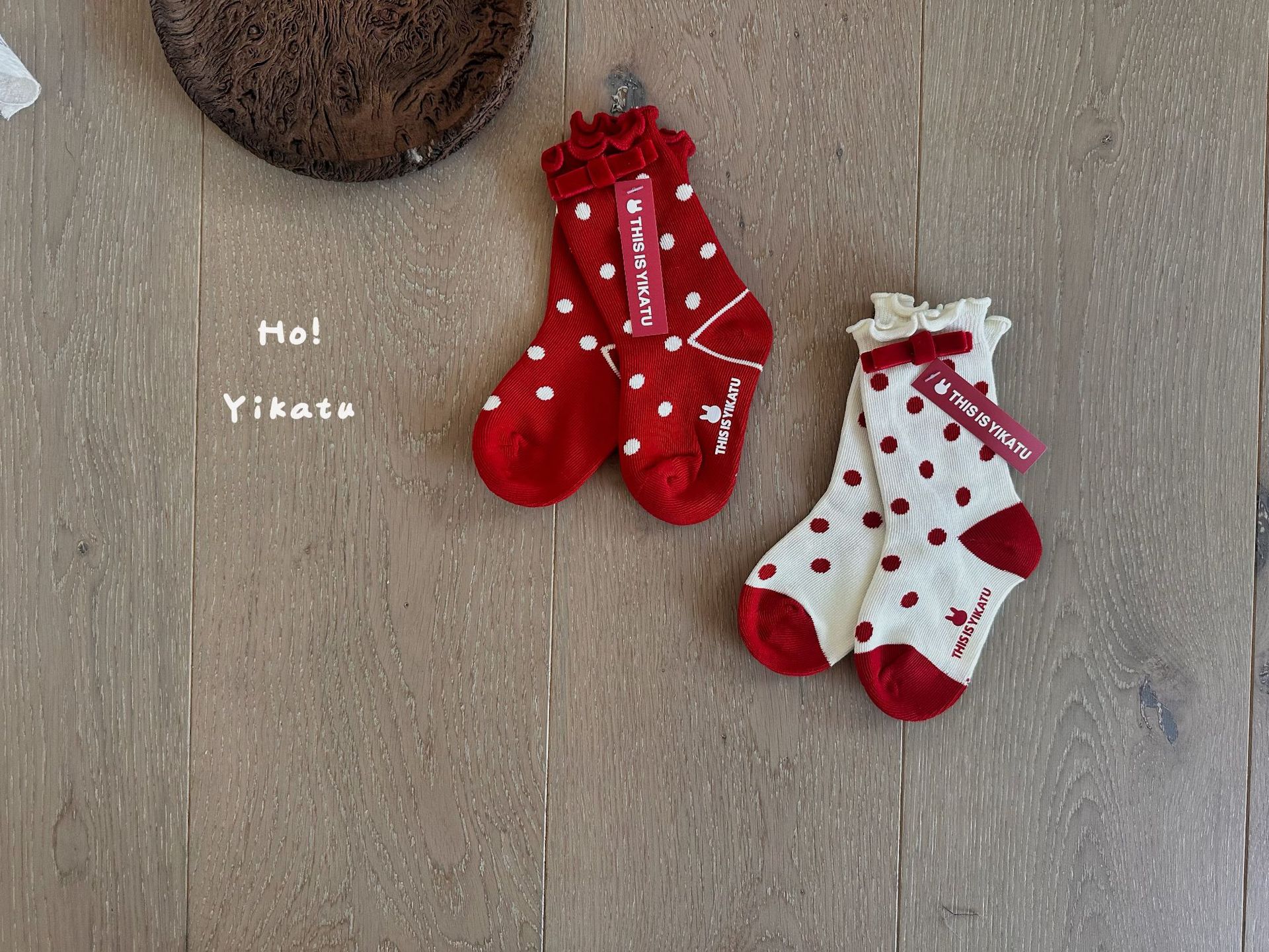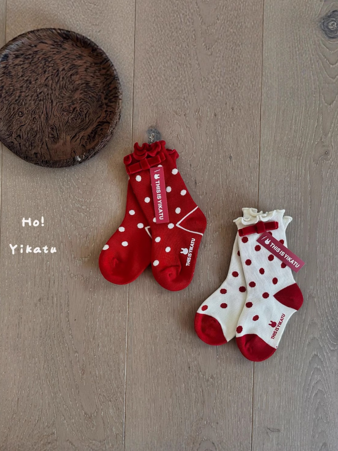 Yikatu Ika 토끼 어린이 양말 도매 2024 가을 새로운 빨간 나비 점 어린이 양말스토어 가기