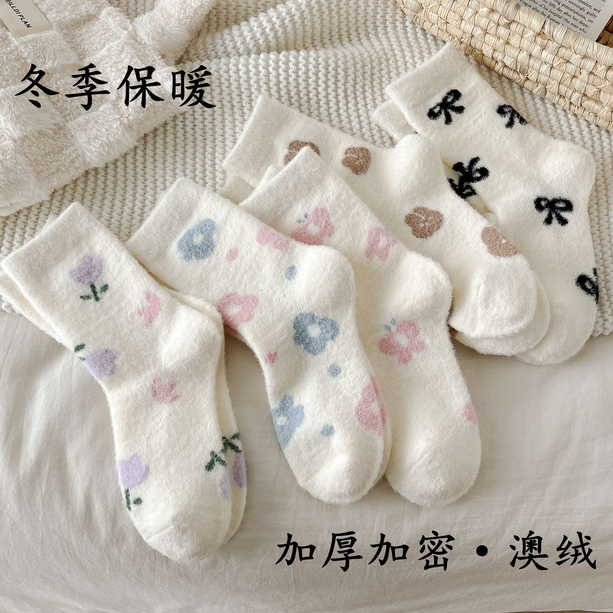호주 벨벳 양말 어린이 가을과 겨울 양말은 두꺼운 따뜻한 바닥 양말을 기모 일본 스위트 홈 올 매치 여성 양말