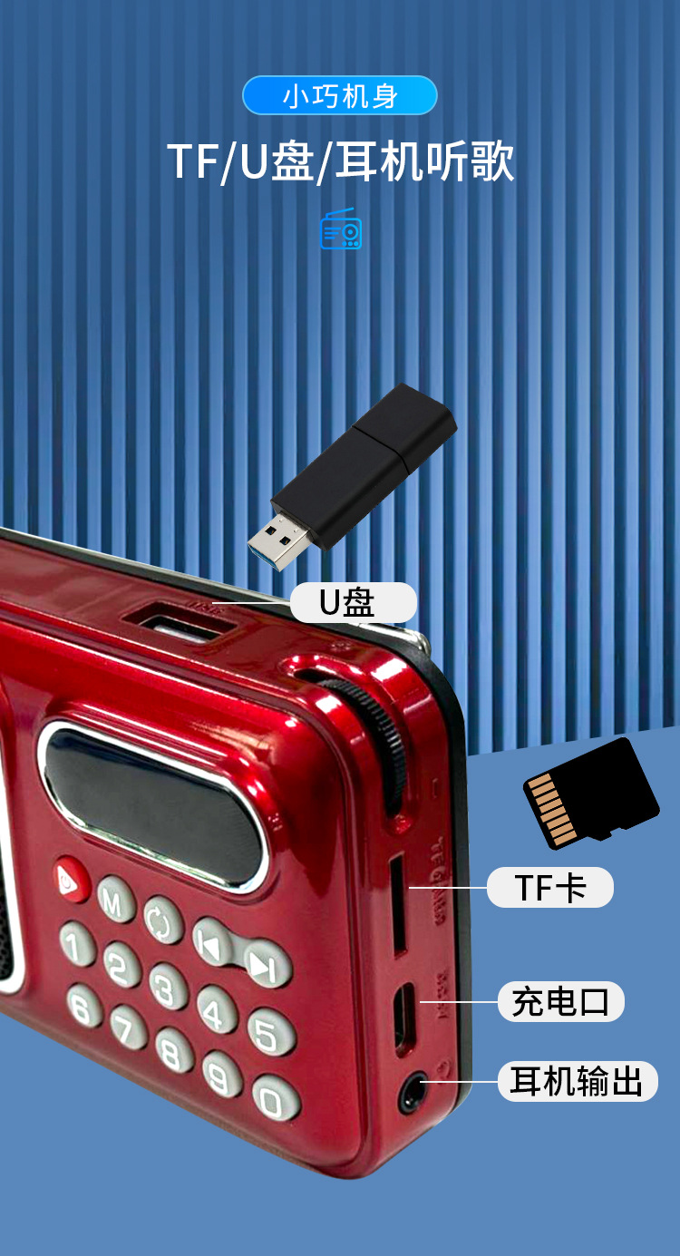 노인 미니 휴대용 블루투스 스테레오 카드 스피커 MP3 플레이어 워크맨 놀이 기계를 위한 라디오스토어 가기