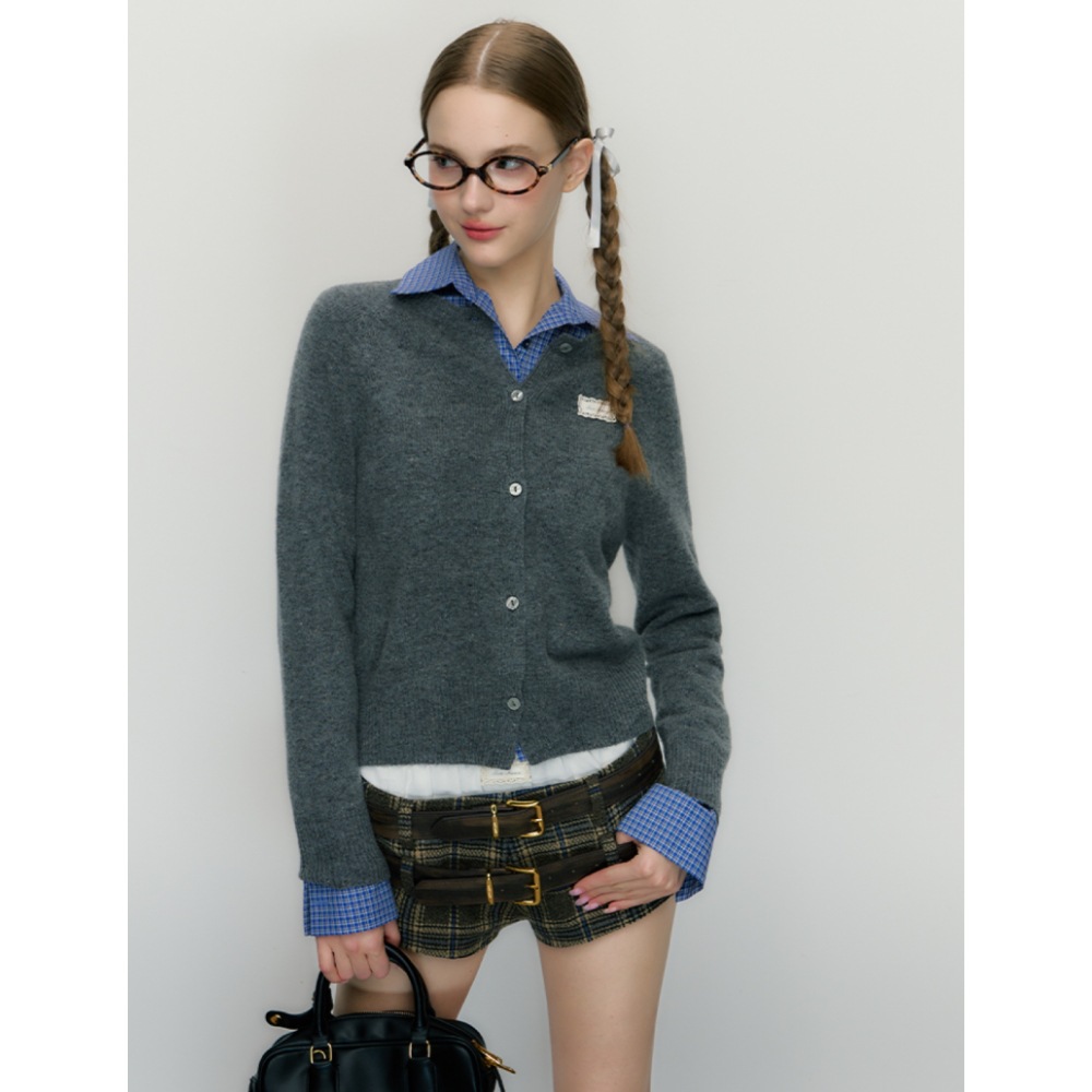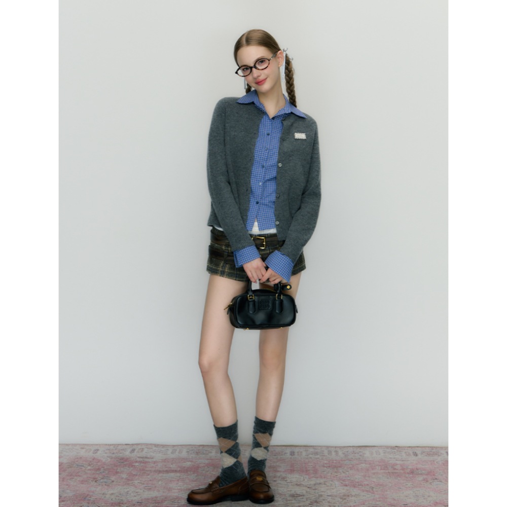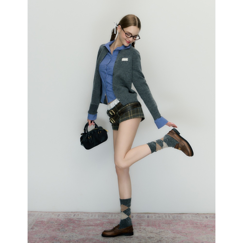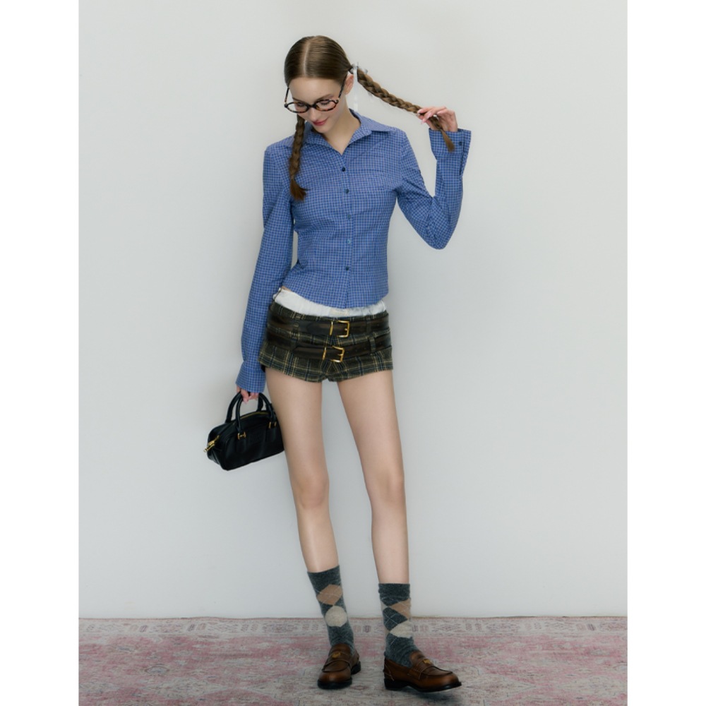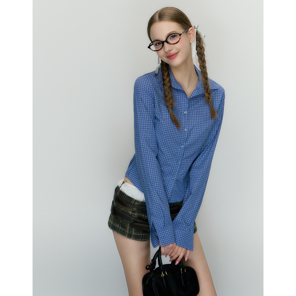 이른 가을 한국 스타일 레트로 긴 소매 셔츠 여성의 2024 가을 새로운 슬림 핏 블루 체크 탑스토어 가기