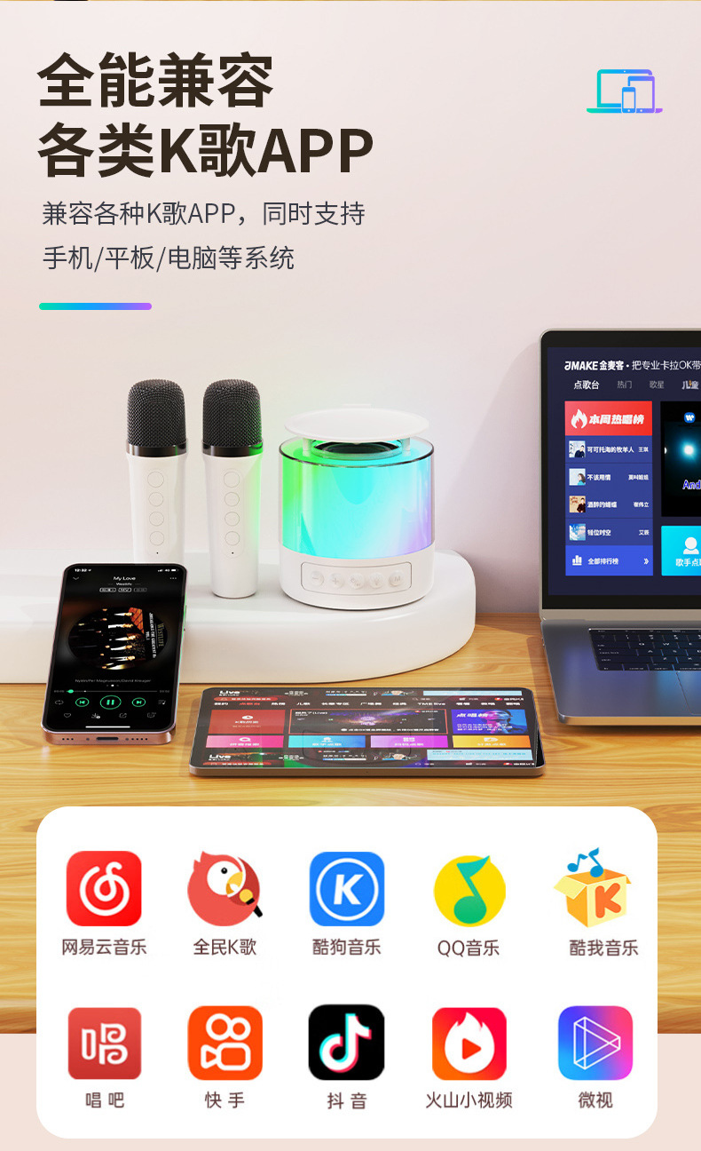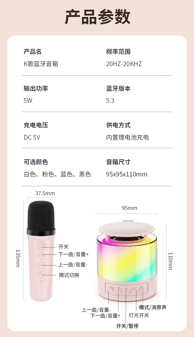 K12 블루투스 Ksong 스피커 통합 마이크 마이크 라이트 야외 어린이 홈 KTV 오디오 세트 Ksong Bao
