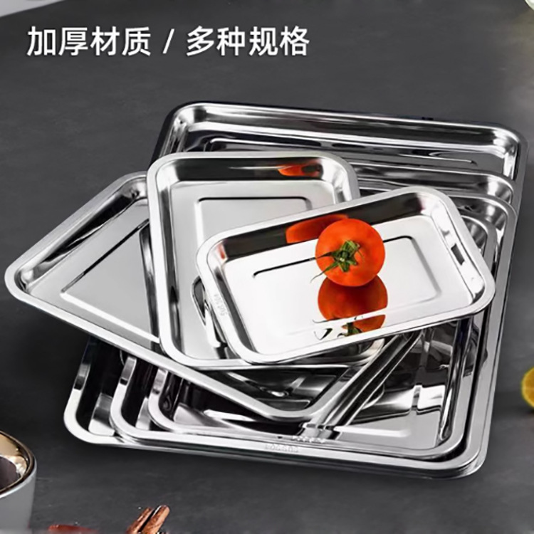스테인레스 스틸 트레이 직사각형 찐 라이스 스퀘어 플레이트 바베큐 아이언 플레이트 디너 플레이트 야채 분지 얕은 플레이트 상업용 트레이 디너 플레이트