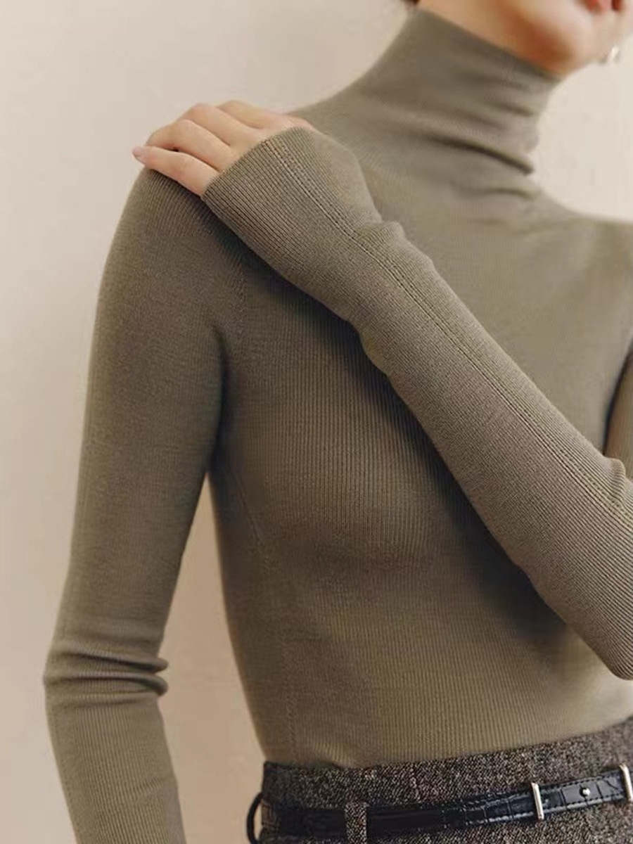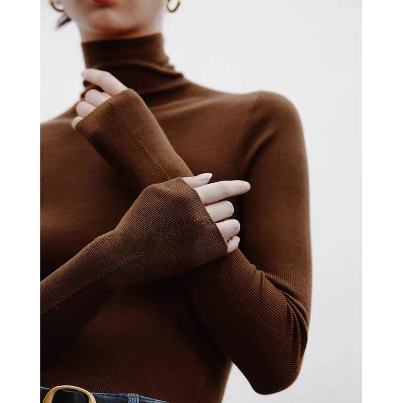 가을과 겨울 프랑스 스타일 블랙 더미 칼라 터틀넥 울 니트웨어 여성용 서양식 내베이스 스웨터 하이 엔드 탑스토어 가기