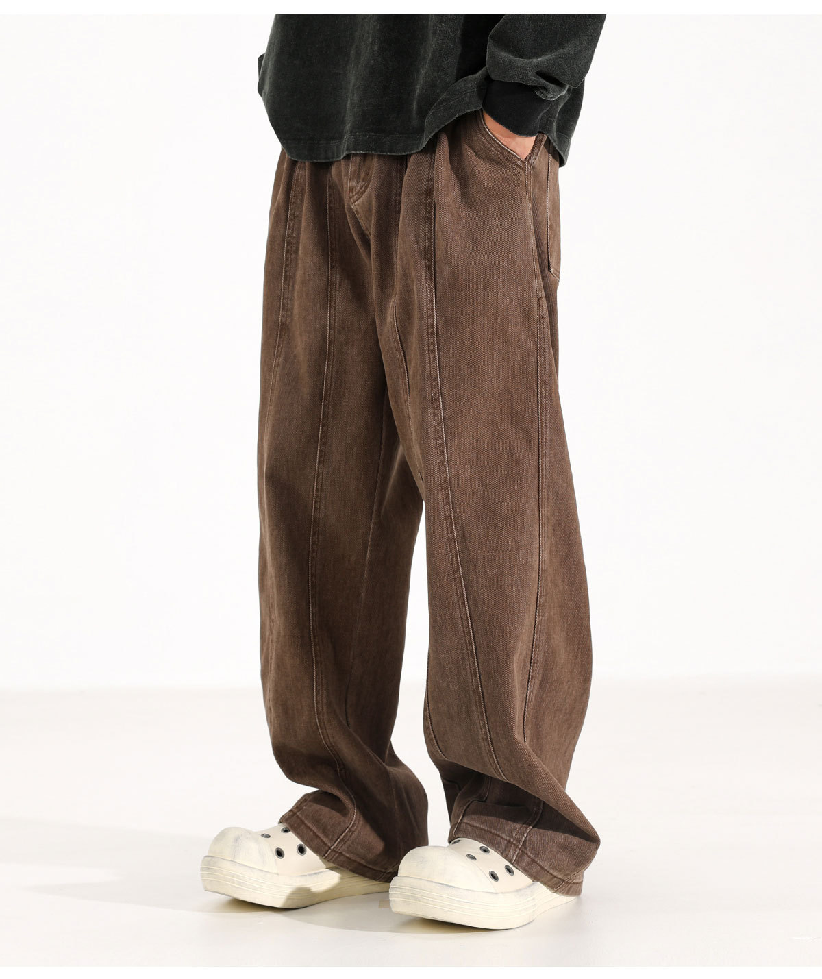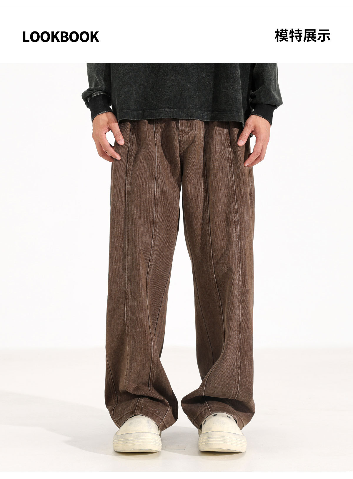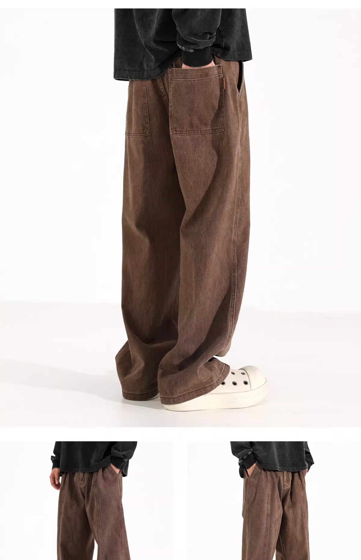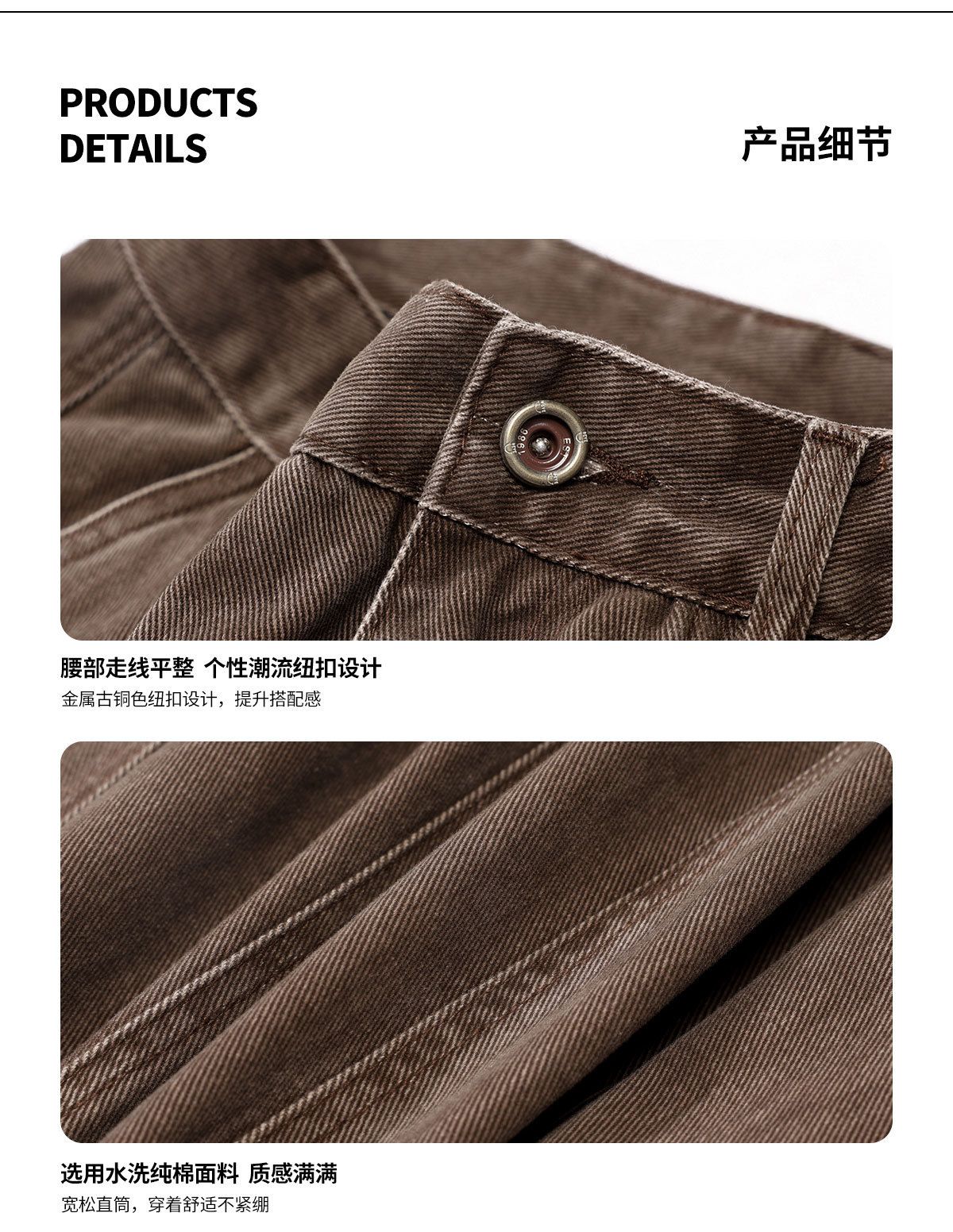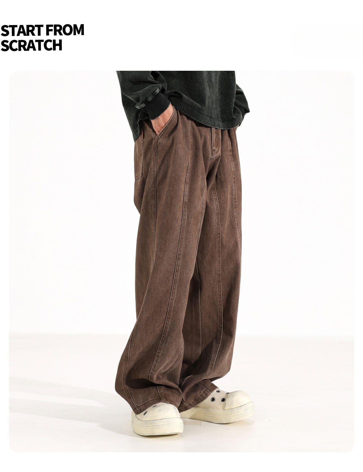 Ceecuz Maillard는 스트레이트 청바지 남성 아메리칸 스타일 레트로 헤비 세탁 느슨한 넓은 다리 캐주얼 바지