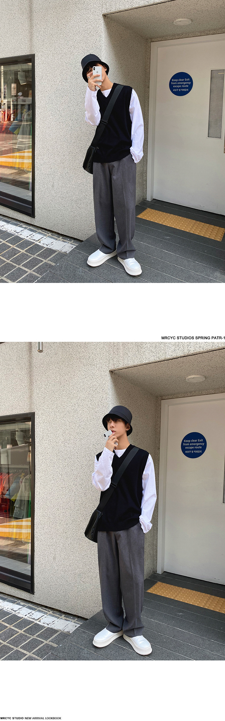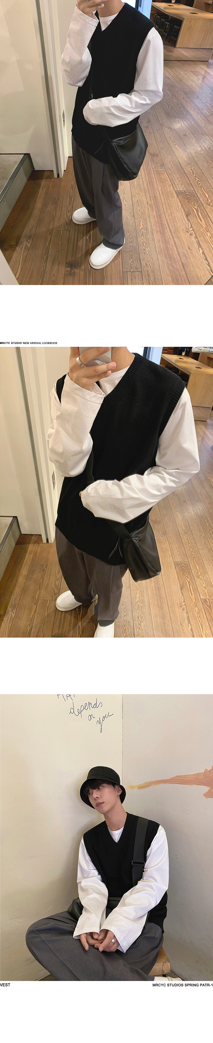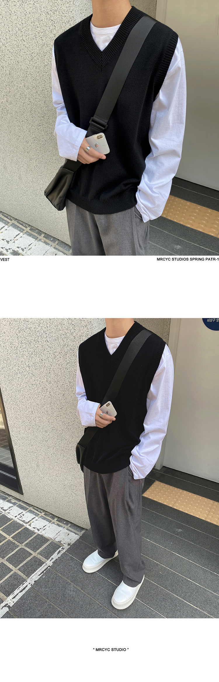 봄과 가을 남성용 민소매 스웨터 조끼 루즈 웨이스트 코트베이스 셔츠 V-넥 스웨터 두꺼운 한국 스타일 조끼 트렌디