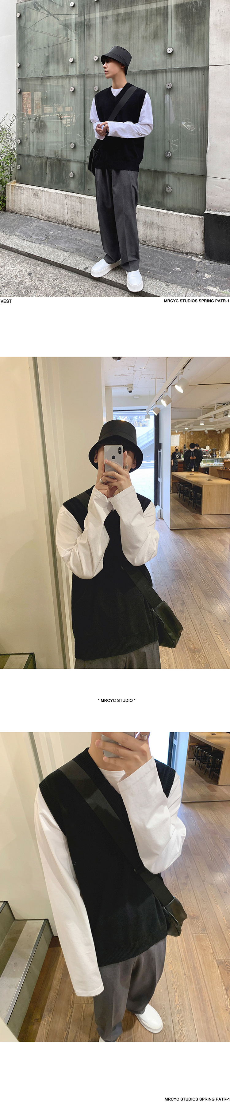봄과 가을 남성용 민소매 스웨터 조끼 루즈 웨이스트 코트베이스 셔츠 V-넥 스웨터 두꺼운 한국 스타일 조끼 트렌디스토어 가기