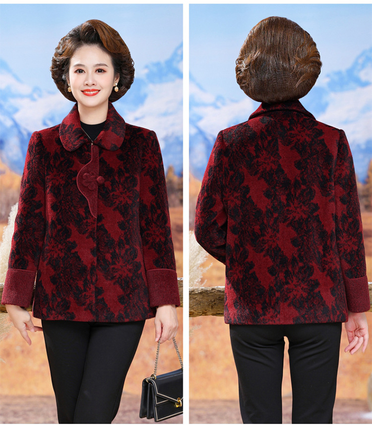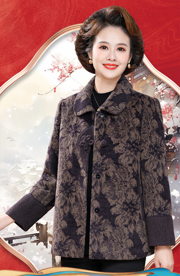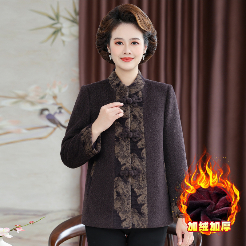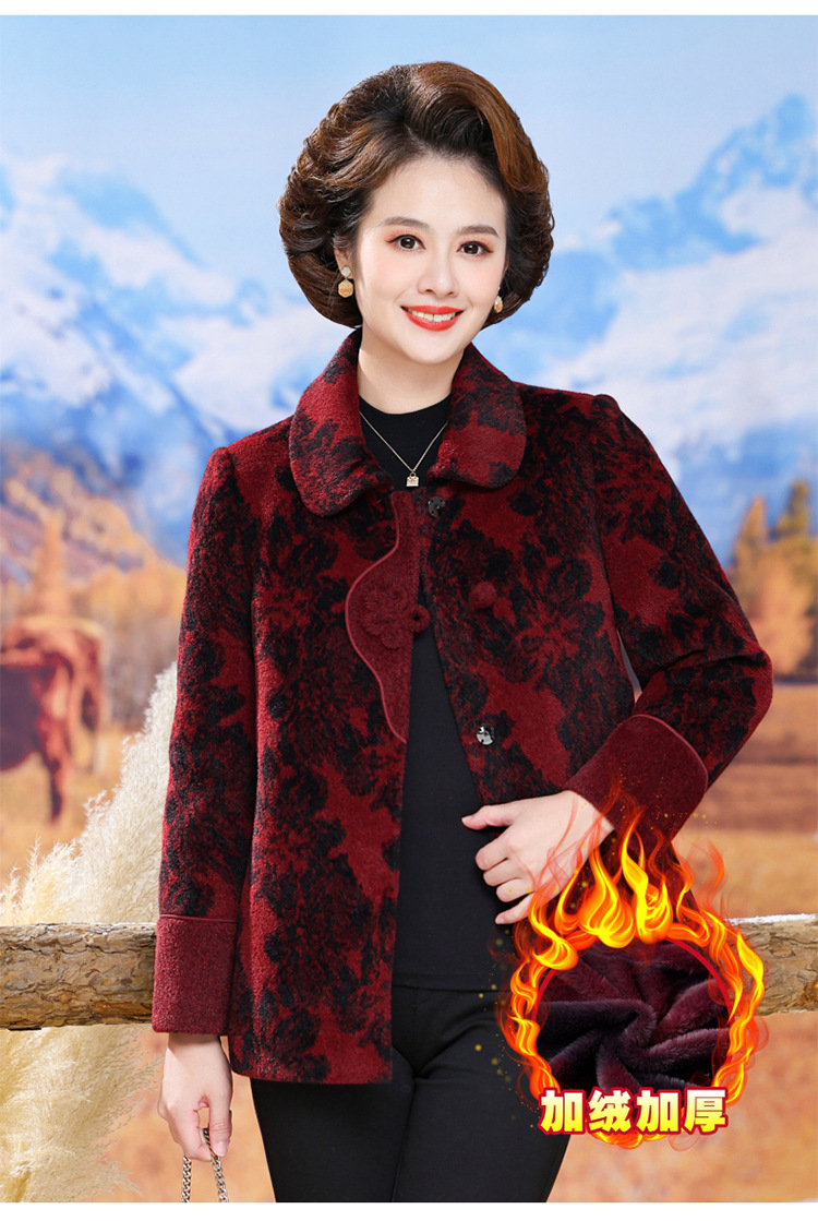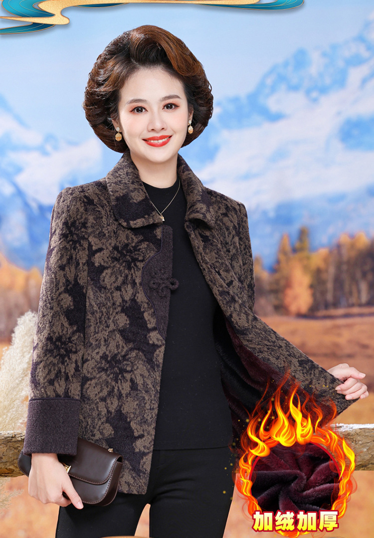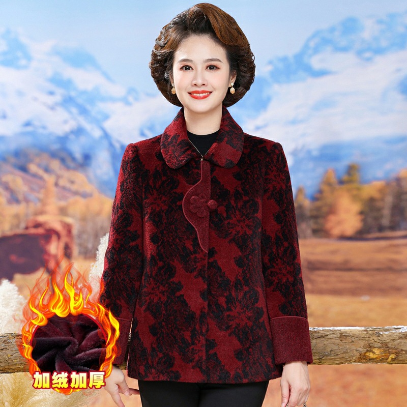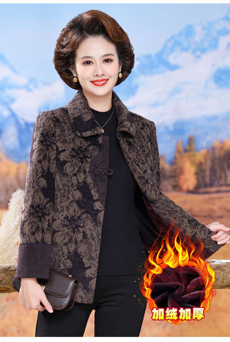 어머니의 겨울 두꺼운 따뜻한 모직 기모 짧은 여성 코트 중년 및 노인 여성 코트 서양식 플러스 사이즈 코트