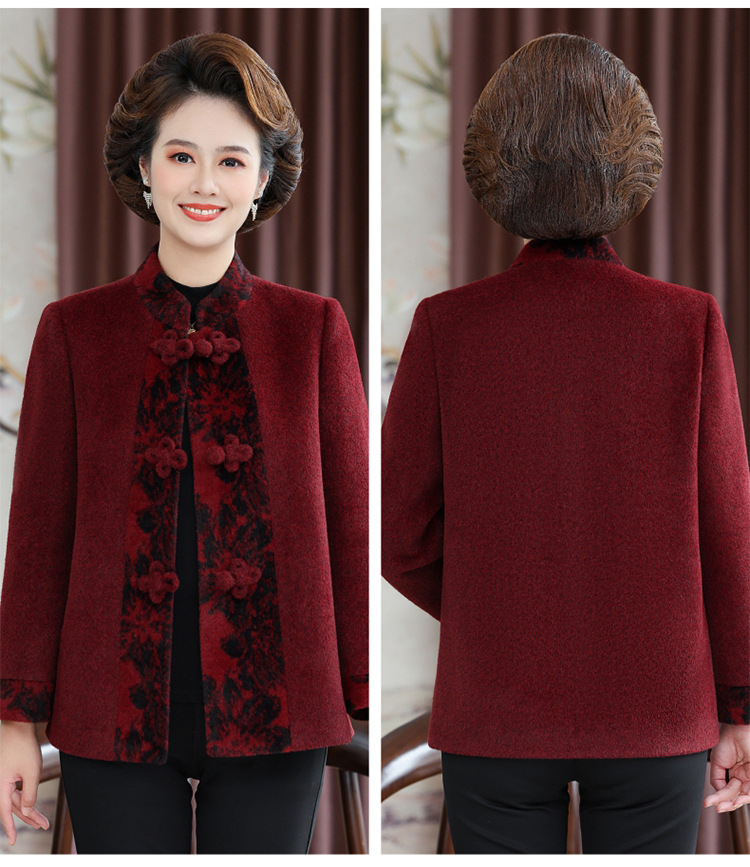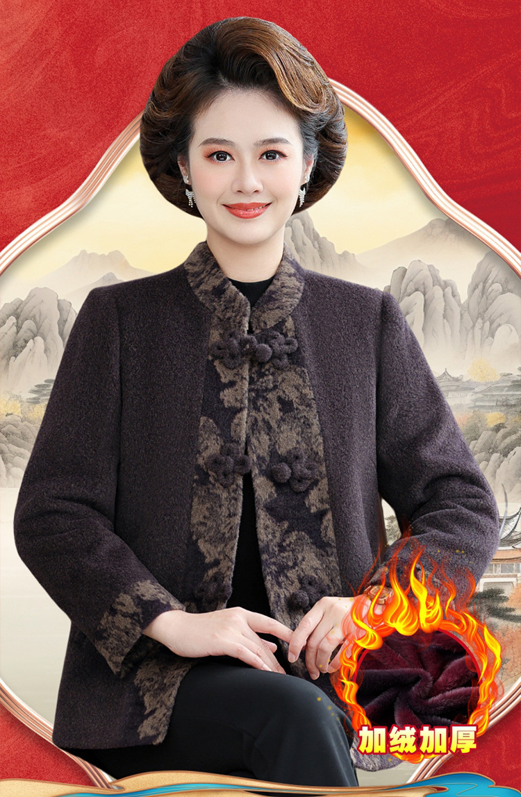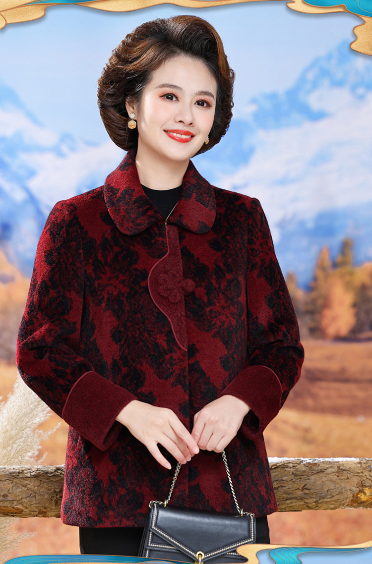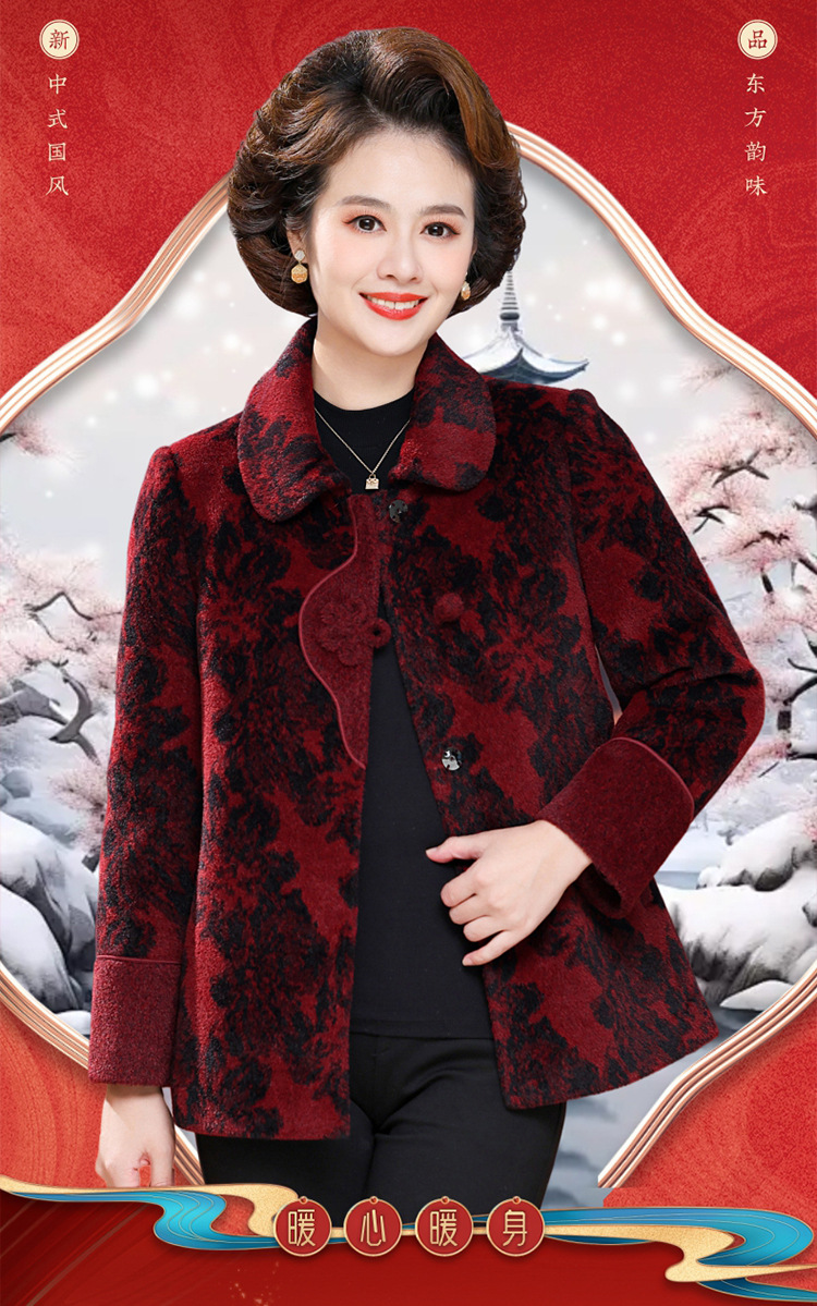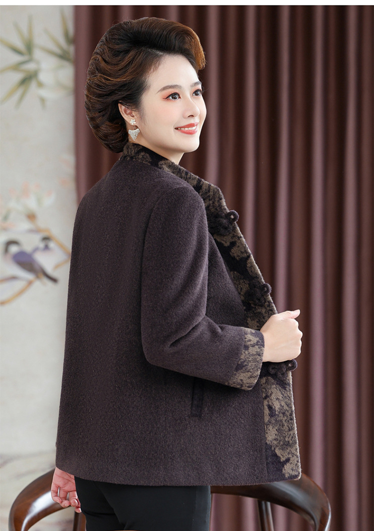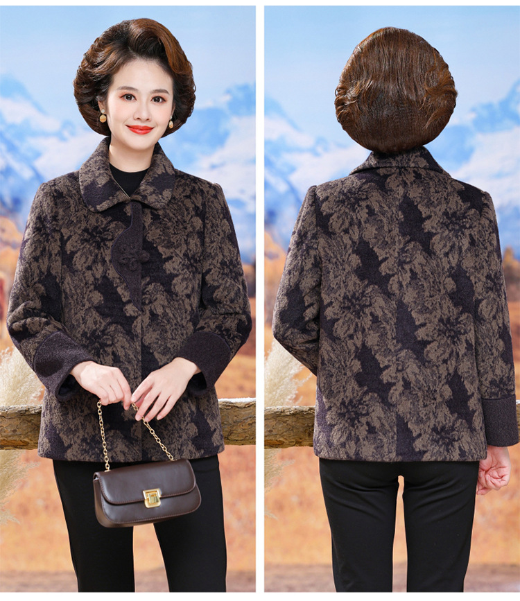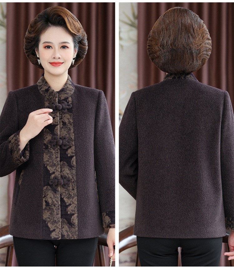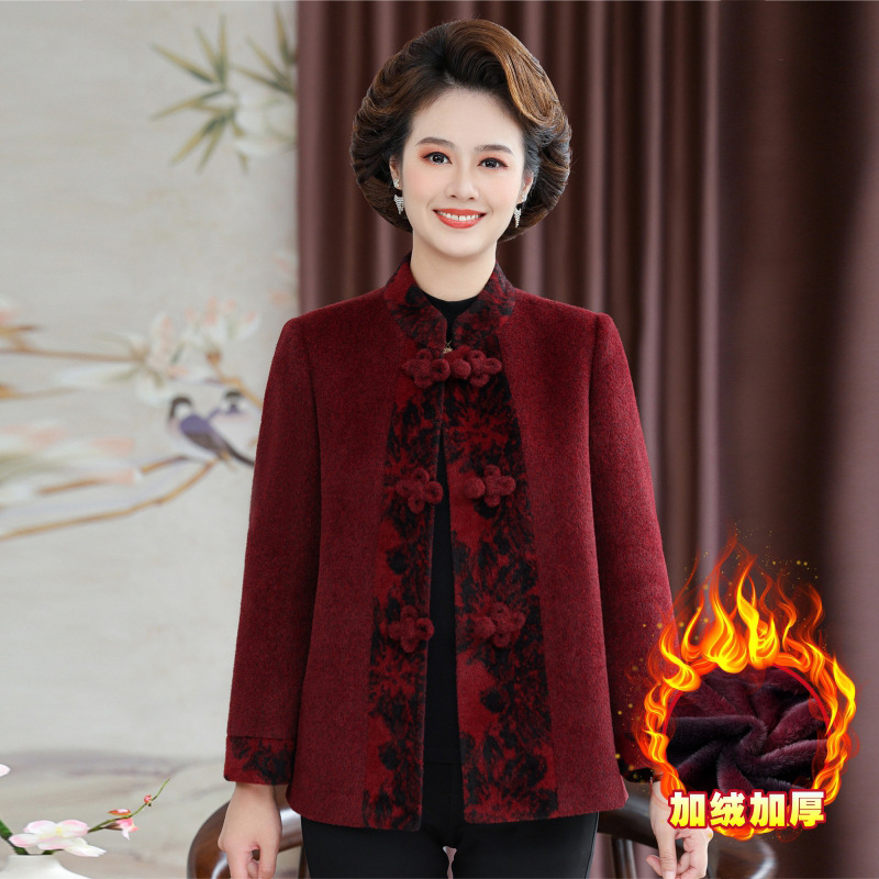 어머니의 겨울 두꺼운 따뜻한 모직 기모 짧은 여성 코트 중년 및 노인 여성 코트 서양식 플러스 사이즈 코트