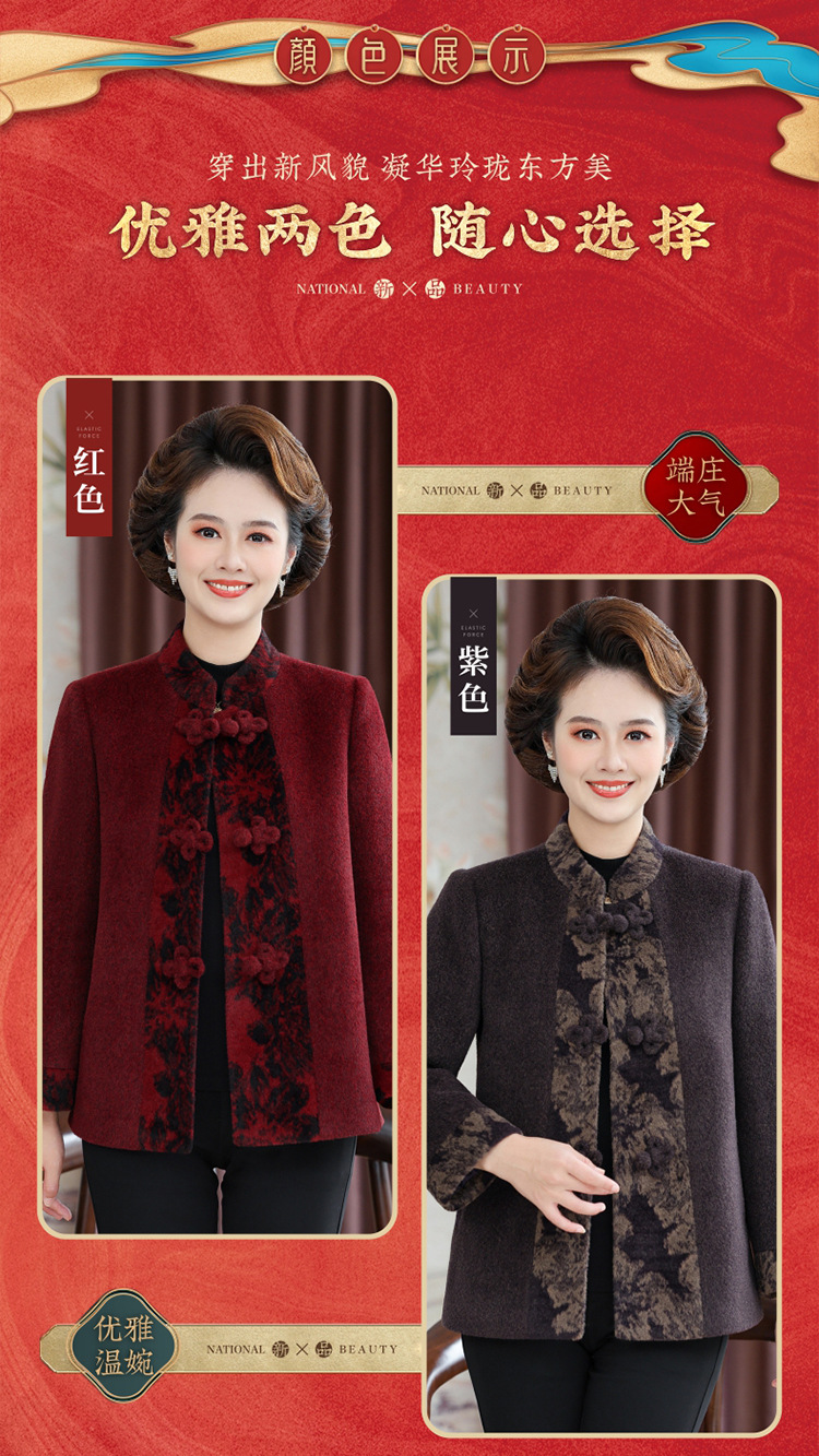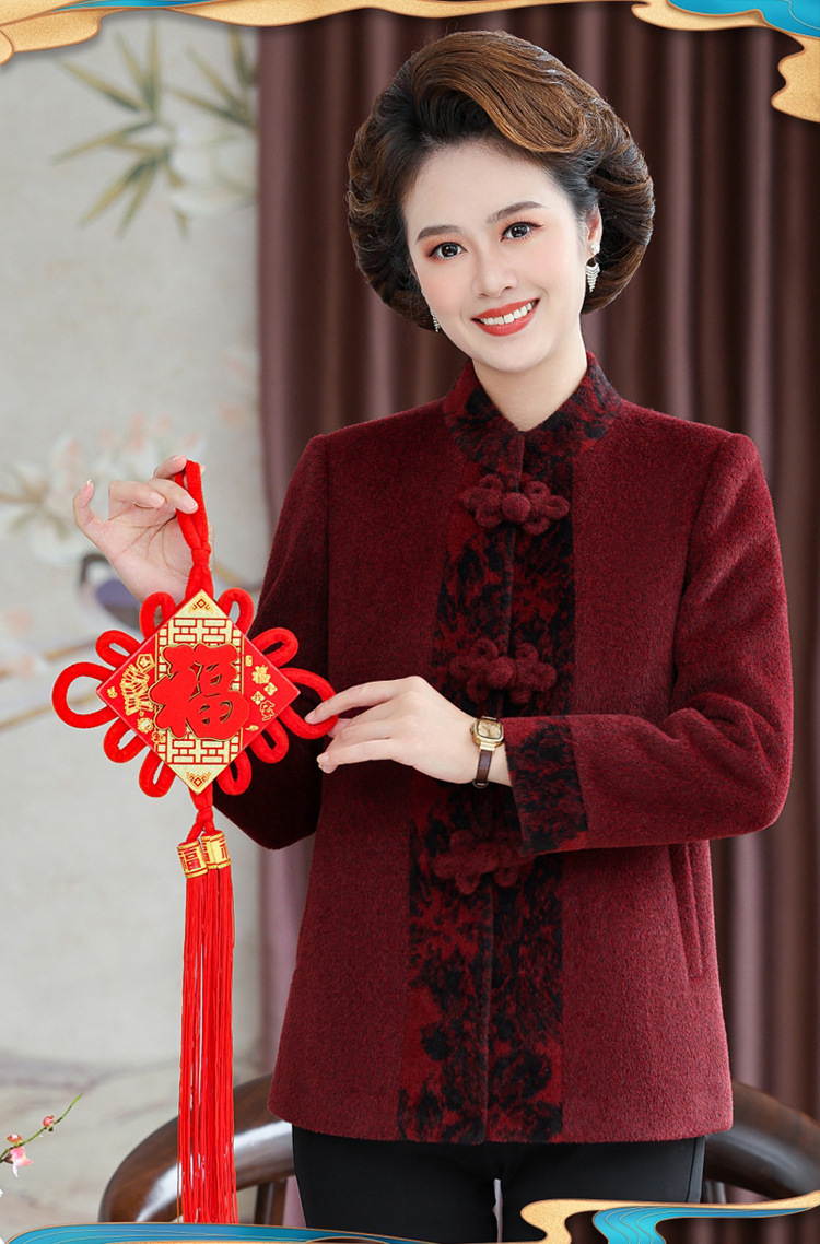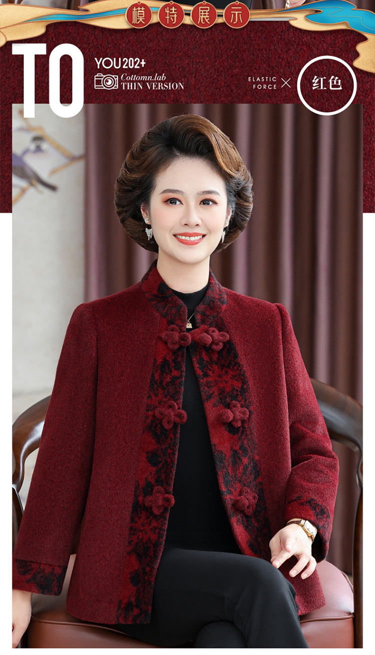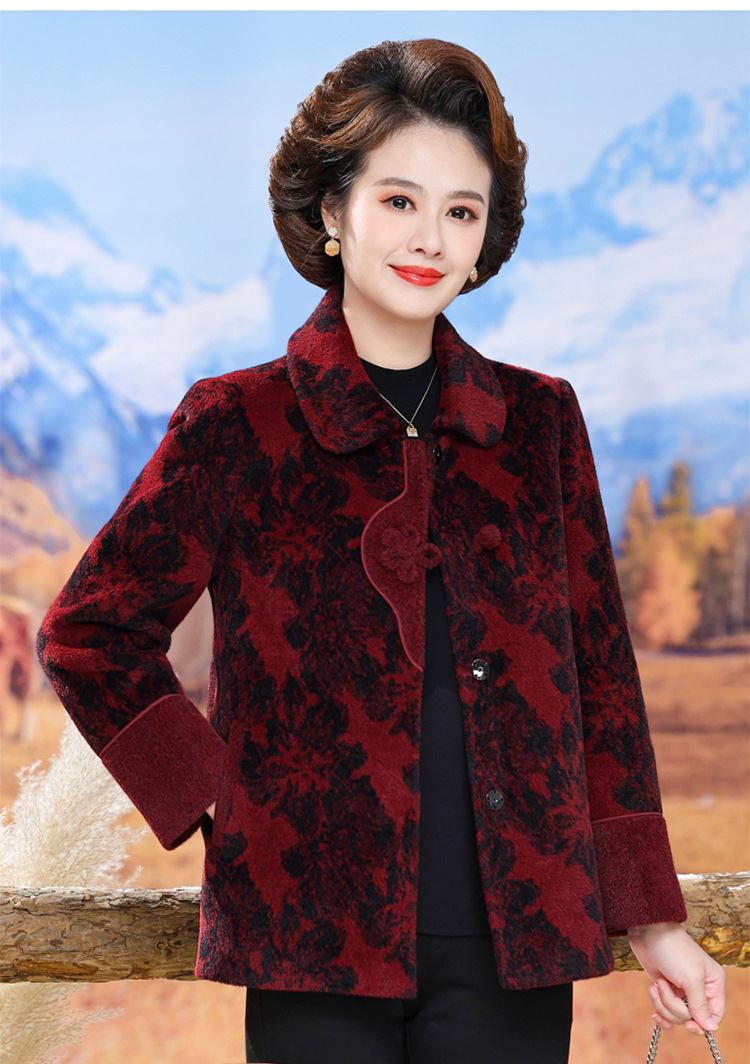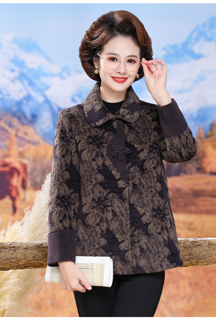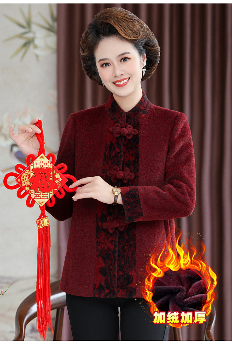 어머니의 겨울 두꺼운 따뜻한 모직 기모 짧은 여성 코트 중년 및 노인 여성 코트 서양식 플러스 사이즈 코트