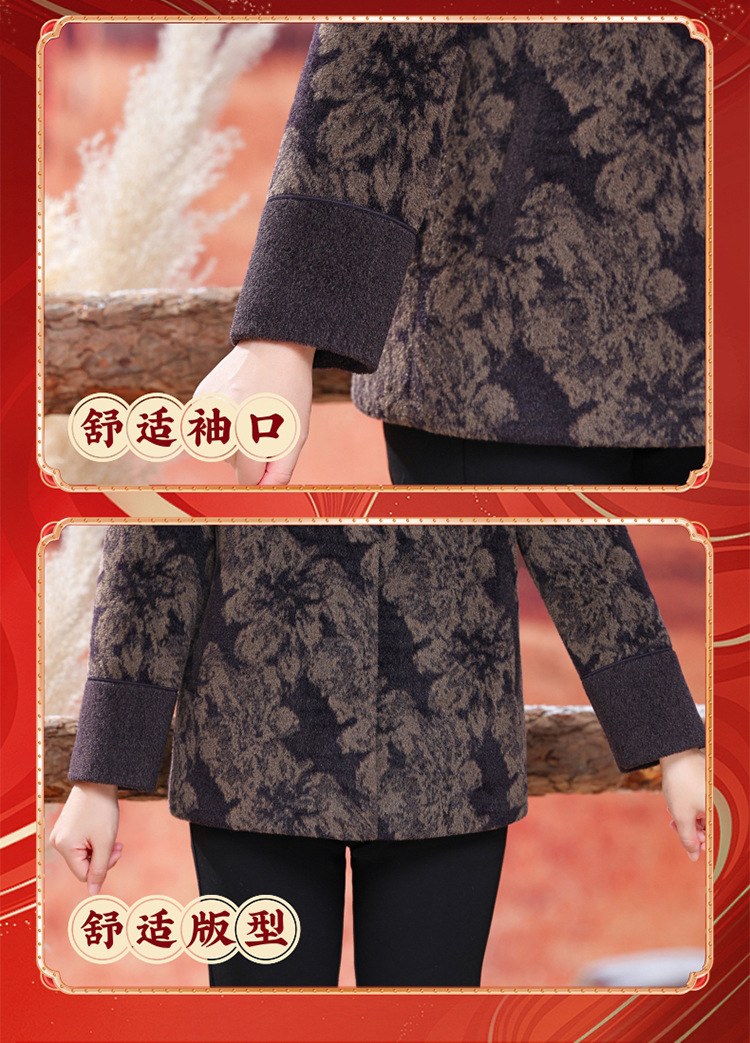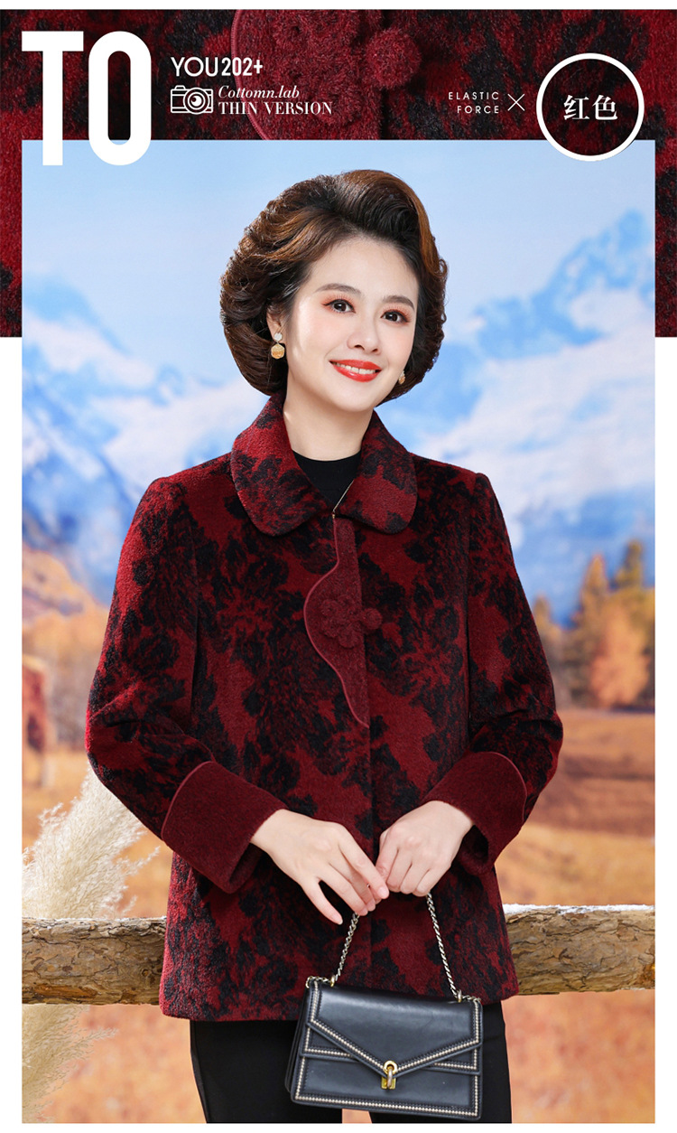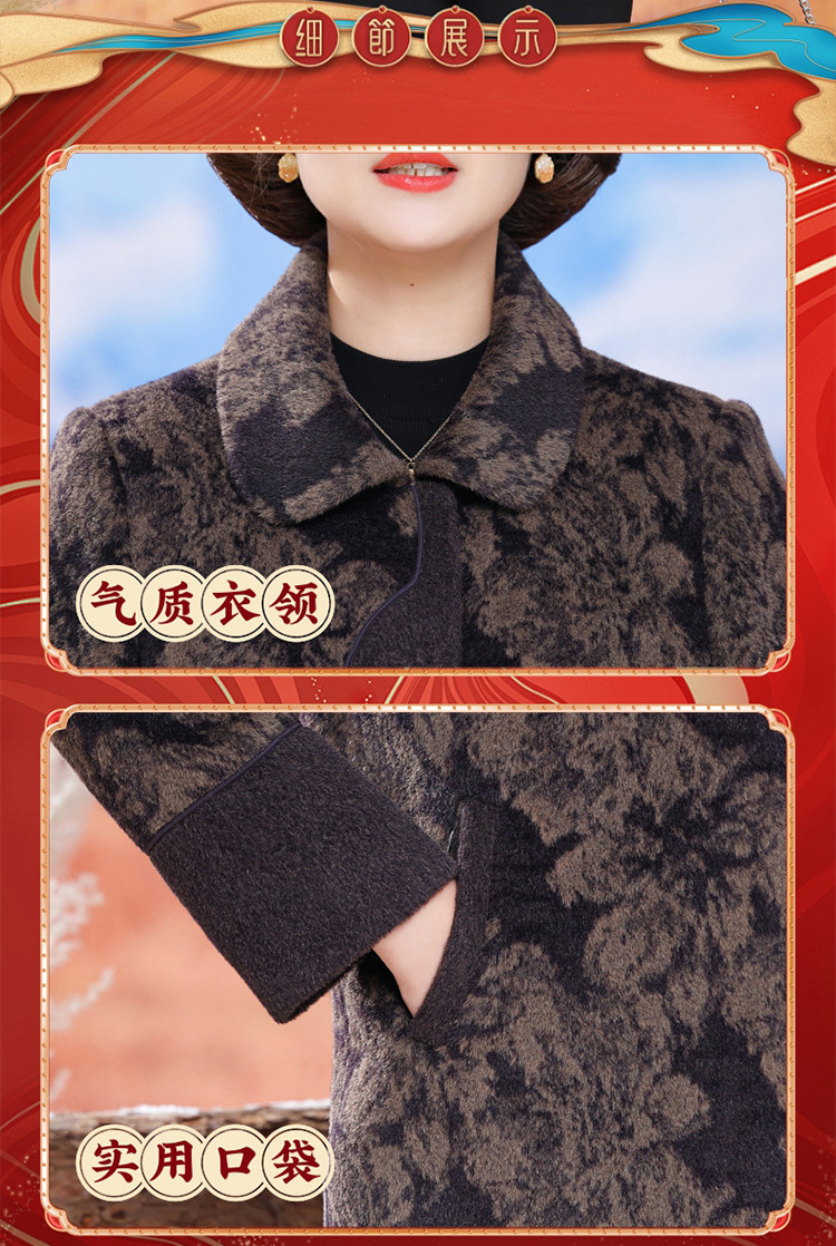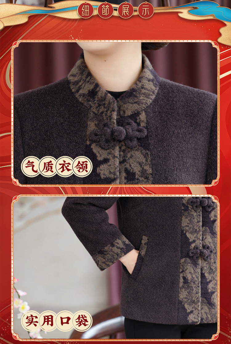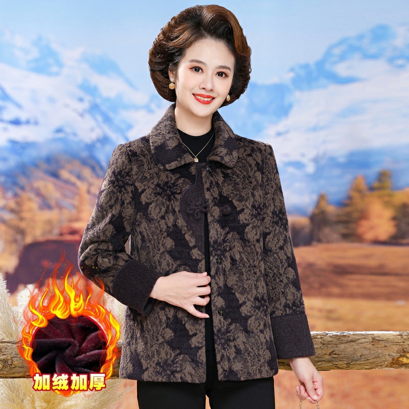 어머니의 겨울 두꺼운 따뜻한 모직 기모 짧은 여성 코트 중년 및 노인 여성 코트 서양식 플러스 사이즈 코트스토어 가기