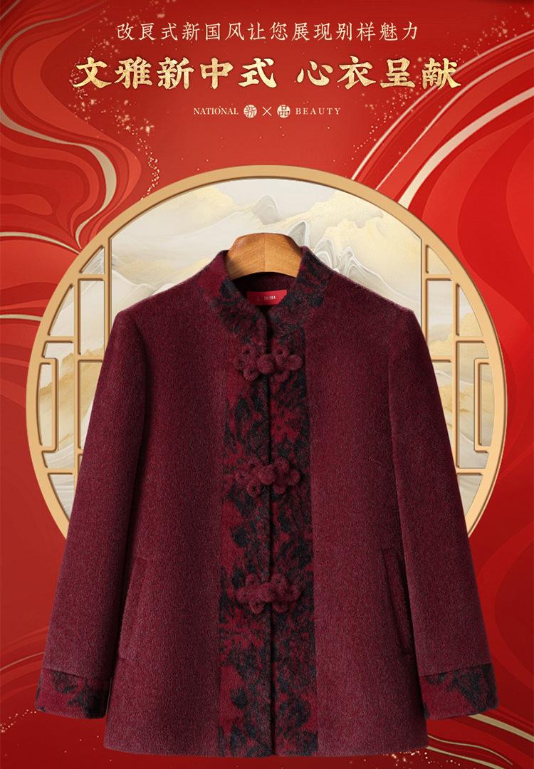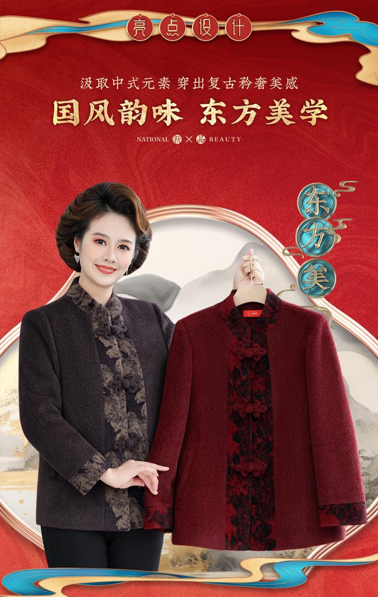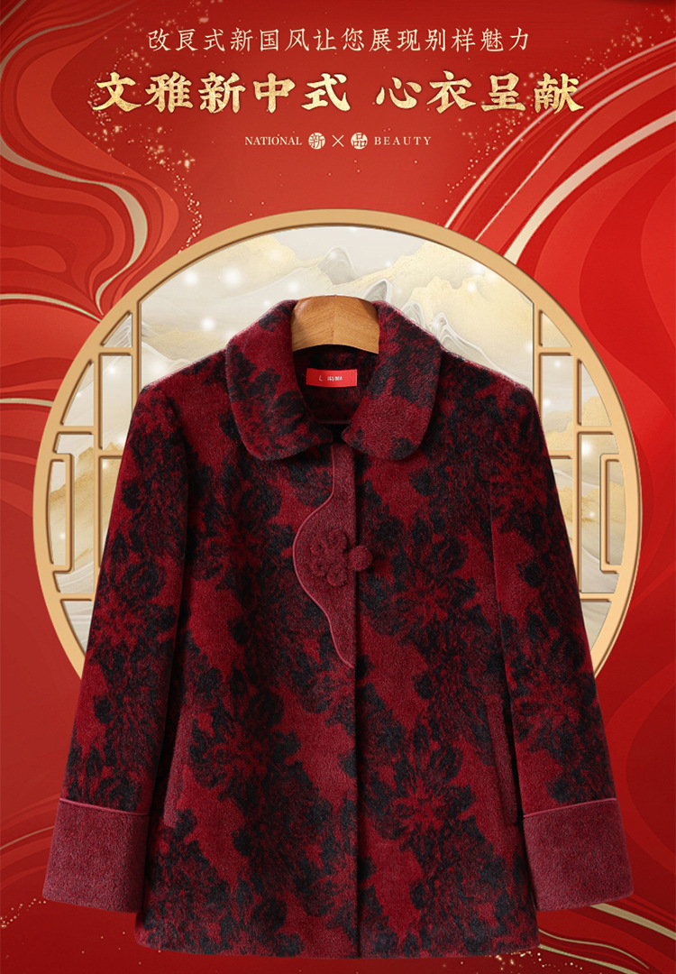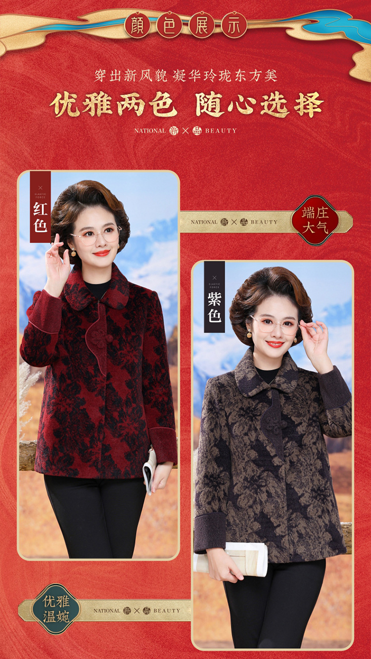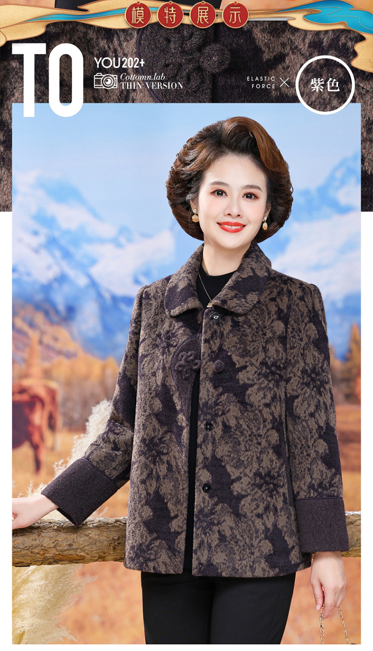 어머니의 겨울 두꺼운 따뜻한 모직 기모 짧은 여성 코트 중년 및 노인 여성 코트 서양식 플러스 사이즈 코트스토어 가기