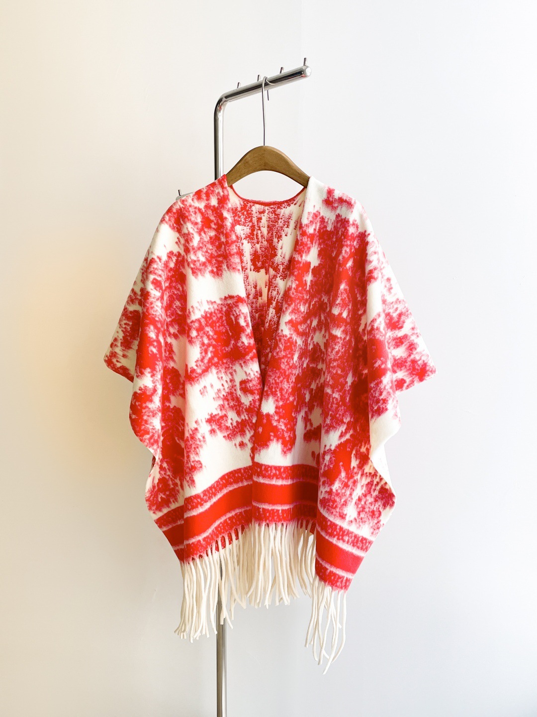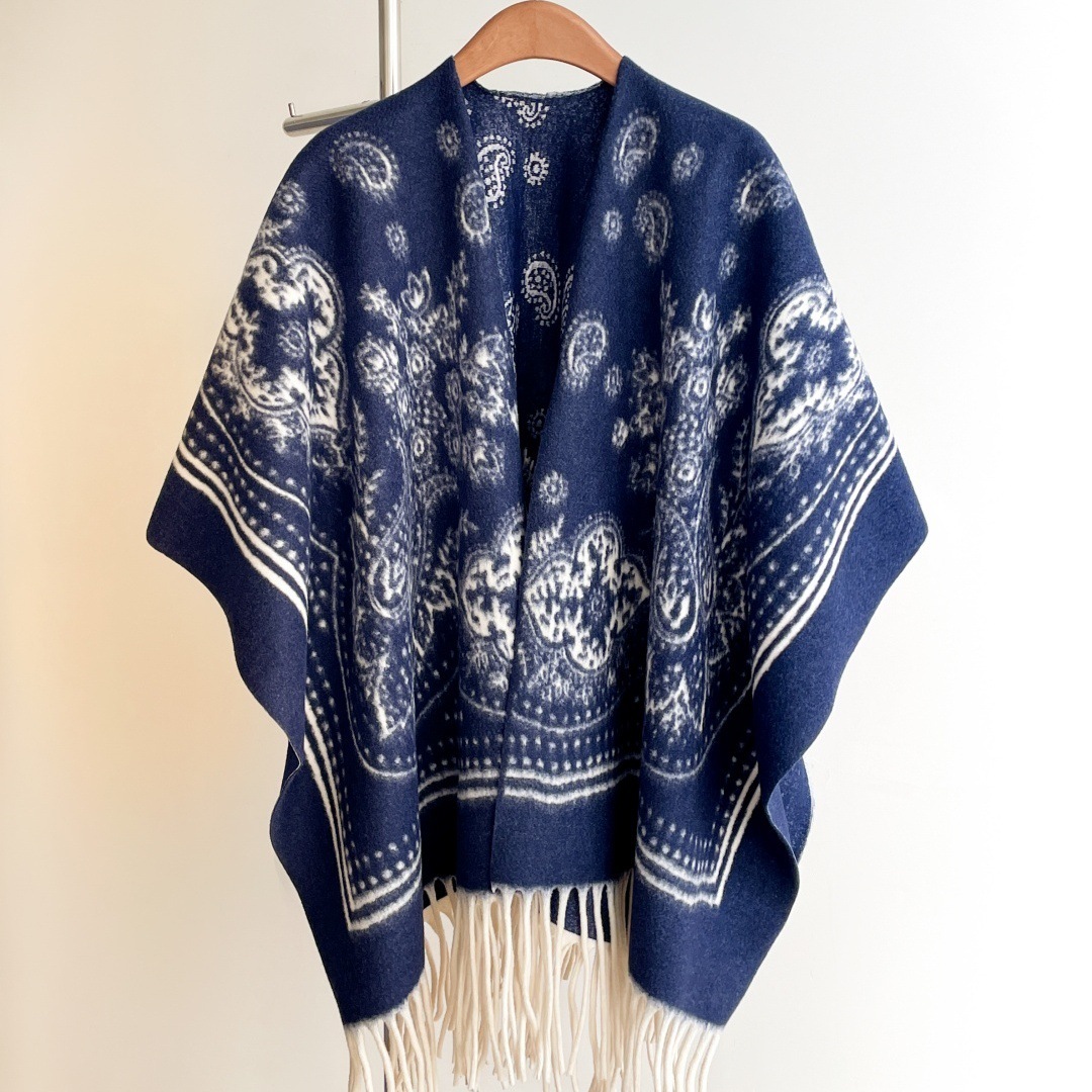 高品质仿羊绒披肩高级感水墨画冬季旅游百搭保暖围巾加厚流苏斗篷
