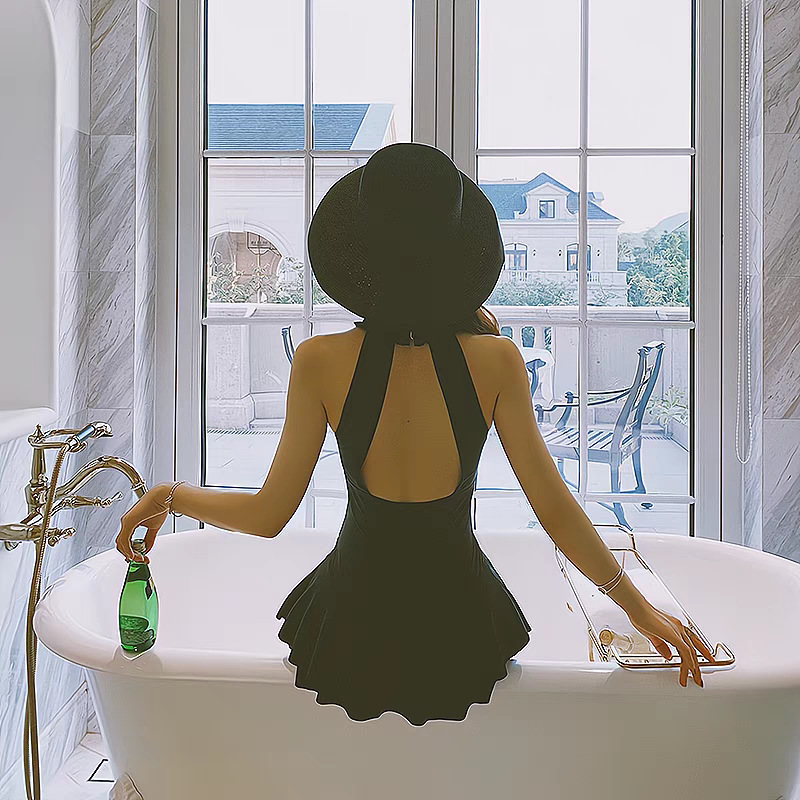 2025 새로운 원피스 수영복, 여성스럽고 아름다운 한국식 스타일, 고급형, 작은 가슴, 살짝 뚱뚱한 온천 수영복 도매