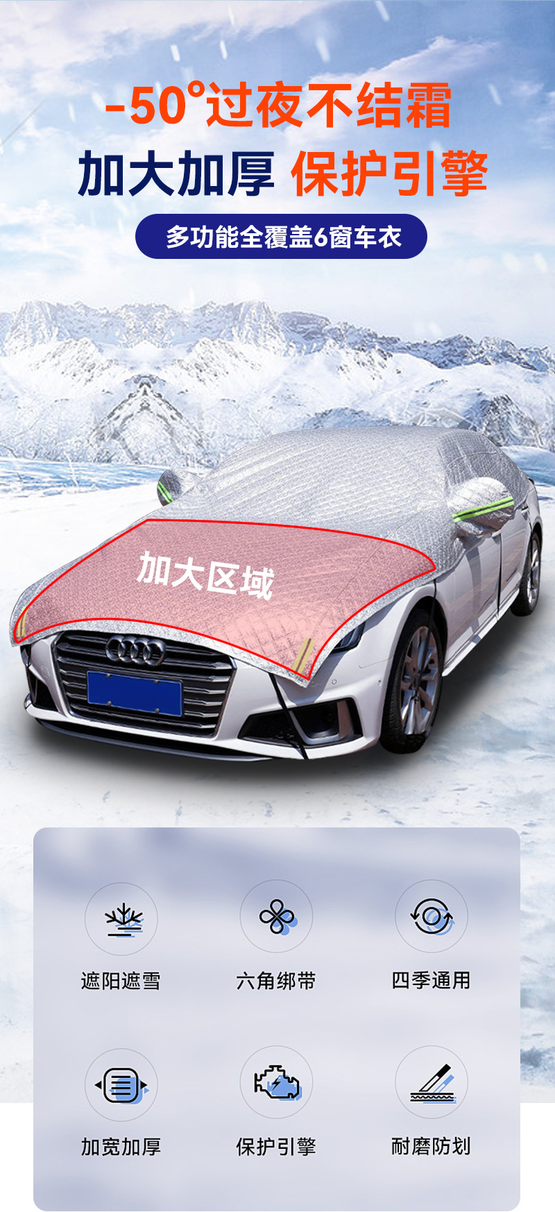 자동차 반덮개형 눈덮개, 서리 및 눈 방지 앞유리 덮개, 차량 전체 6개 창문 눈덮개, 겨울철 차량 눈덮개