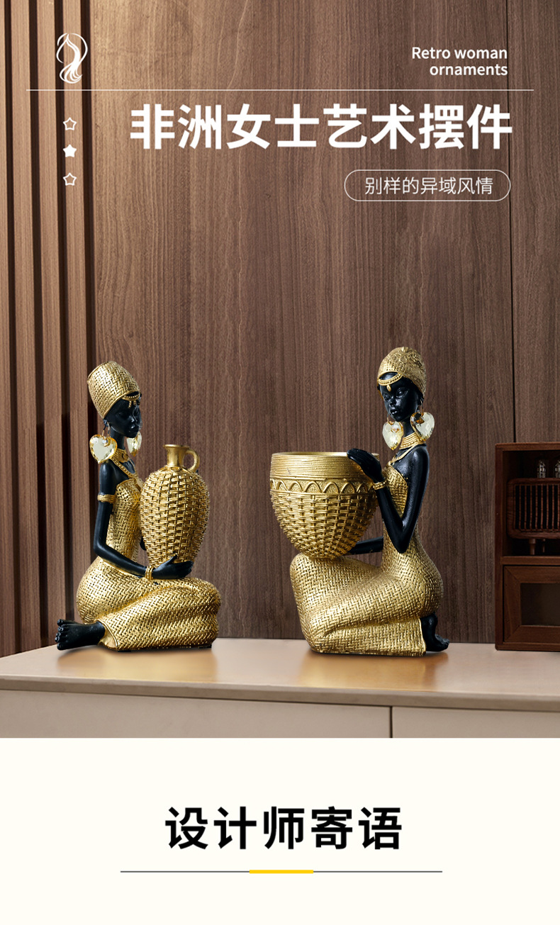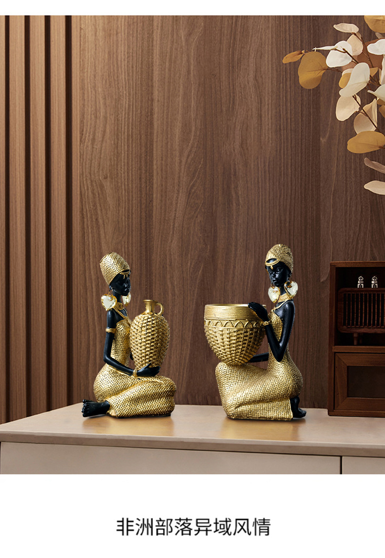 국경 간 복고풍 창조적 인 거실 입구 장식 아프리카 예술 여성 장식 모델 룸 가정용 와인 캐비닛 TV 캐비닛