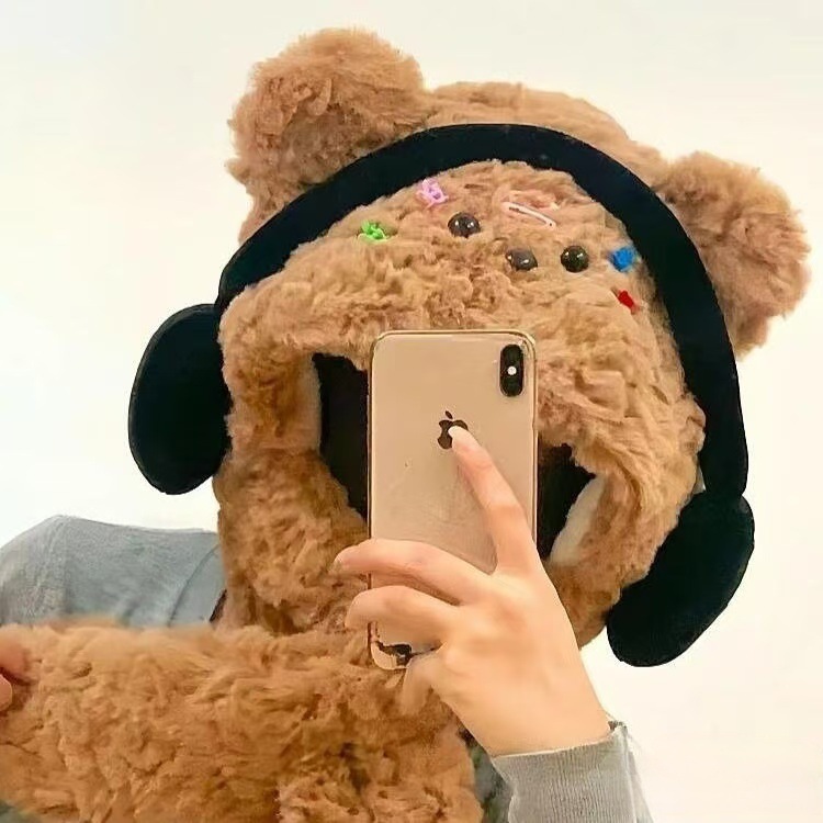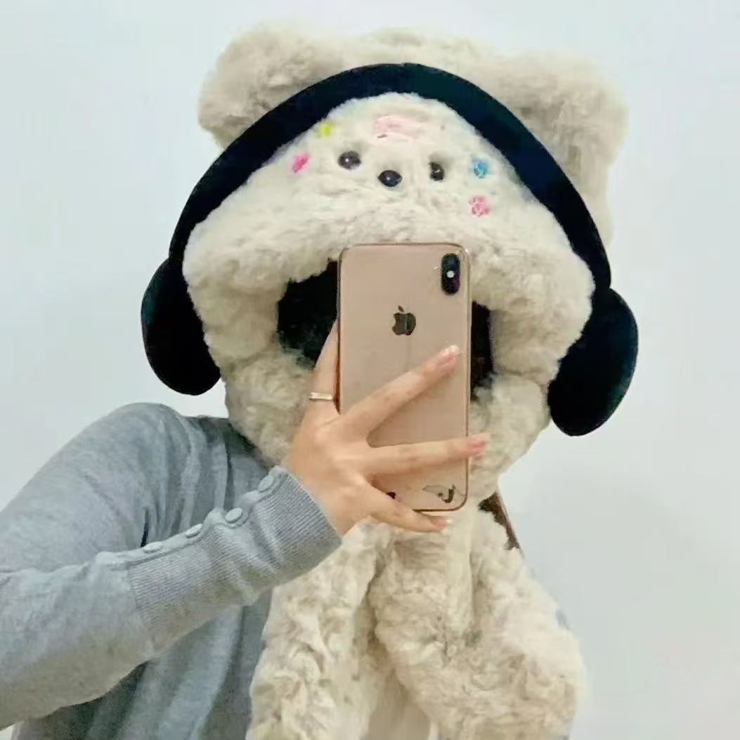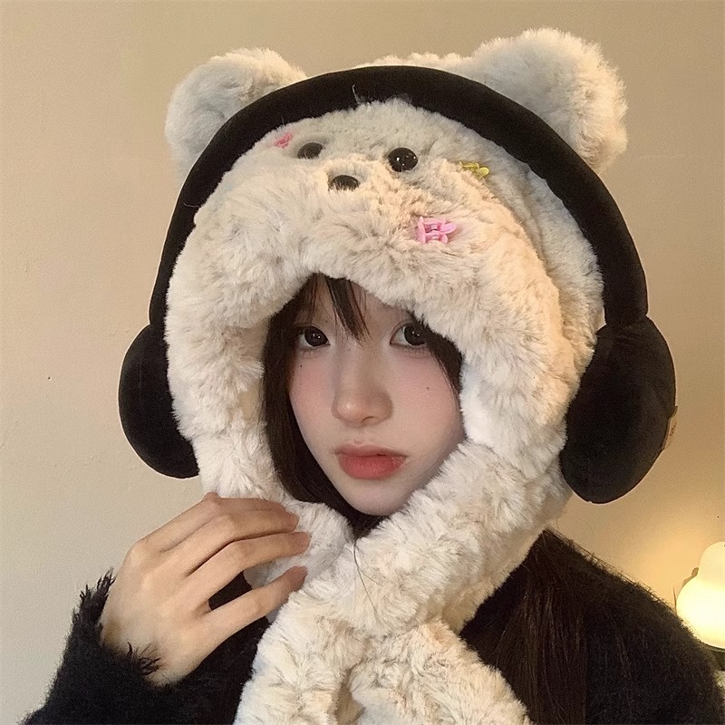 헤드폰 강아지 모자 여성의 가을과 겨울 귀여운 봉제 모자와 스카프 하나 두꺼운 따뜻한 귀와 목 보호 2024 새로운스토어 가기