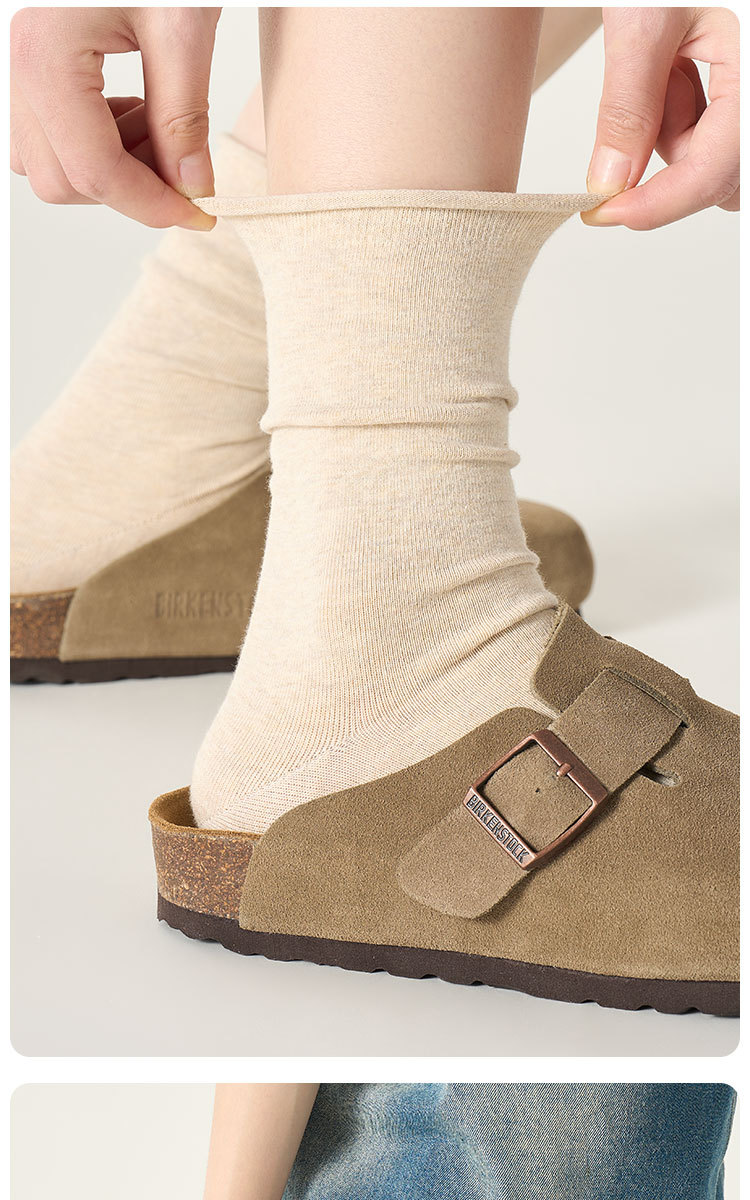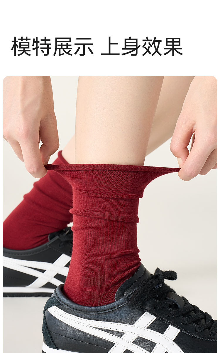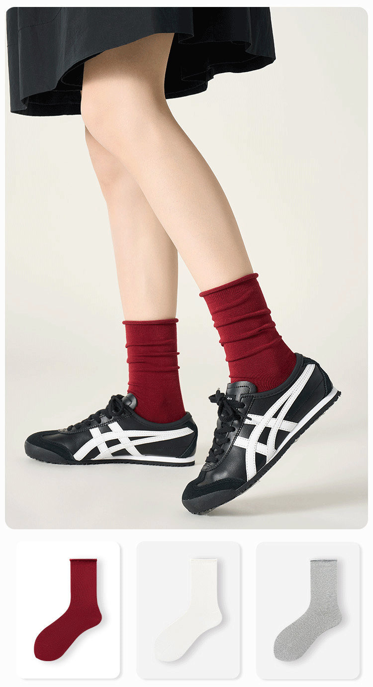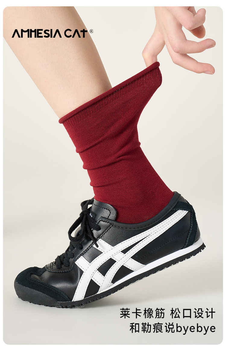 Ankora Red Socks 여성의 봄과 가을 면화 양말 중간 튜브 양말 안티 필 문 양말 화이트 보니없는 스택 양말 여성 신제품스토어 가기