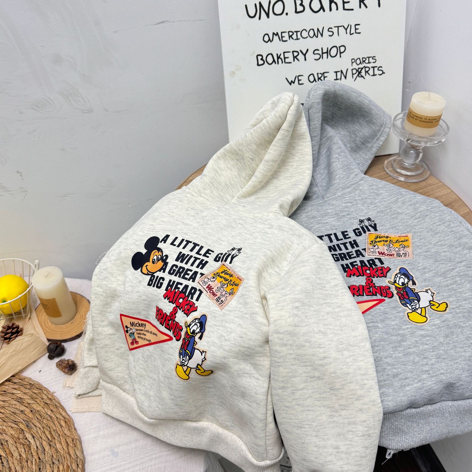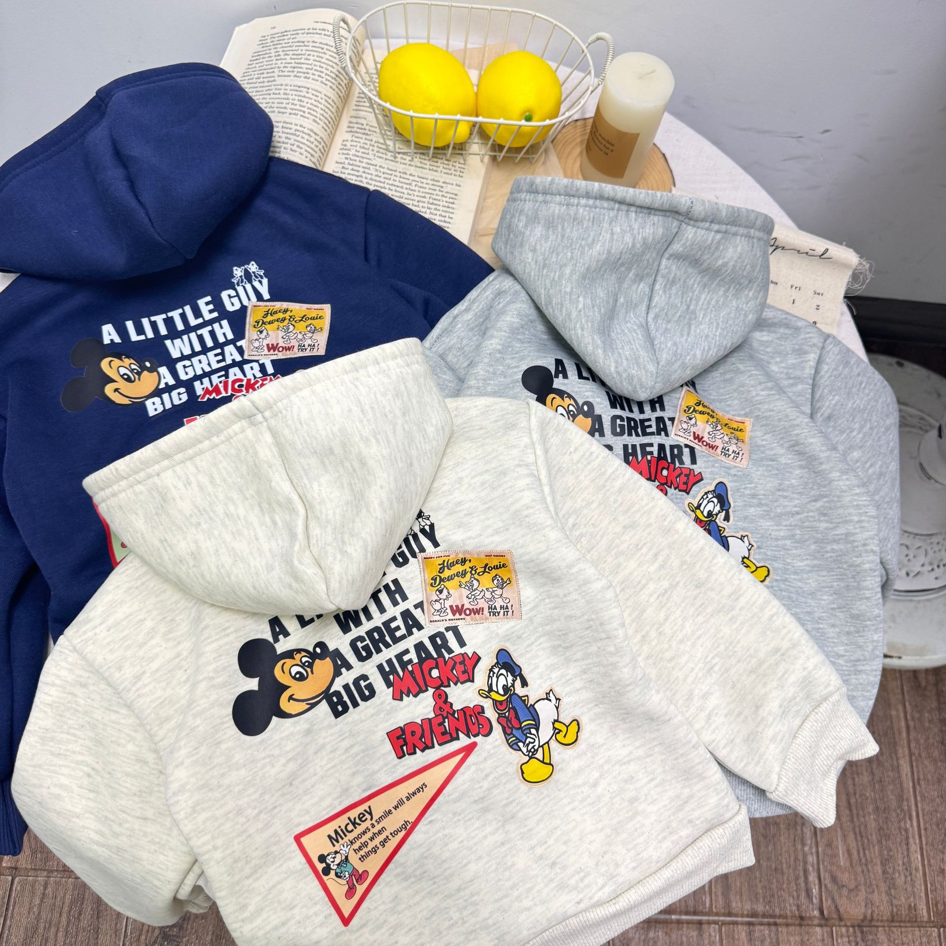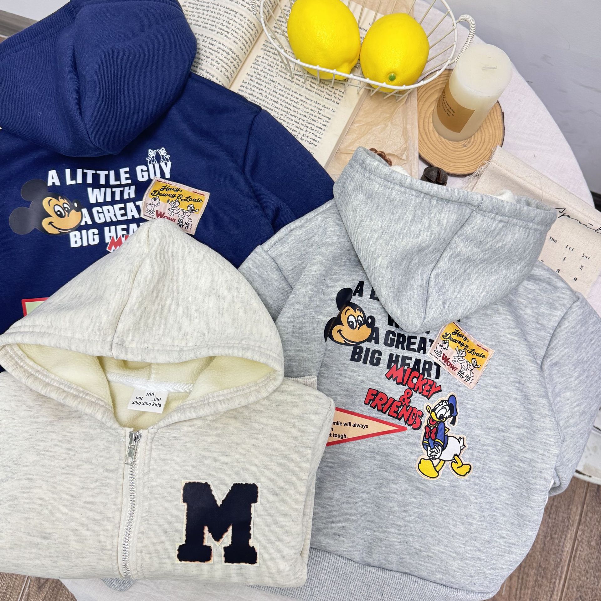어린이 후드 코트 2024 겨울 소년 새로운 만화 기모 스웨터 소녀 겨울 지퍼 셔츠 한국어 버전스토어 가기