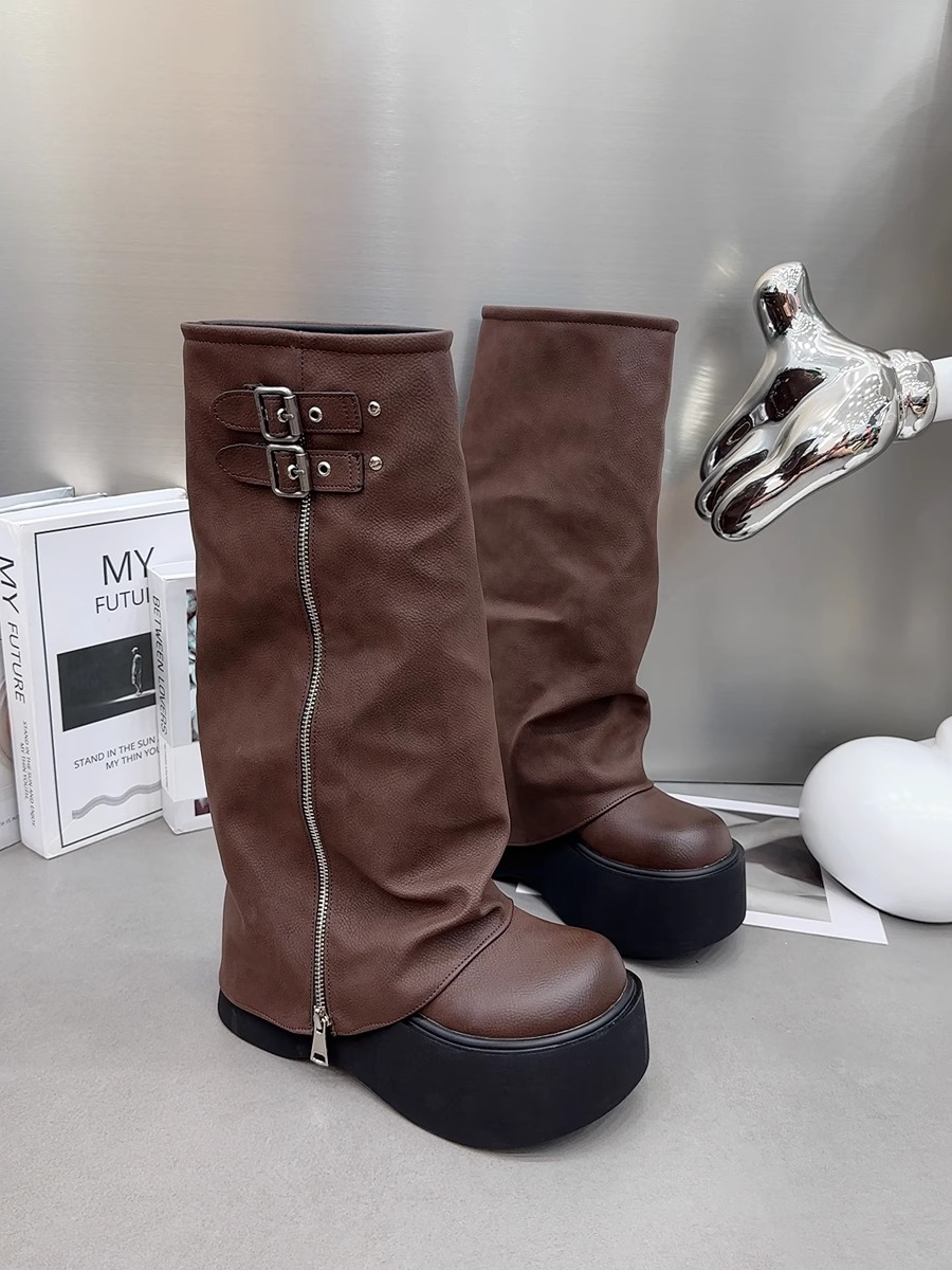 영국 스타일 마틴 부츠 여성의 2024 새로운 가을과 겨울 기모 두꺼운 바닥 짧은 부츠 작은 바지 부츠 다크 브라운 파일 부츠
