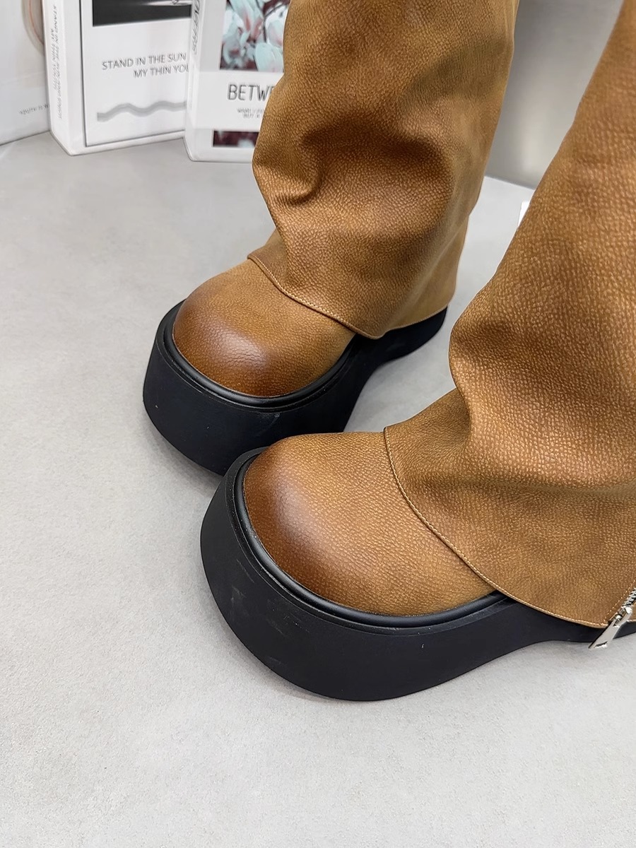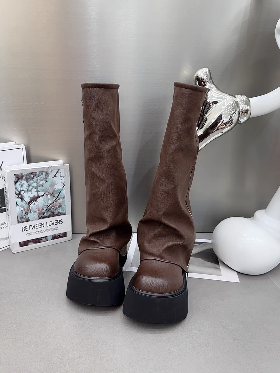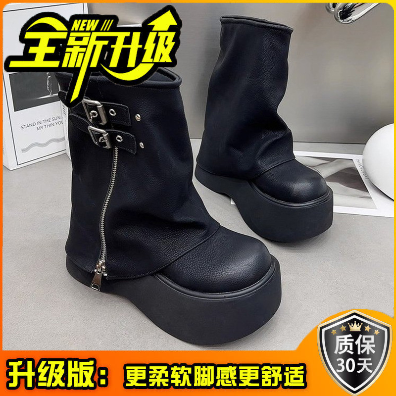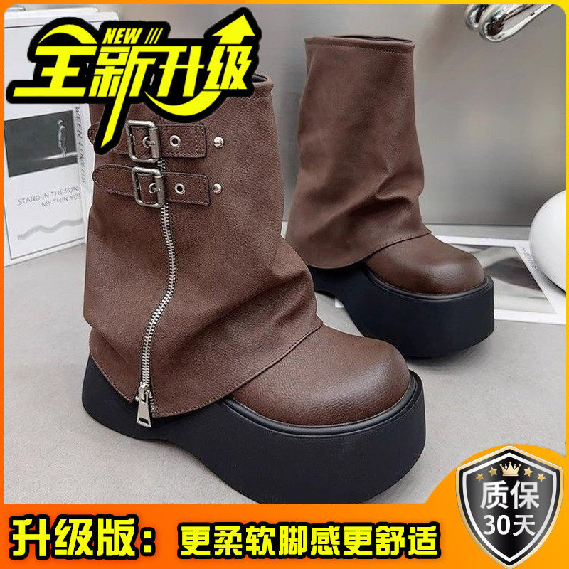 영국 스타일 마틴 부츠 여성의 2024 새로운 가을과 겨울 기모 두꺼운 바닥 짧은 부츠 작은 바지 부츠 다크 브라운 파일 부츠스토어 가기