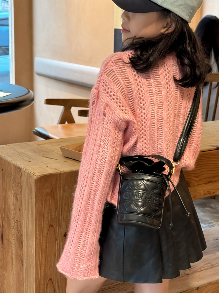유럽과 미국의 인기있는 미니 자수 마름모꼴 버킷 가방 샤넬 패션 유행 소녀 어린이 손 크로스 바디 입 레드 백