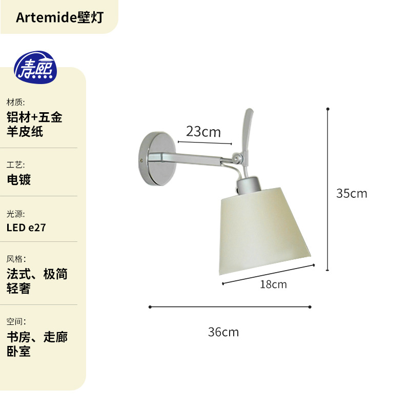 이탈리아 디자이너 중세 양피지 벽 램프 침대 옆 연구 침실 현관 복도 배경 벽 독서 램프스토어 가기