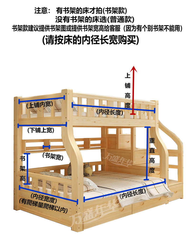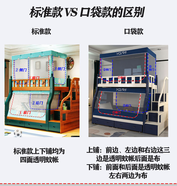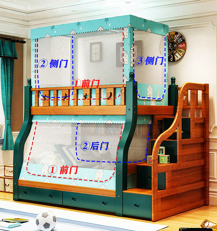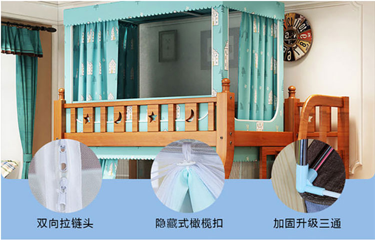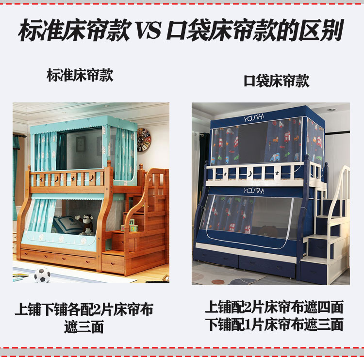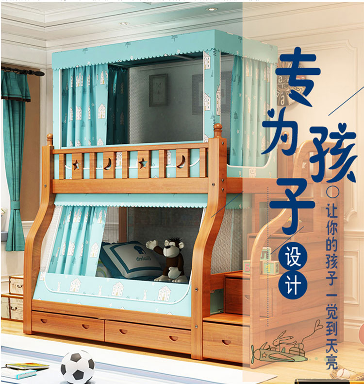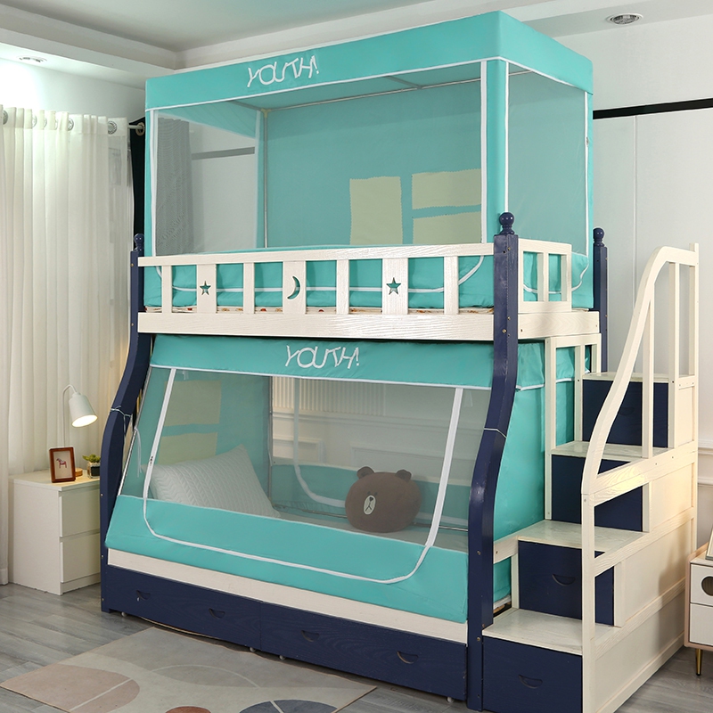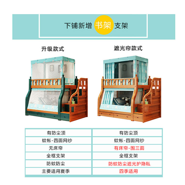 사다리꼴 텔레스코픽 침대 모기장 커튼 1.5m 더블 레이어 상단 및 하단 침대 1.1m 책꽂이가있는 하단 침대 통합스토어 가기
