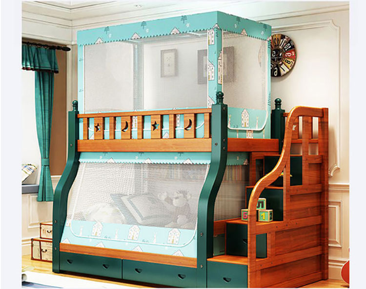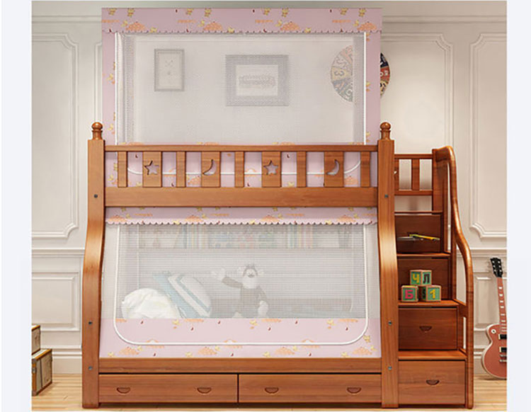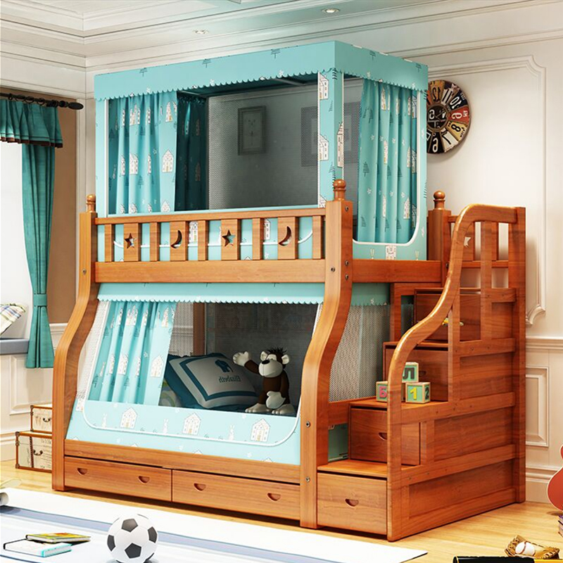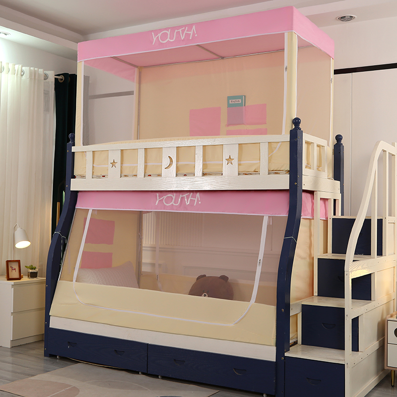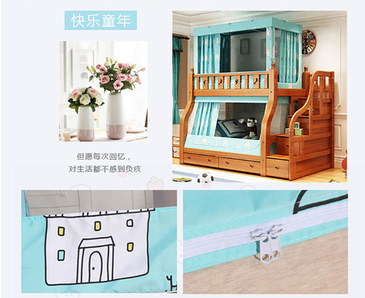 사다리꼴 텔레스코픽 침대 모기장 커튼 1.5m 더블 레이어 상단 및 하단 침대 1.1m 책꽂이가있는 하단 침대 통합