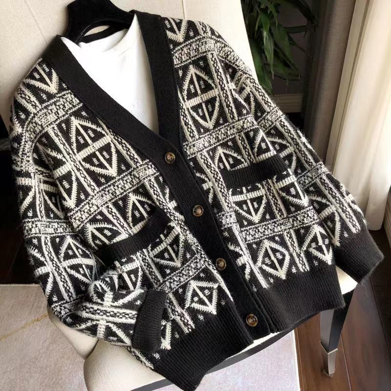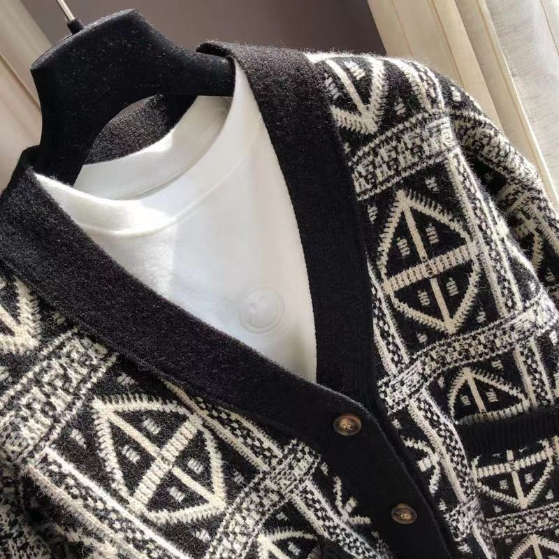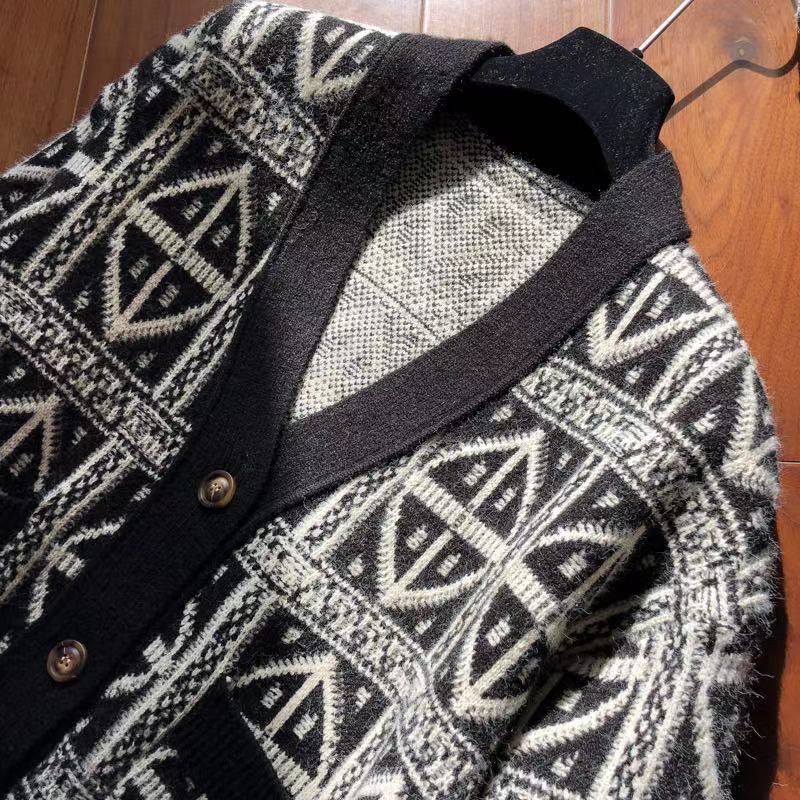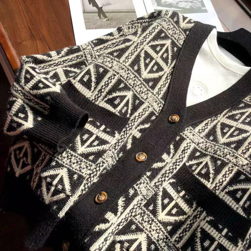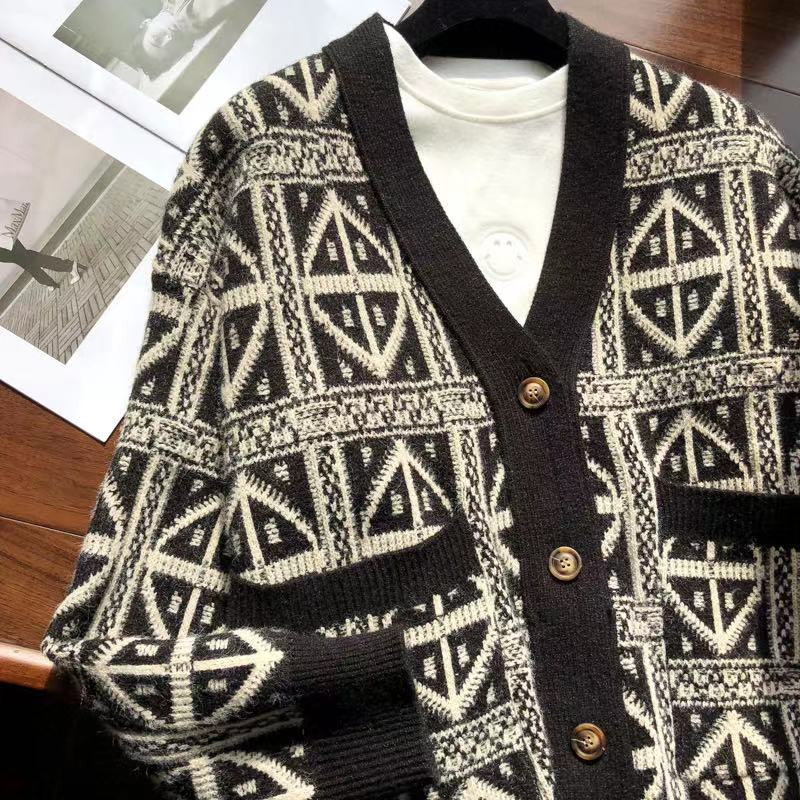 가을과 겨울 새로운 더블 라인 스웨터 카디건 남자 레트로 울 스웨터 V-Neck 느슨한 커플 재킷
