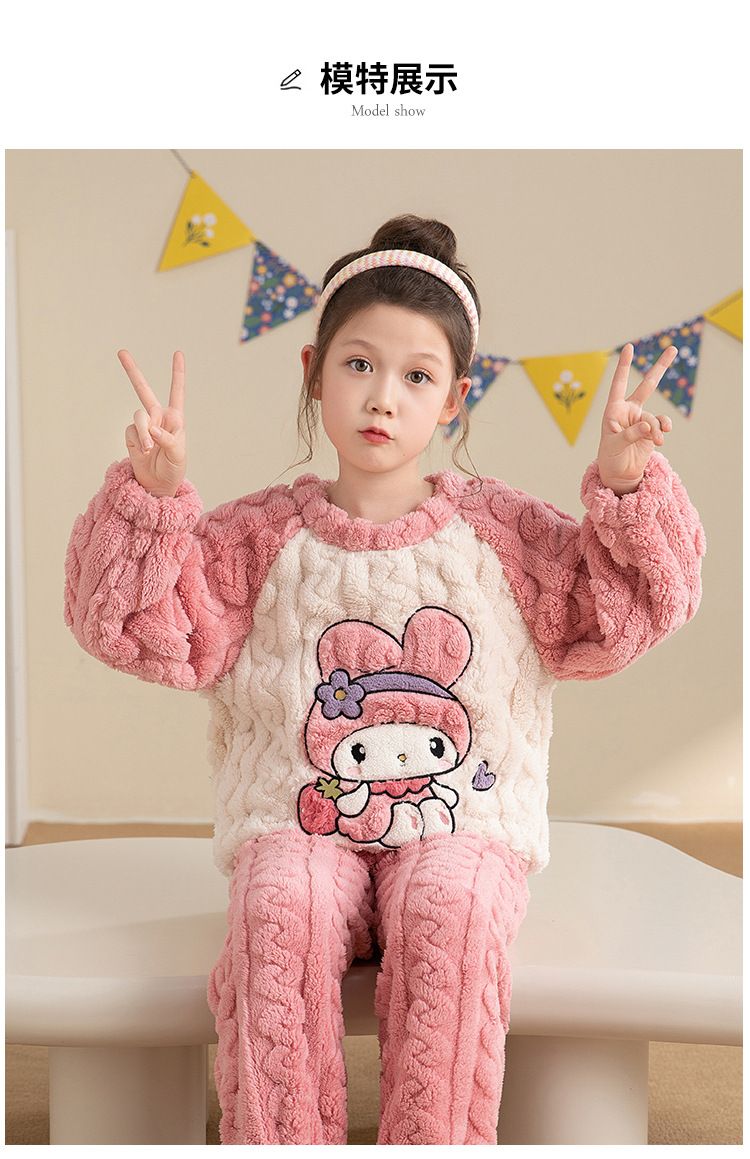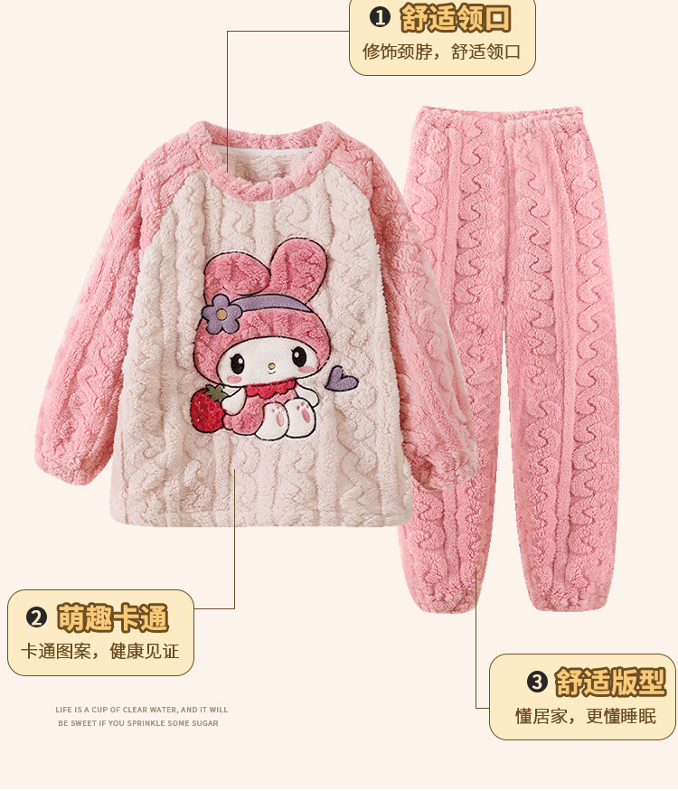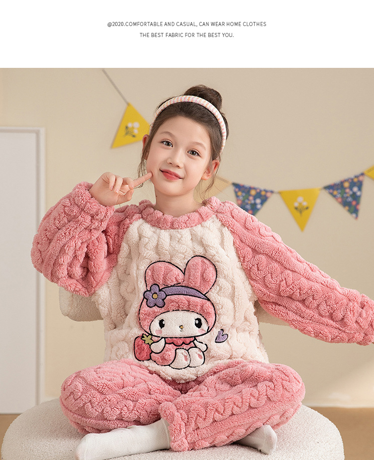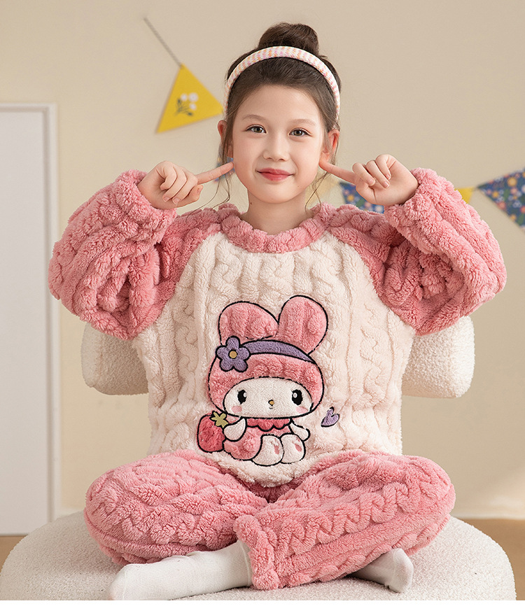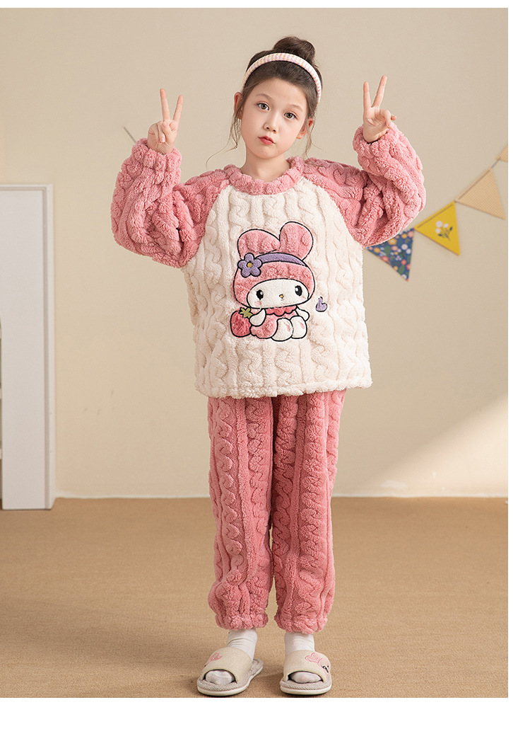 어린이 산호 양털 파자마 소녀의 겨울 플란넬 세트 큰 어린이를위한 두꺼운 기모 소녀 따뜻한 집 옷