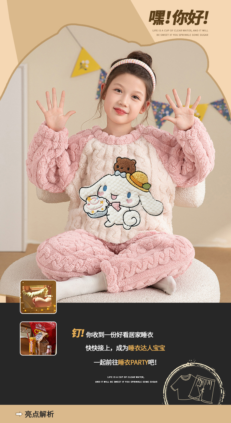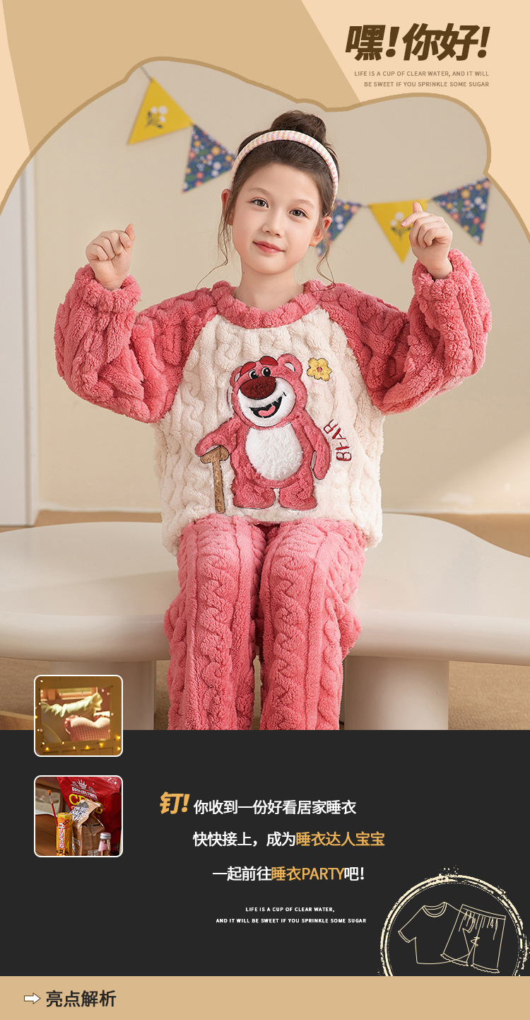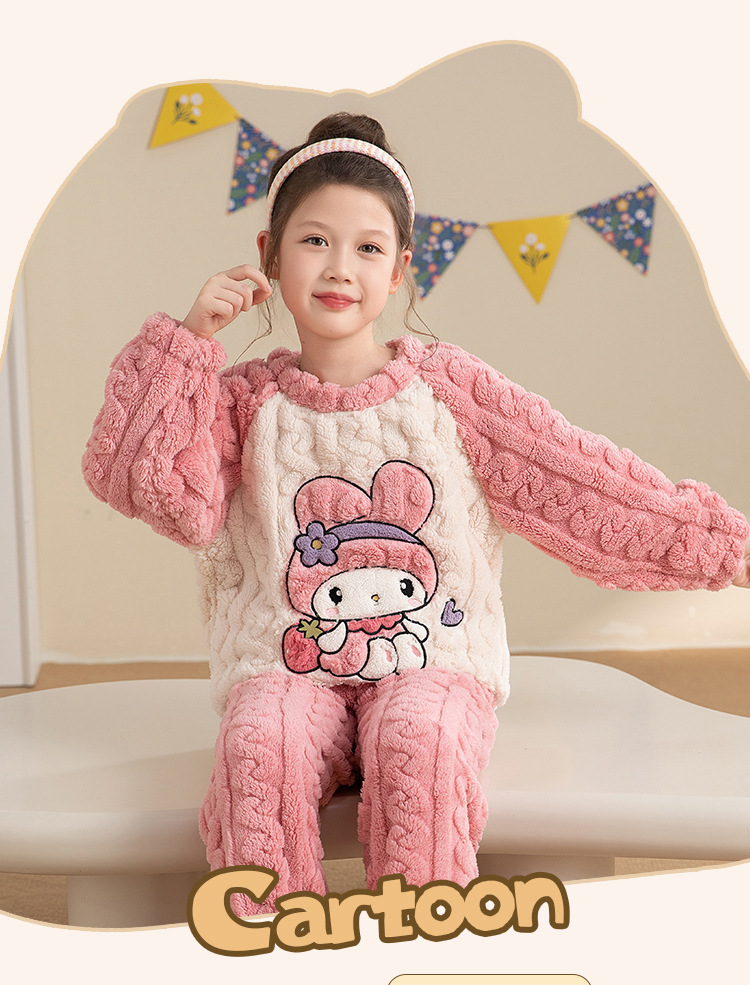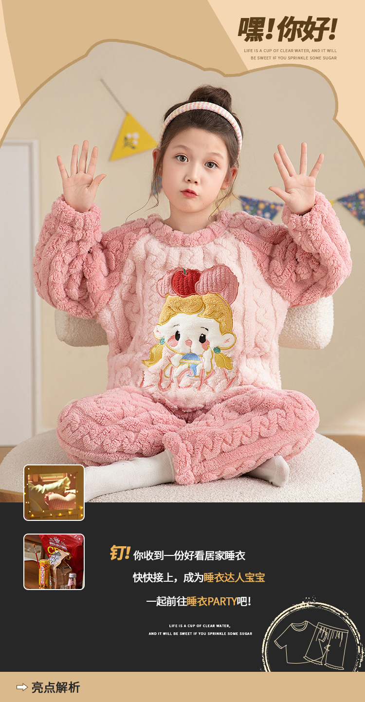 어린이 산호 양털 파자마 소녀의 겨울 플란넬 세트 큰 어린이를위한 두꺼운 기모 소녀 따뜻한 집 옷스토어 가기