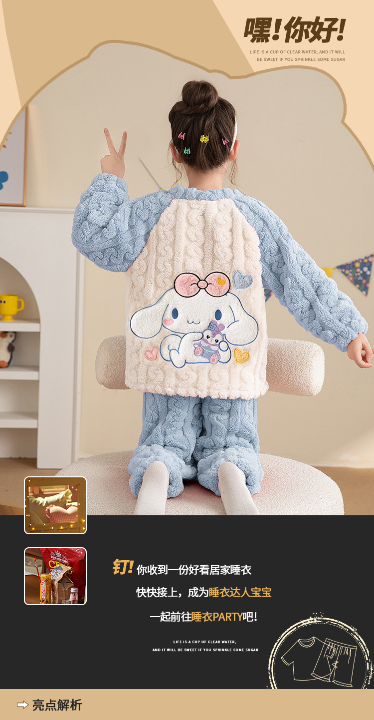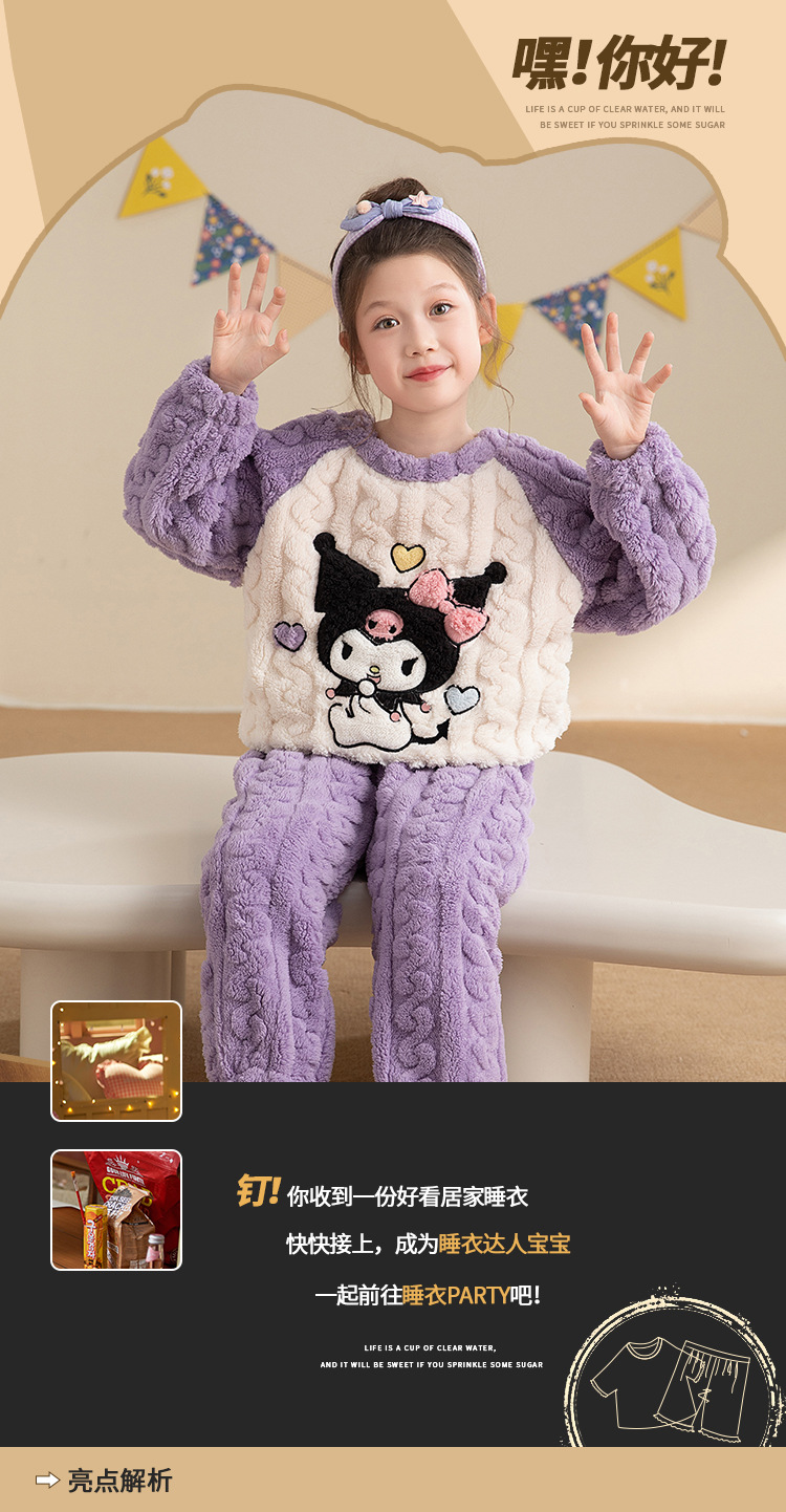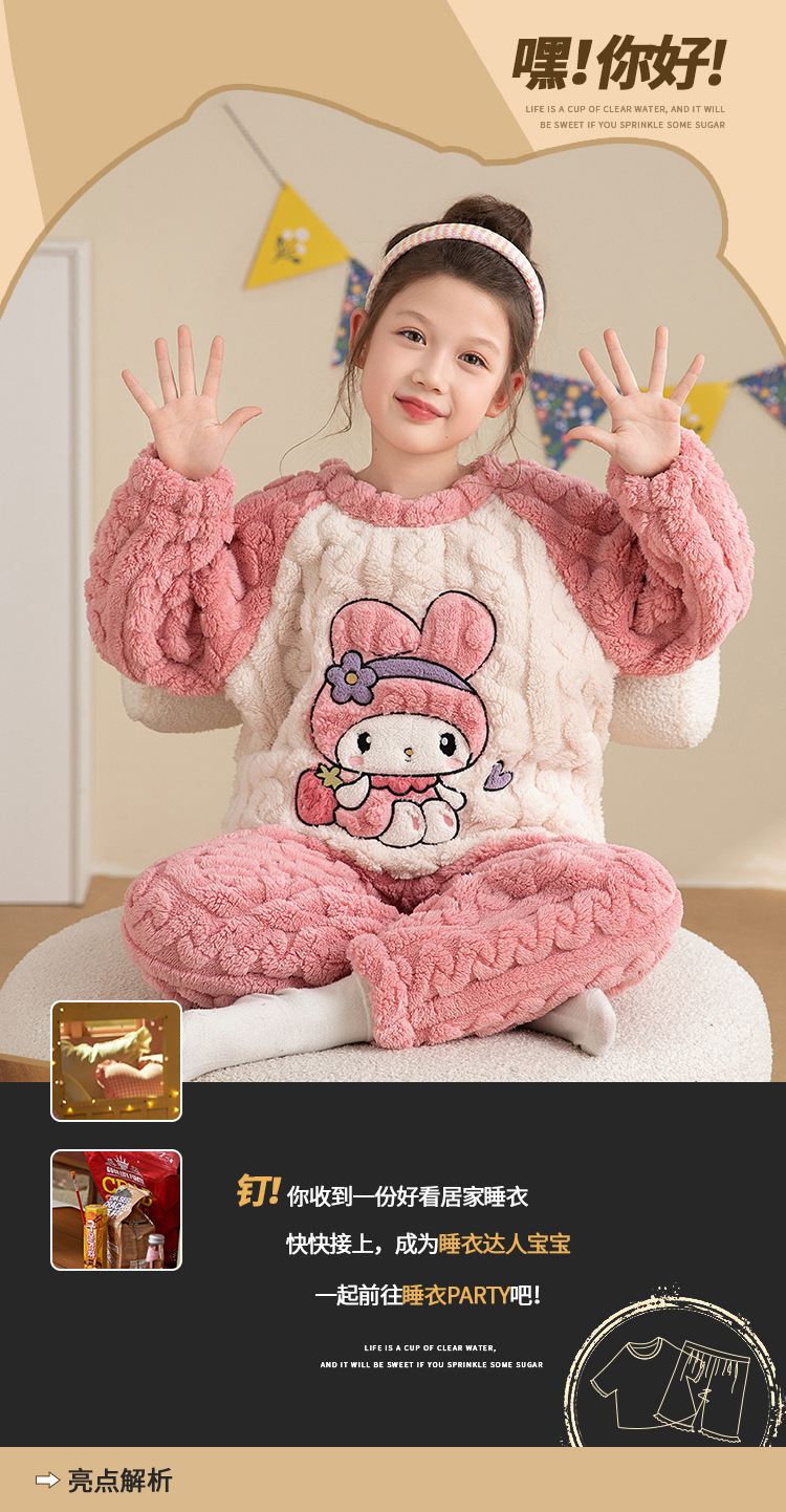어린이 산호 양털 파자마 소녀의 겨울 플란넬 세트 큰 어린이를위한 두꺼운 기모 소녀 따뜻한 집 옷스토어 가기