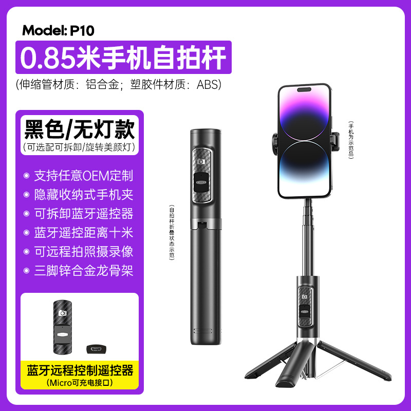 P10 셀카 스틱 삼각대 휴대용 블루투스 카메라 모바일 스탠드 흔들림 방지 개폐식 셀카 스틱 삼각대 휴대용