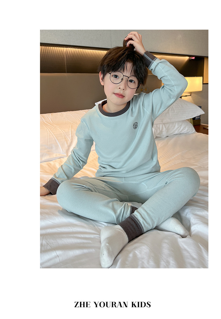 소년 가을 옷과 바지 세트 봄 가을 겨울 2024 새로운 도착 중다 어린이 겨울 소년 잠옷 열 속옷스토어 가기