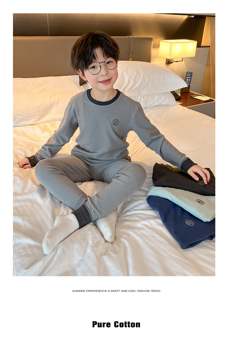 소년 가을 옷과 바지 세트 봄 가을 겨울 2024 새로운 도착 중다 어린이 겨울 소년 잠옷 열 속옷