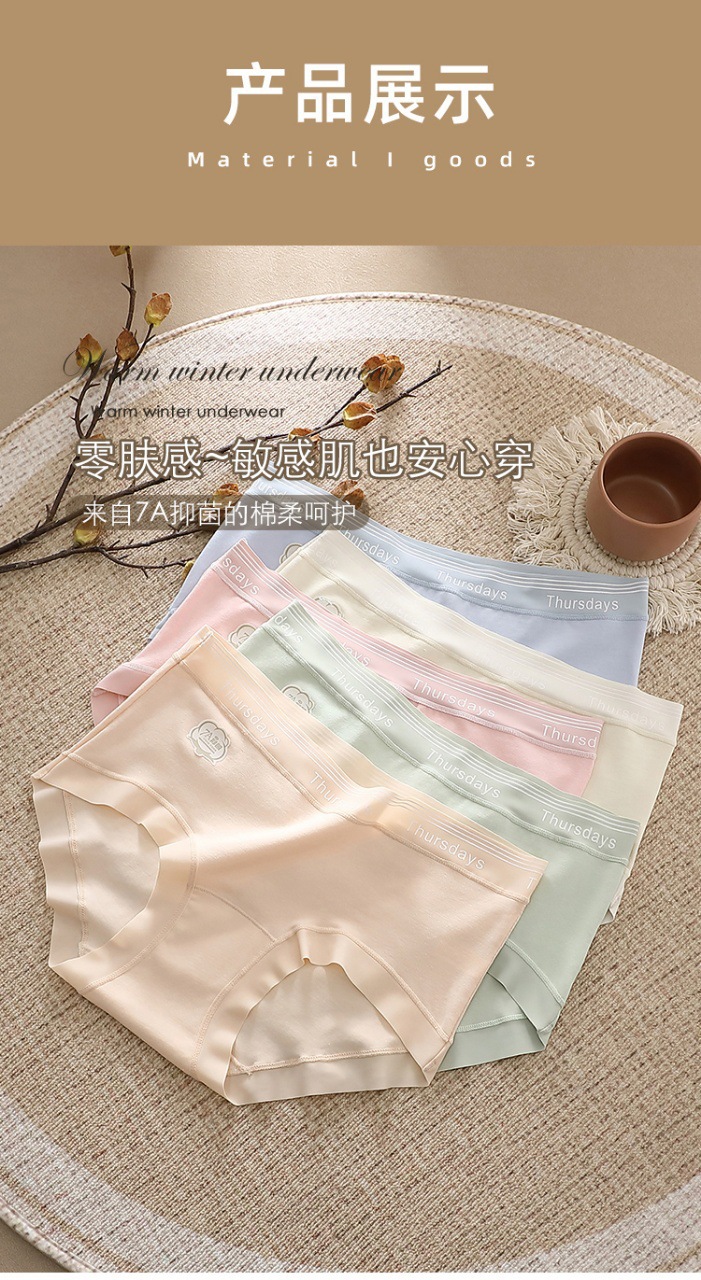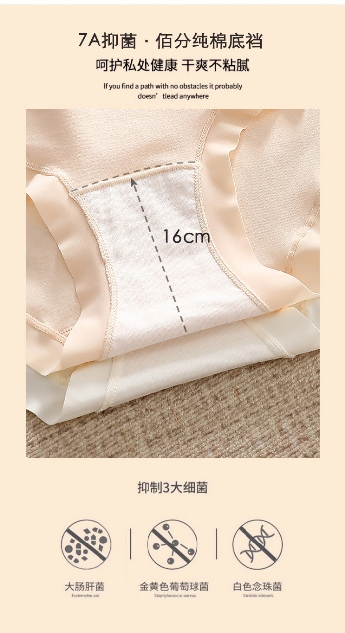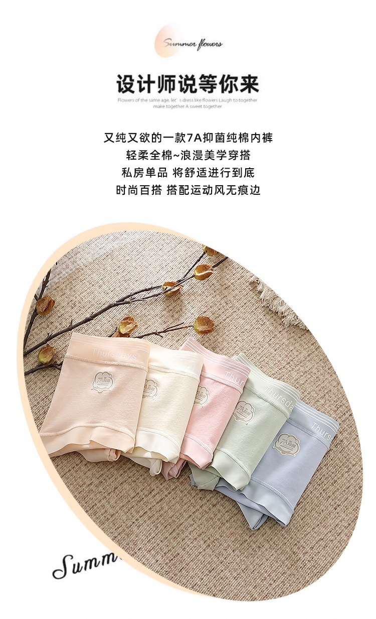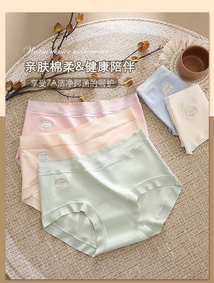 7A 면 항균 계층화 된 Crotch Girl's Pure Cotton Breathable Underwear Women's Mid-Waist Class A Baby's Cotton Tracless Trip스토어 가기