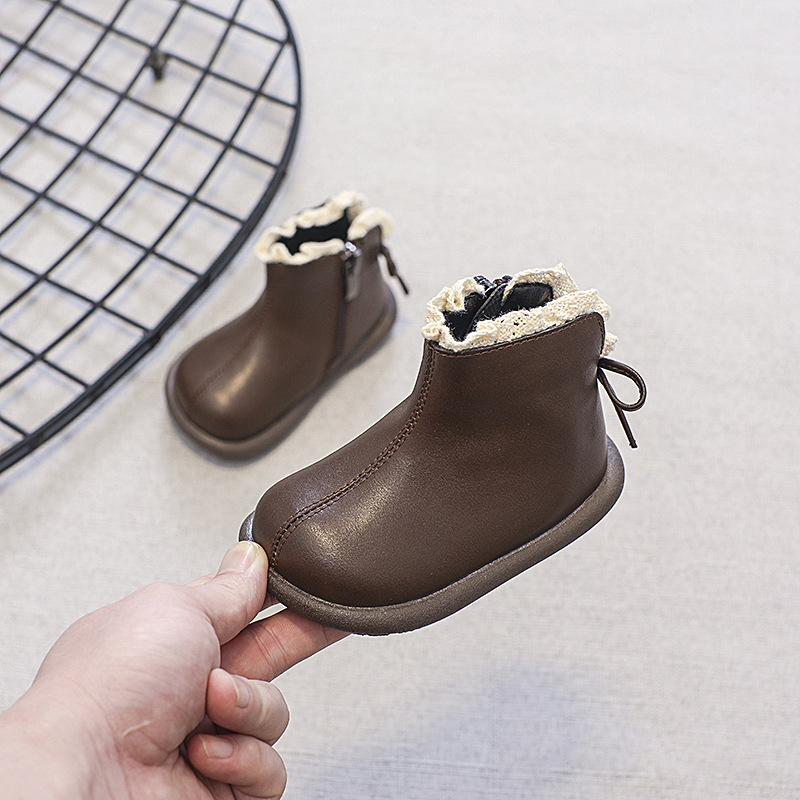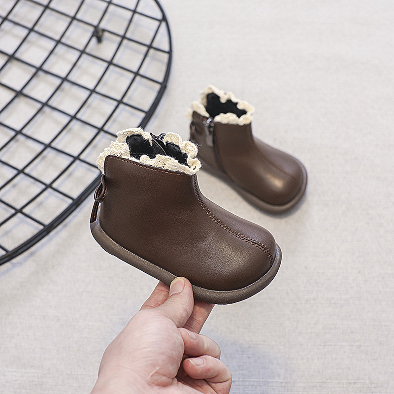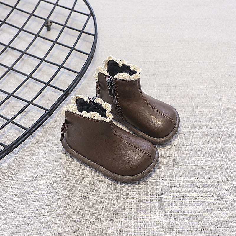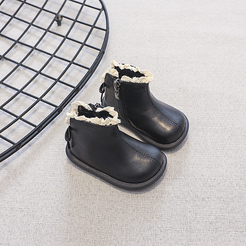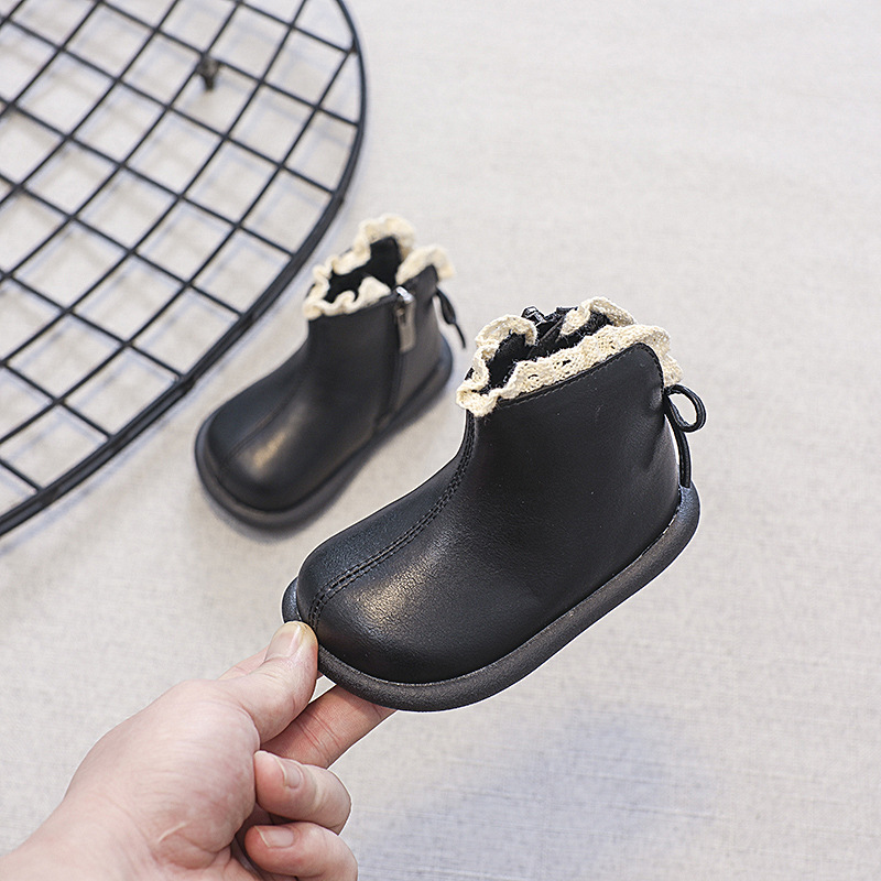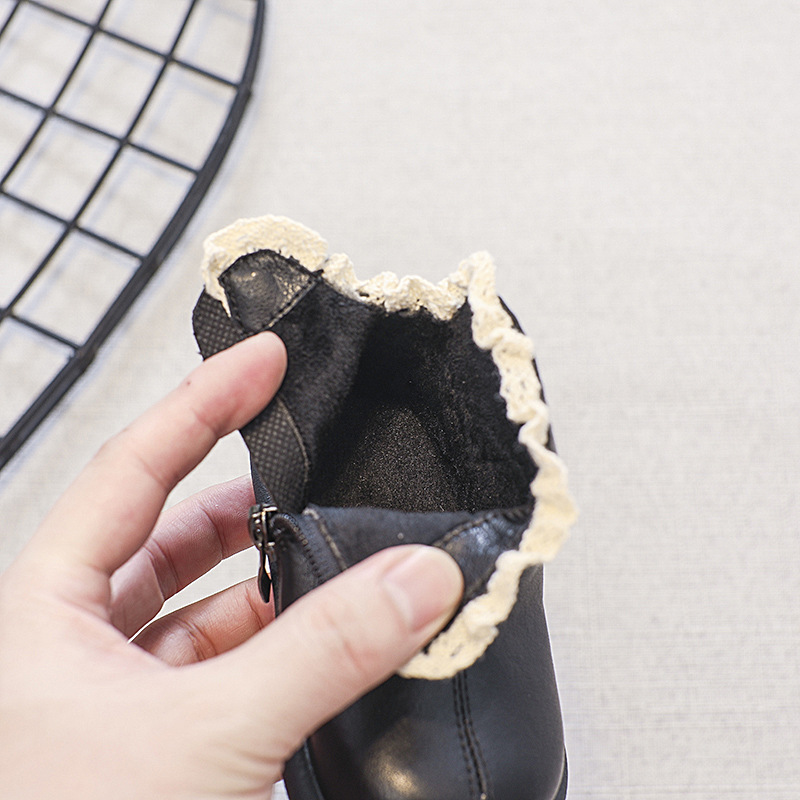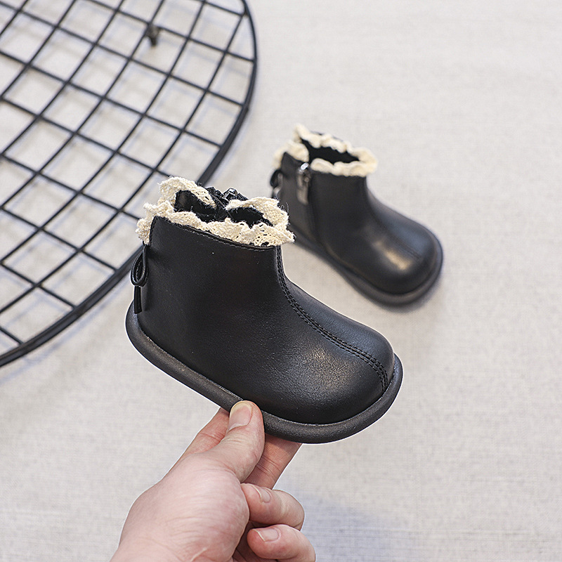 아기 소녀 짧은 부츠 가을과 겨울 어린이 레이스 작은 가죽 신발 옆 지퍼 편안한 짧은 부츠 공주 마틴 부츠