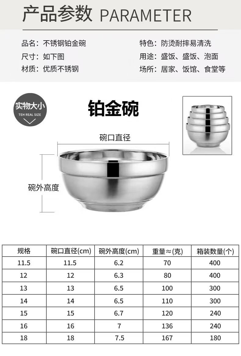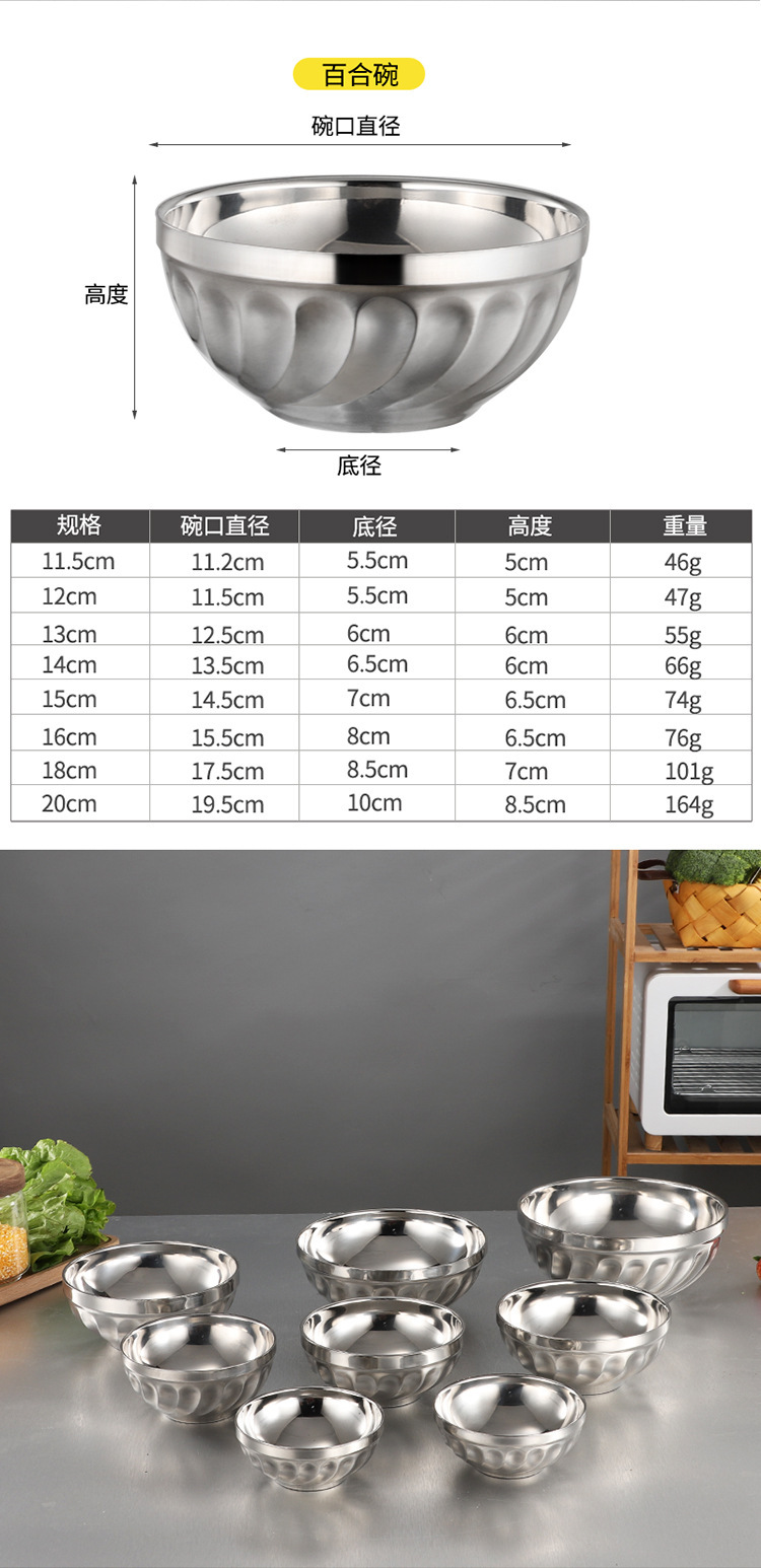 공장 직접 304 스테인레스 스틸 그릇 이중층 절연 학교 캔틴 밥 그릇 수프 그릇 스테인레스 스틸 화상 방지 그릇