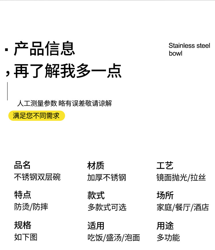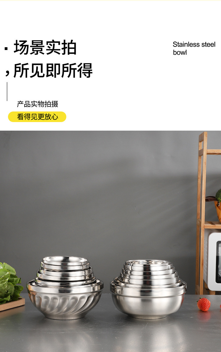 공장 직접 304 스테인레스 스틸 그릇 이중층 절연 학교 캔틴 밥 그릇 수프 그릇 스테인레스 스틸 화상 방지 그릇스토어 가기